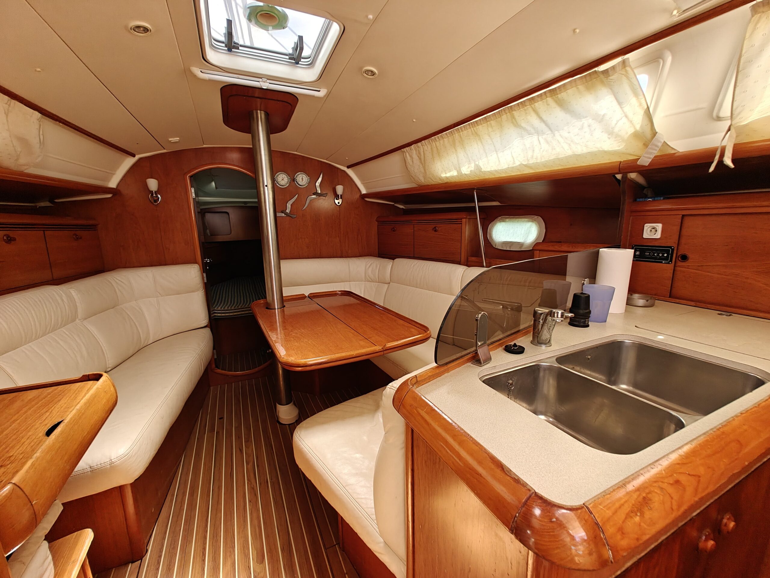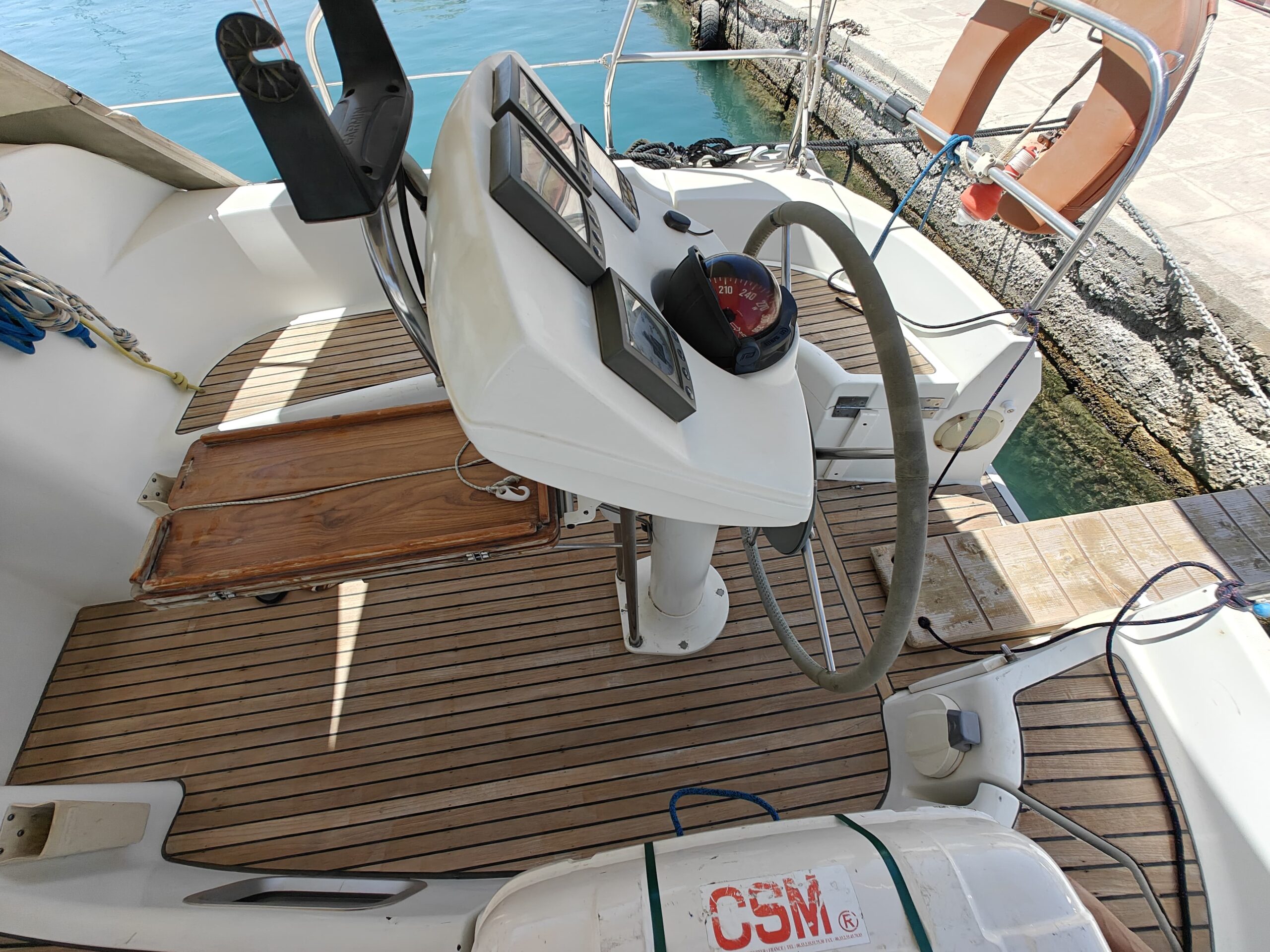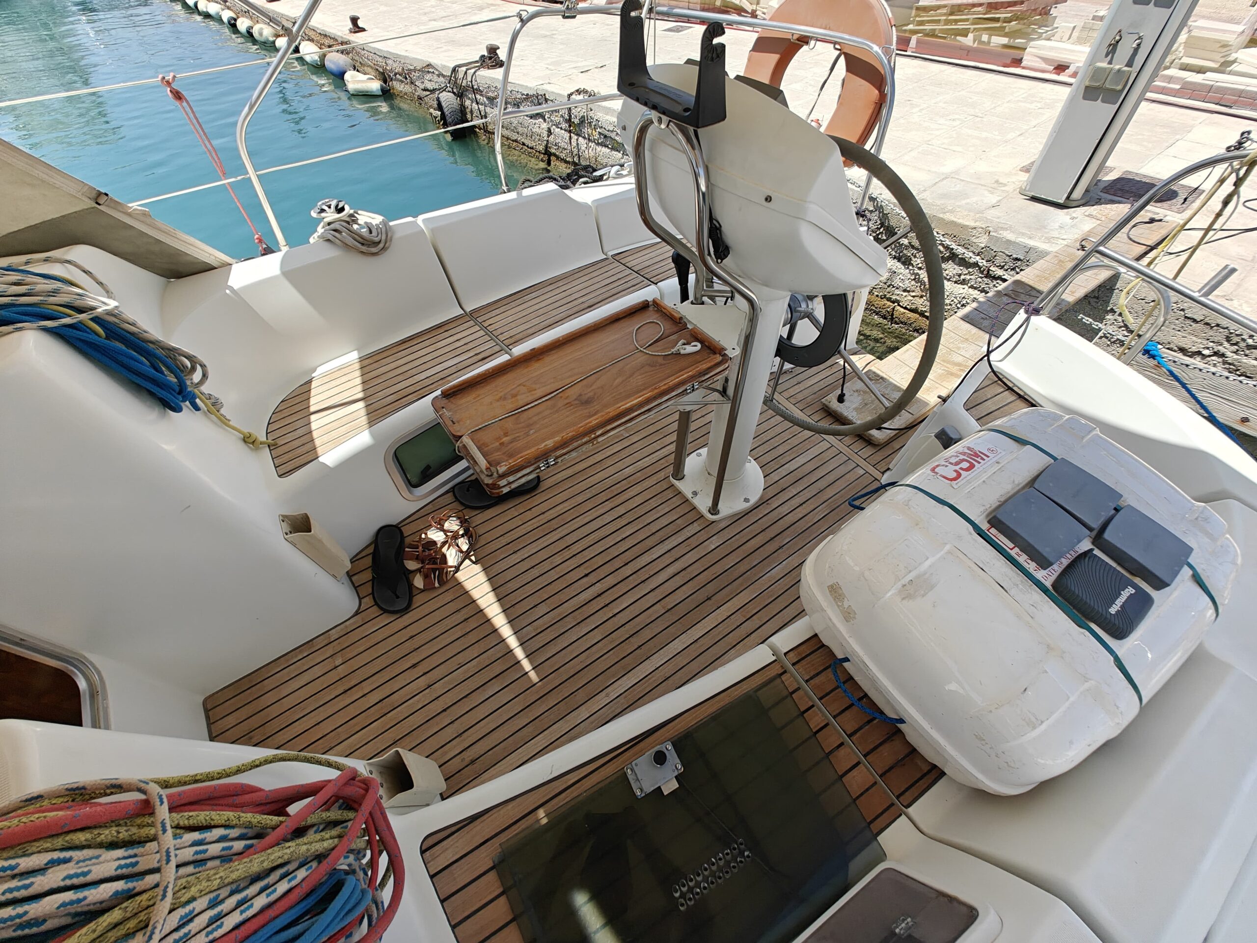 On deck, she is fully equipped with a Delta 20kg anchor, new spare anchor chain (60m), solar panel, fiberglass gangway, and a second fiberglass cockpit table for added convenience.