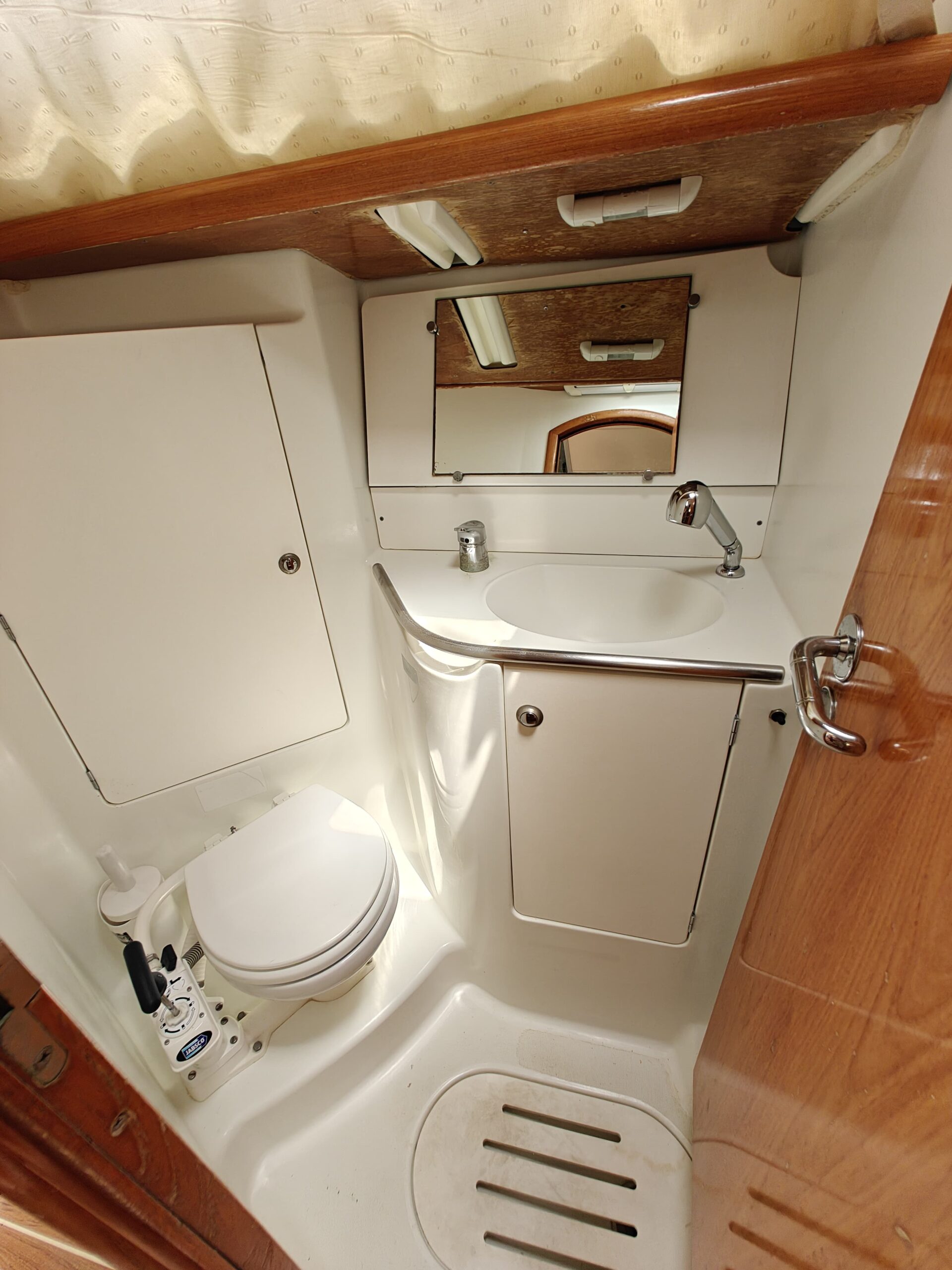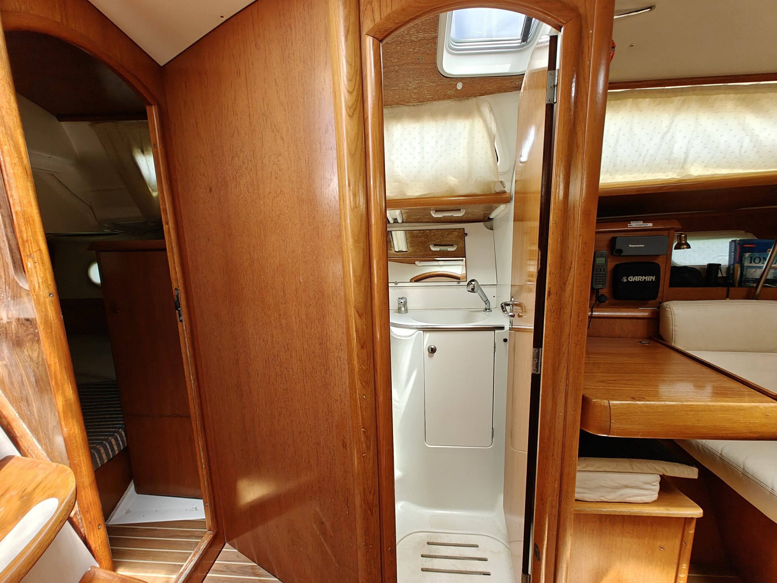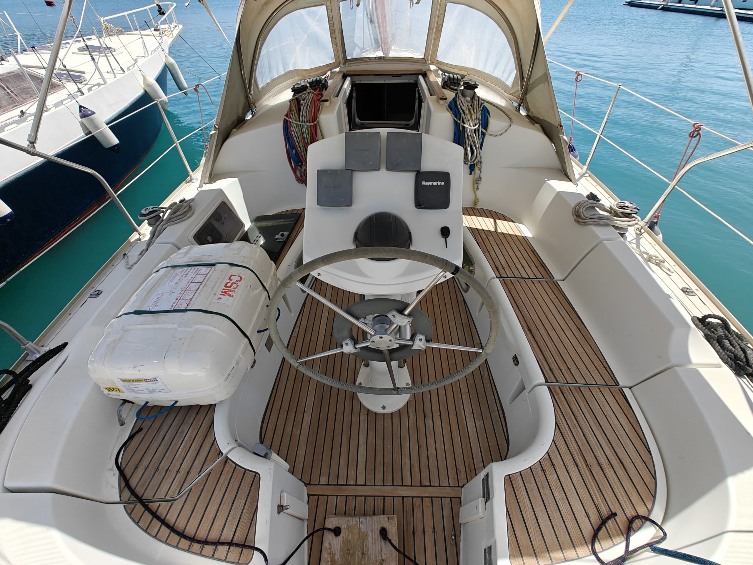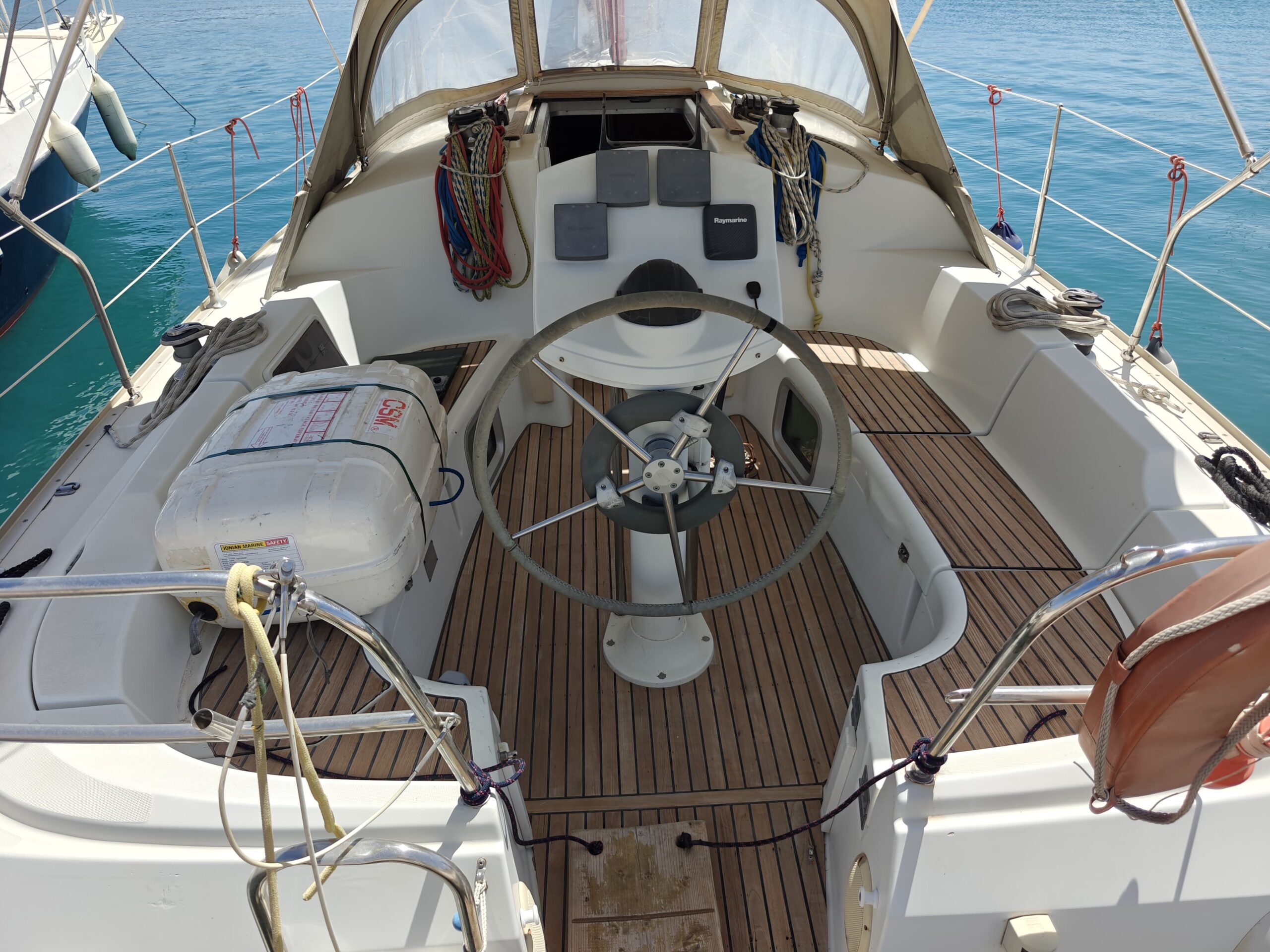 Recently upgraded with essential equipment, it boasts a roller furling mainsail (2023), a Genoa (2021), and a full cockpit enclosure including bimini and sprayhood (2022).