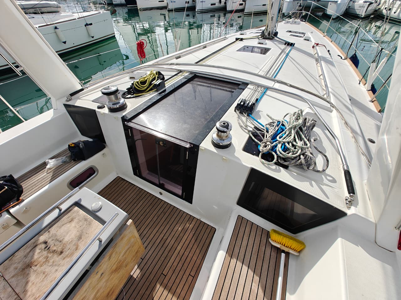 The Beneteau Oceanis 45 (2013) is a spacious and comfortable family cruiser, designed for easy handling and enjoyable living on board. The interior features four double cabins and two bathrooms, providing excellent accommodation for up to eight guests.