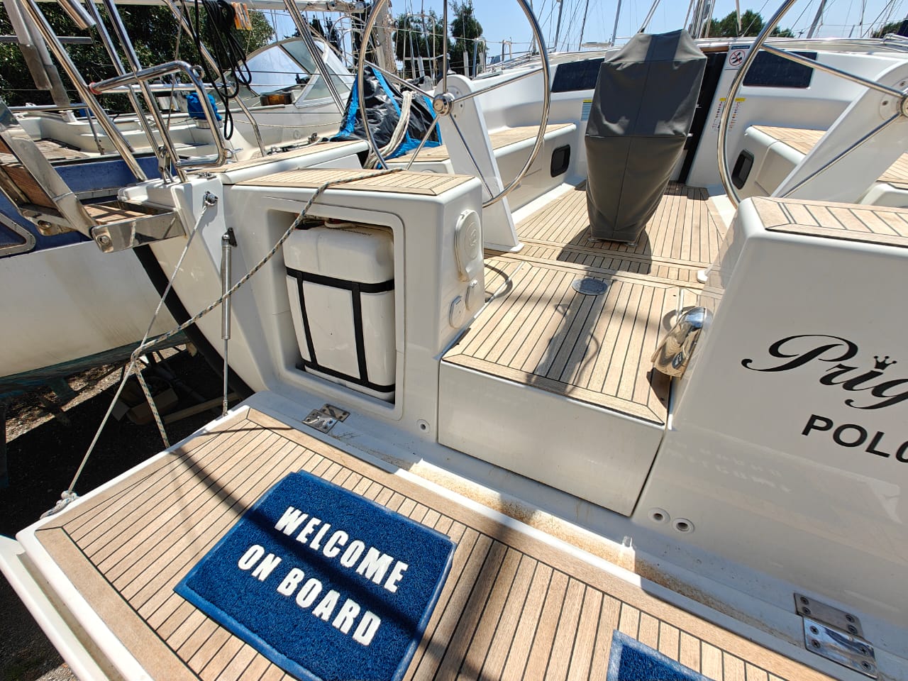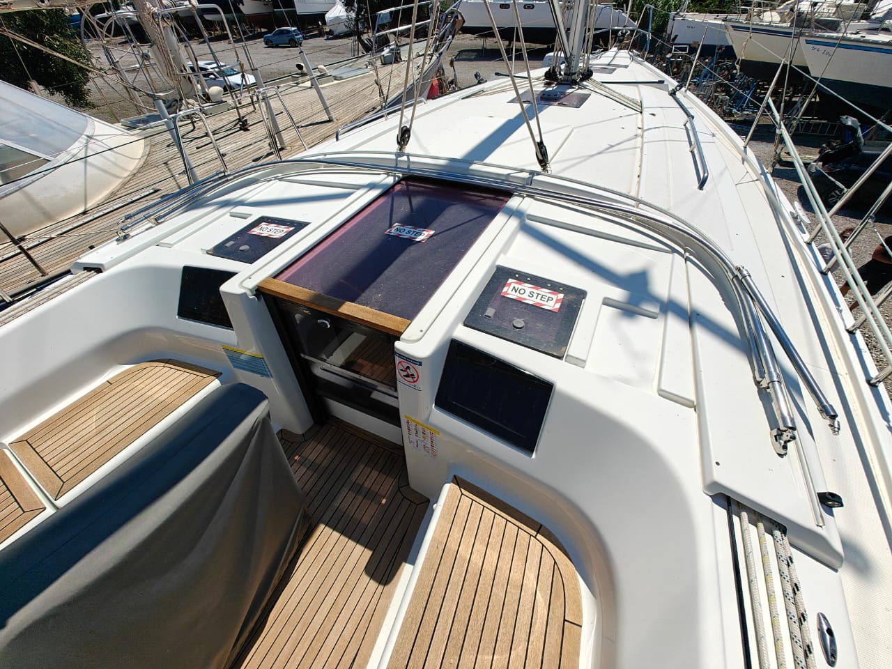 This Hanse 385 is equipped for both comfort and long-term cruising with a retractable Quick bow thruster, Victron and Mastervolt chargers, boiler, and full LED interior and deck lighting with programmable settings.