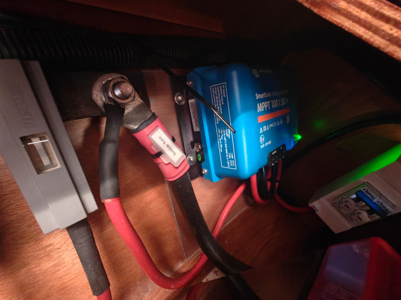 - Inverter: Victron 150 W inverter; Victron battery monitor and electronic control panel; shore‑power inlet