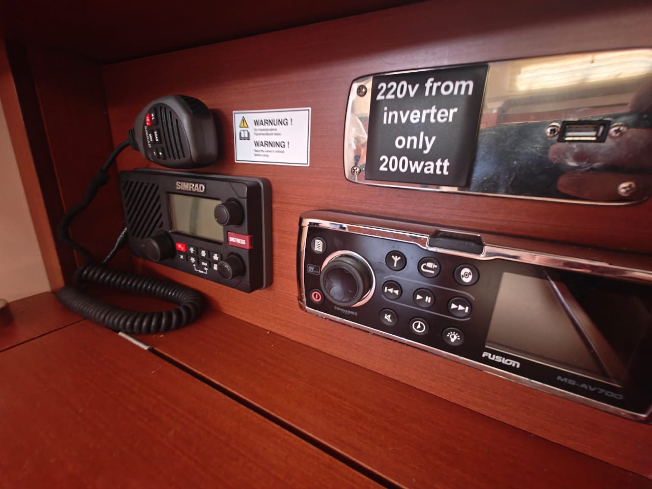 Additional features include 4 Caframo Bora fans, TV, VHF/AIS, and a Fusion audio system for onboard entertainment.