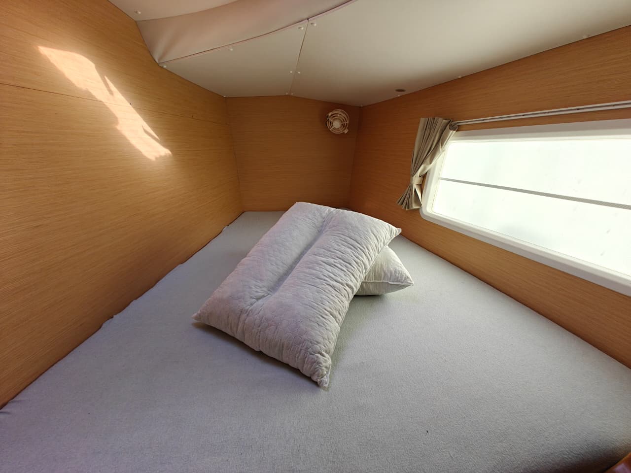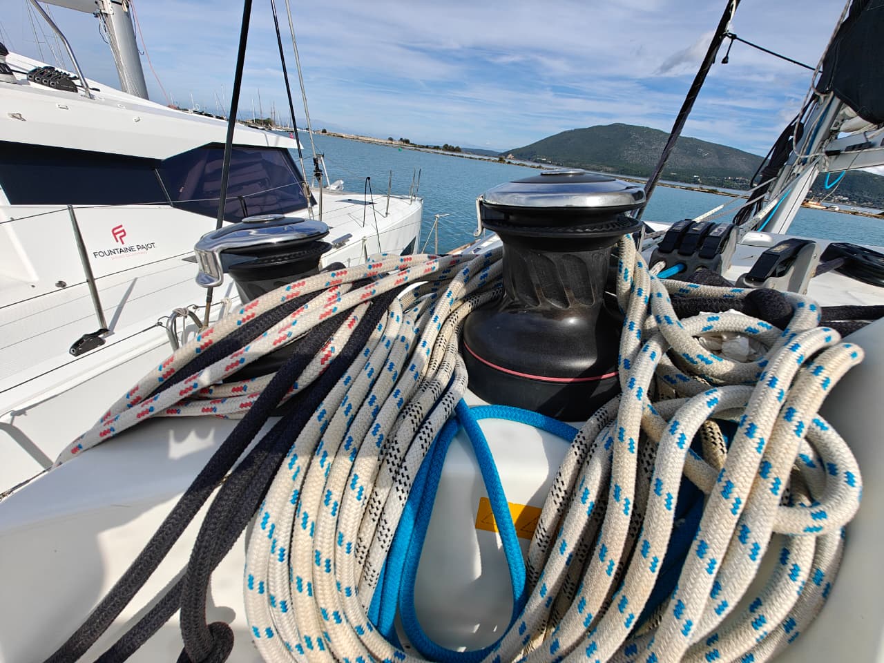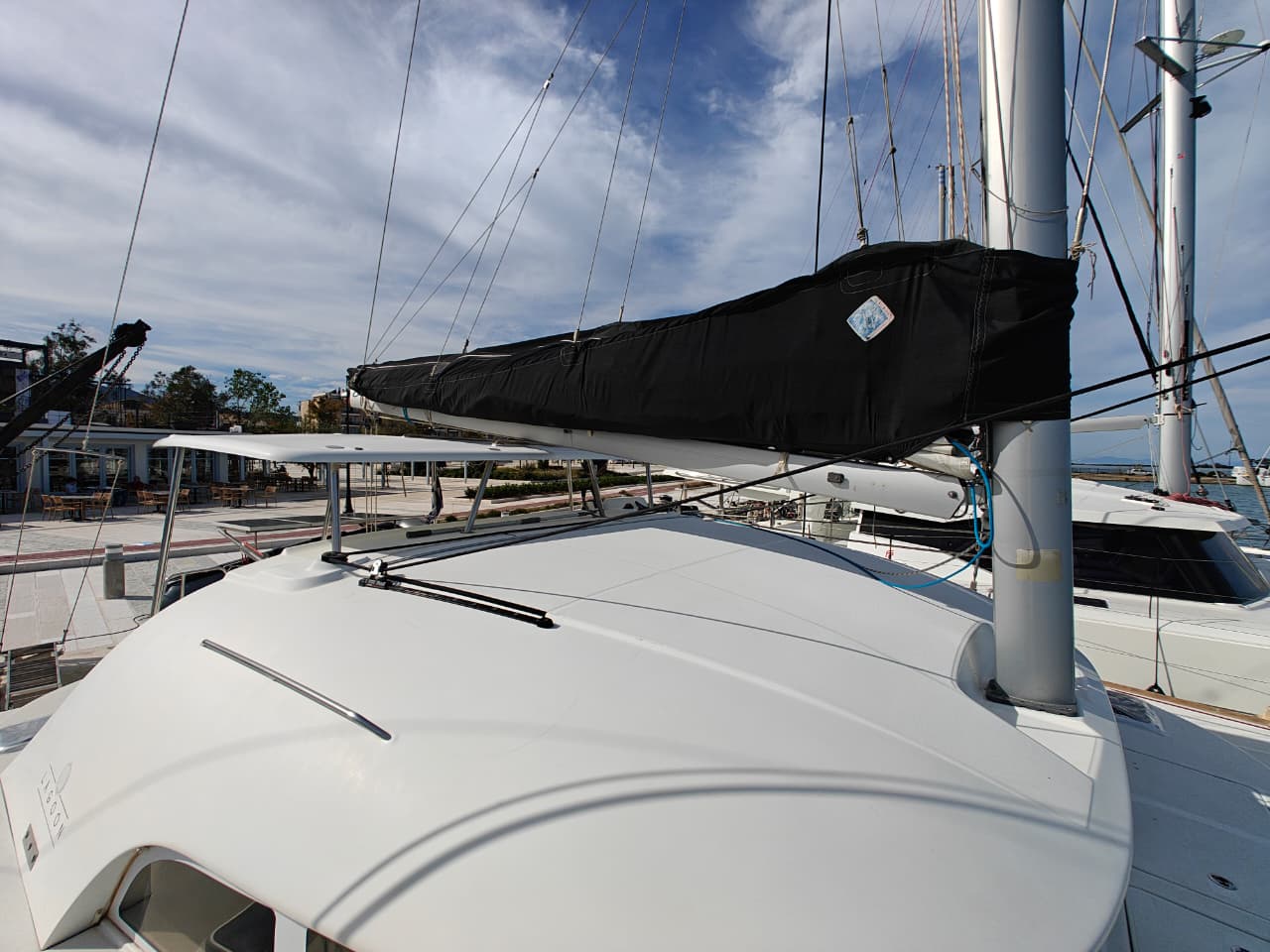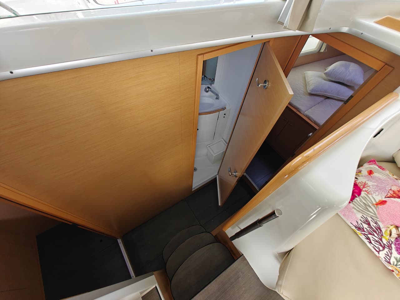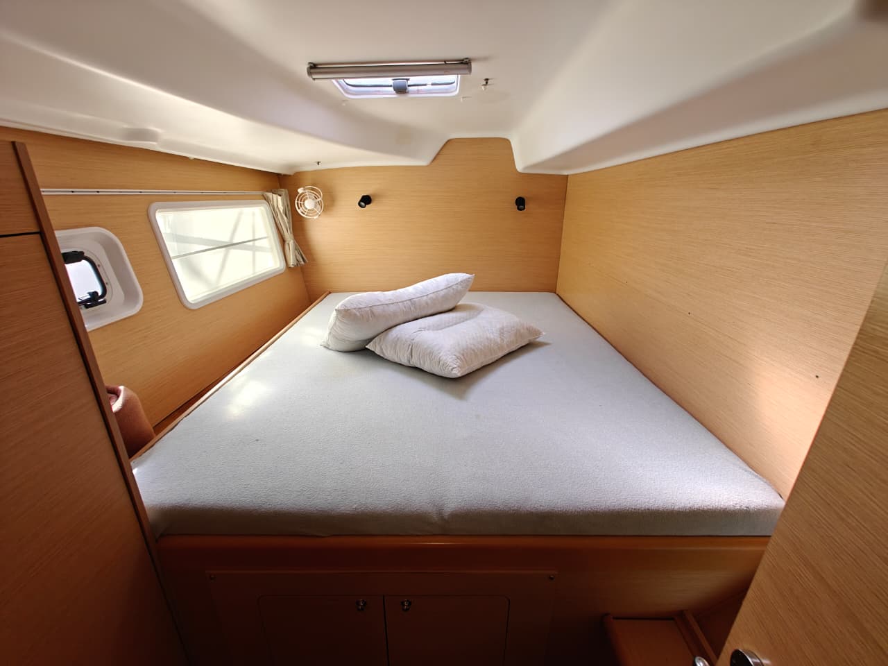 Below deck, the Lagoon 380 offers a bright and airy interior with 4 double cabins plus 2 single berths and 2 electric heads with showers, making it ideal for family cruising or charter use. The galley is fully equipped with a gas cooker, oven, refrigerator, hot water system, and ample kitchen utensils, ensuring all the comforts of home at sea.