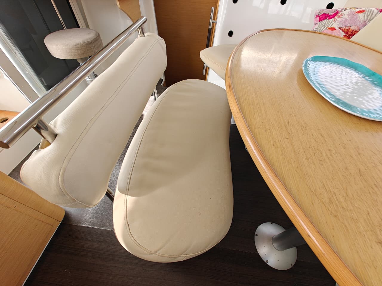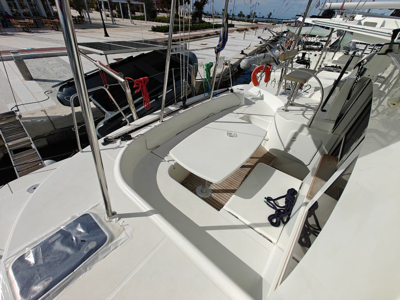 Navigation and safety are top-notch, featuring autopilot, GPS chart plotter, depthsounder, EPIRB, GMDSS system, life raft, and solar panels for extended autonomy.