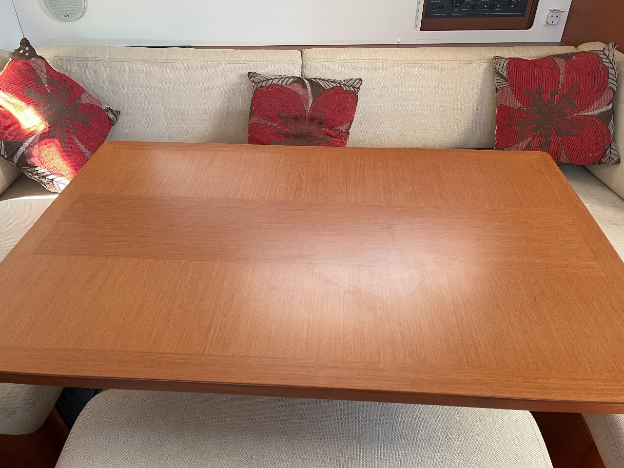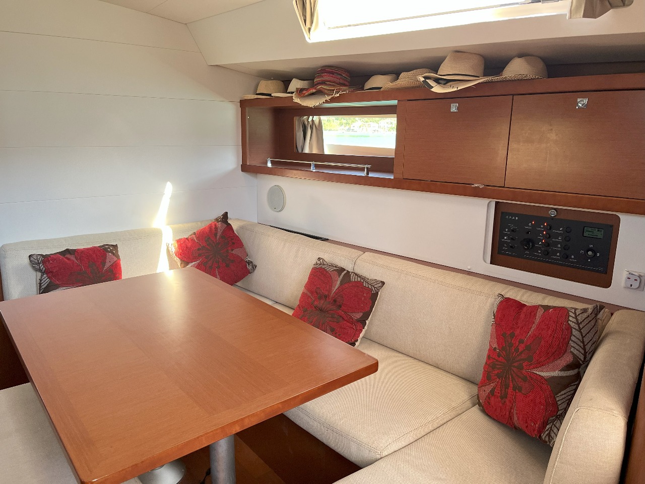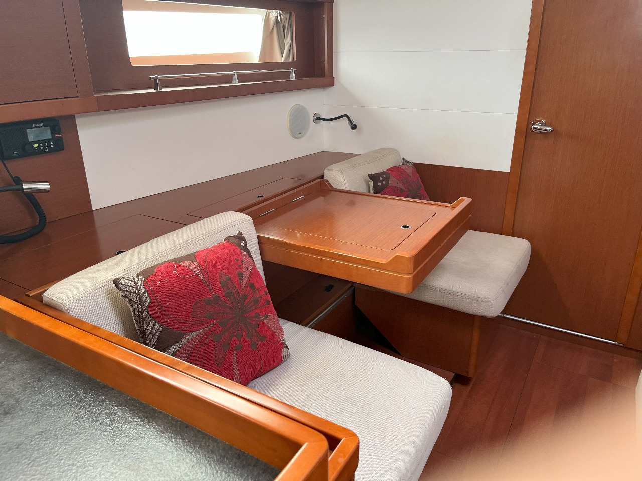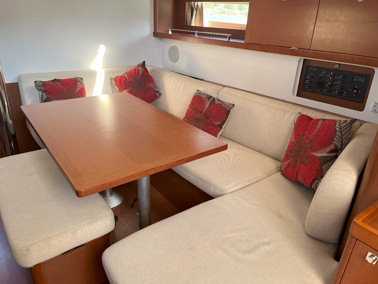 - Saloon: large dining table (convertible to double berth), two armchairs, chart table