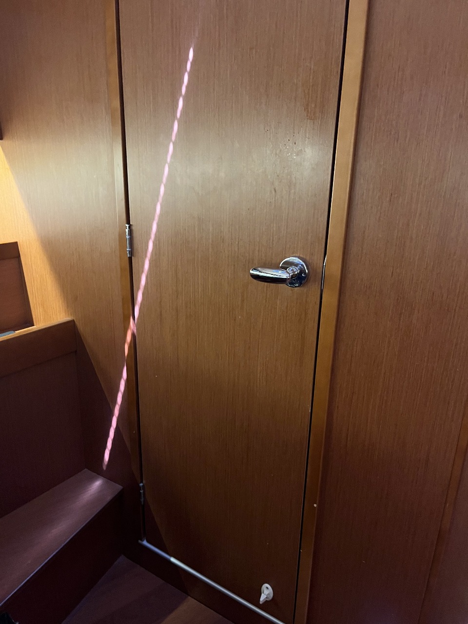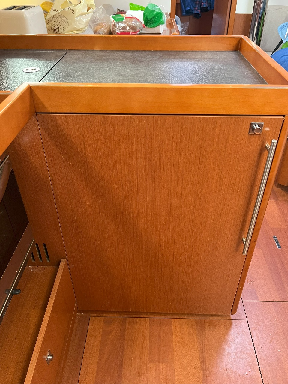 The electric windlass with chain counter, cockpit-controlled genoa track, and electric halyard winch make sail handling effortless. Every detail has been thoughtfully upgraded, from leather-covered wheels (new in 2023) to the easily maintained Danish-oiled cockpit table. This yacht is ready to cruise in comfort without compromise.