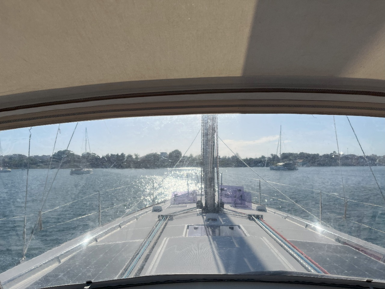 - Sturdy mainsheet arch with sprayhood & bimini attached