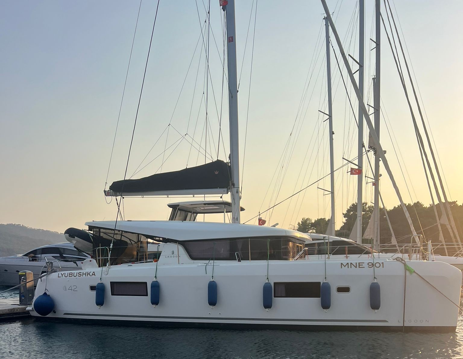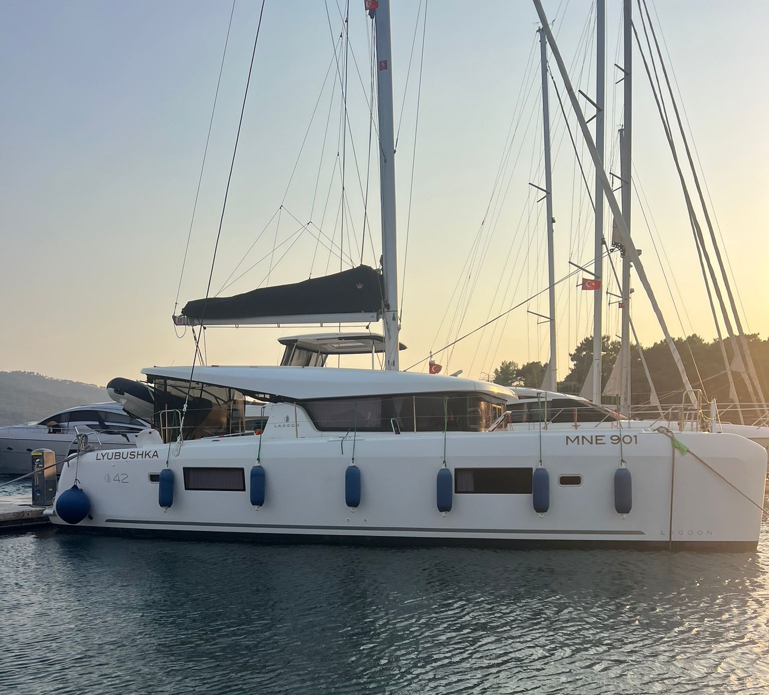 The Lagoon 42 (2023) is a modern, well-equipped sailing catamaran that combines comfort, performance, and elegance in a compact yet spacious design. It offers exceptional stability and ease of handling, ideal for both bluewater cruising and coastal adventures. With a CE Category A (Ocean) rating and robust GRP construction, this catamaran is ready for offshore passages.