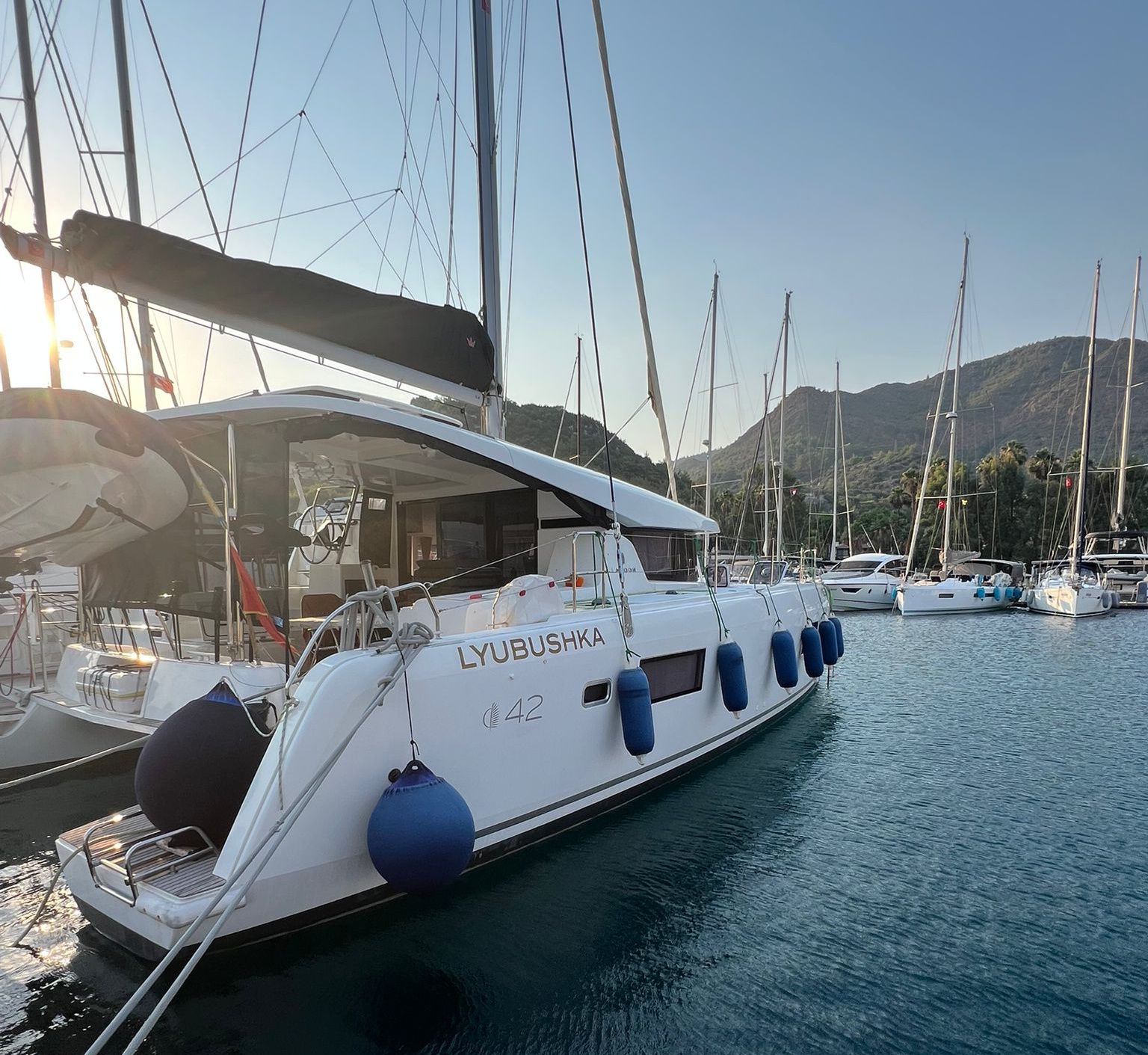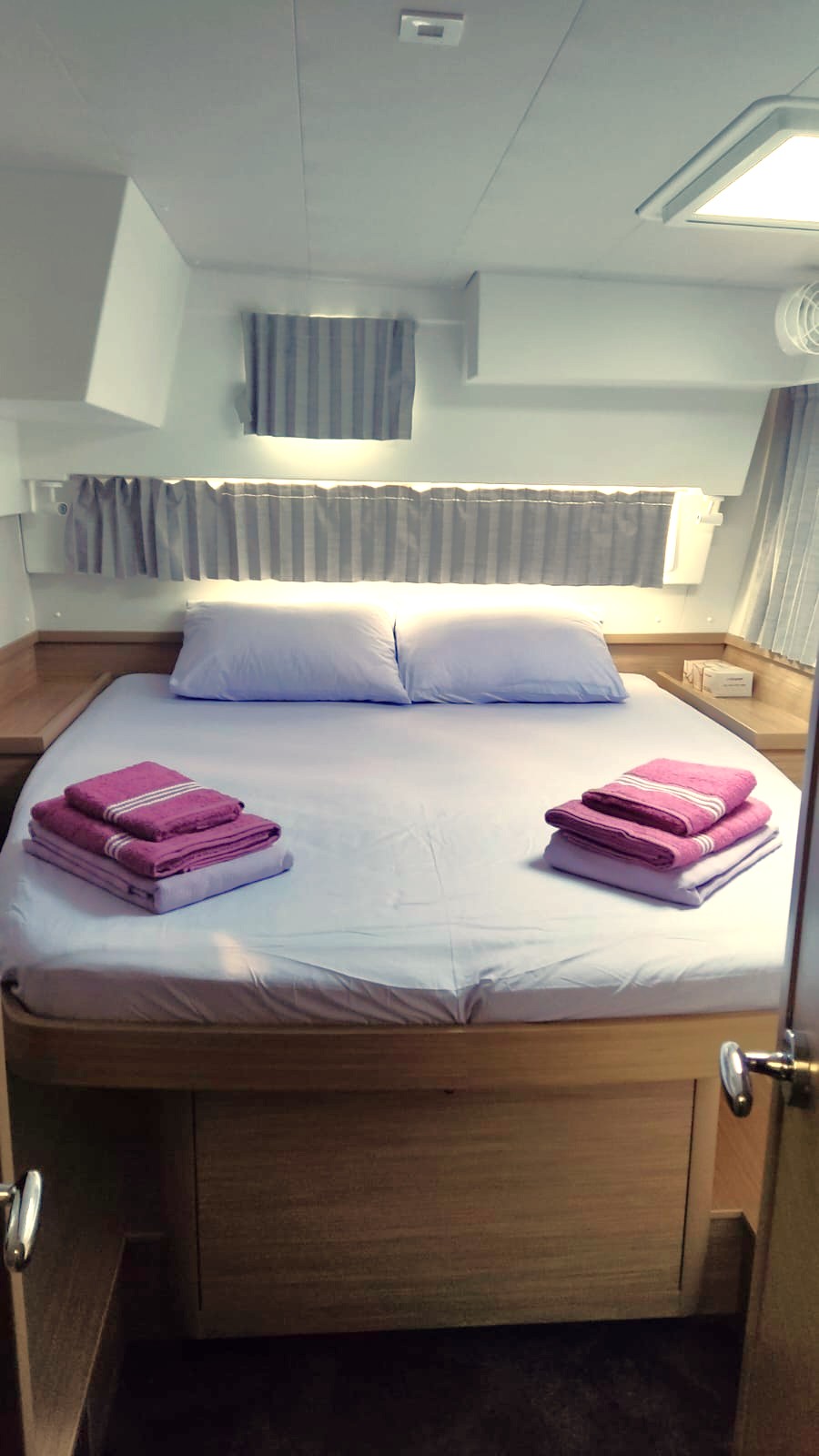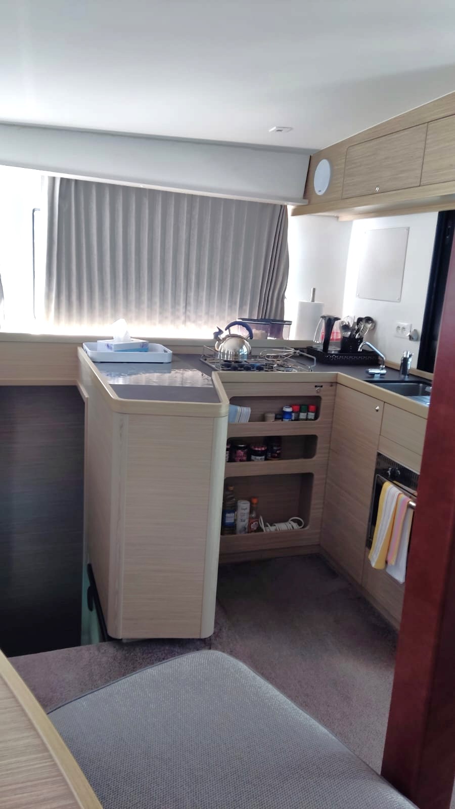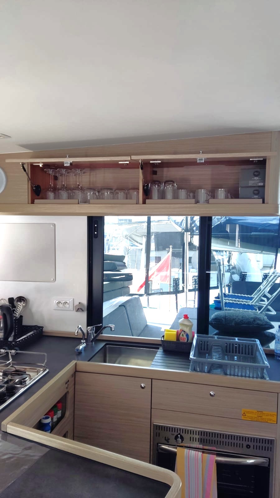 The Lagoon 42’s interior layout offers impressive livability with 4 double guest cabins, each with en-suite toilets and showers, and additional crew quarters, comfortably accommodating up to 8 guests.