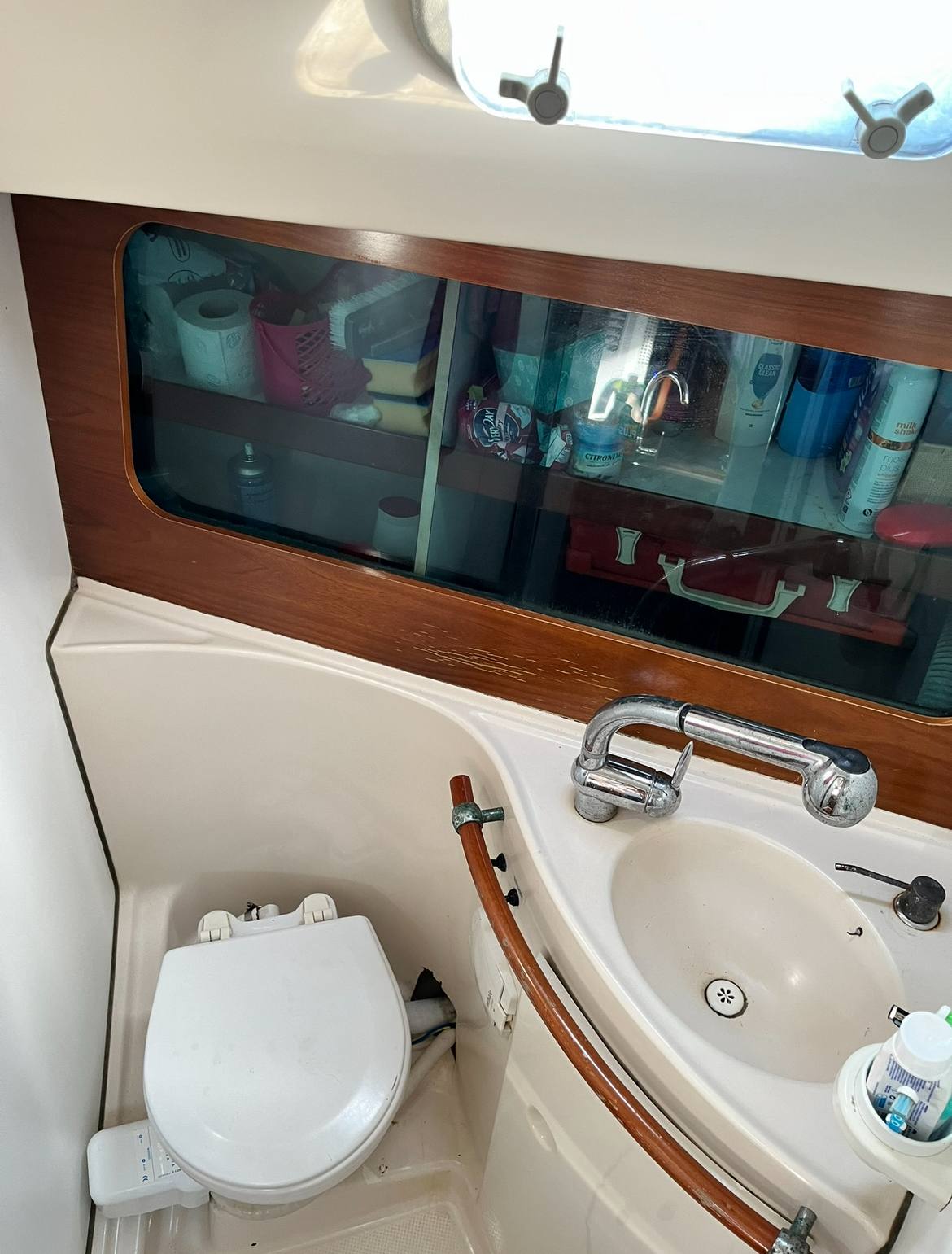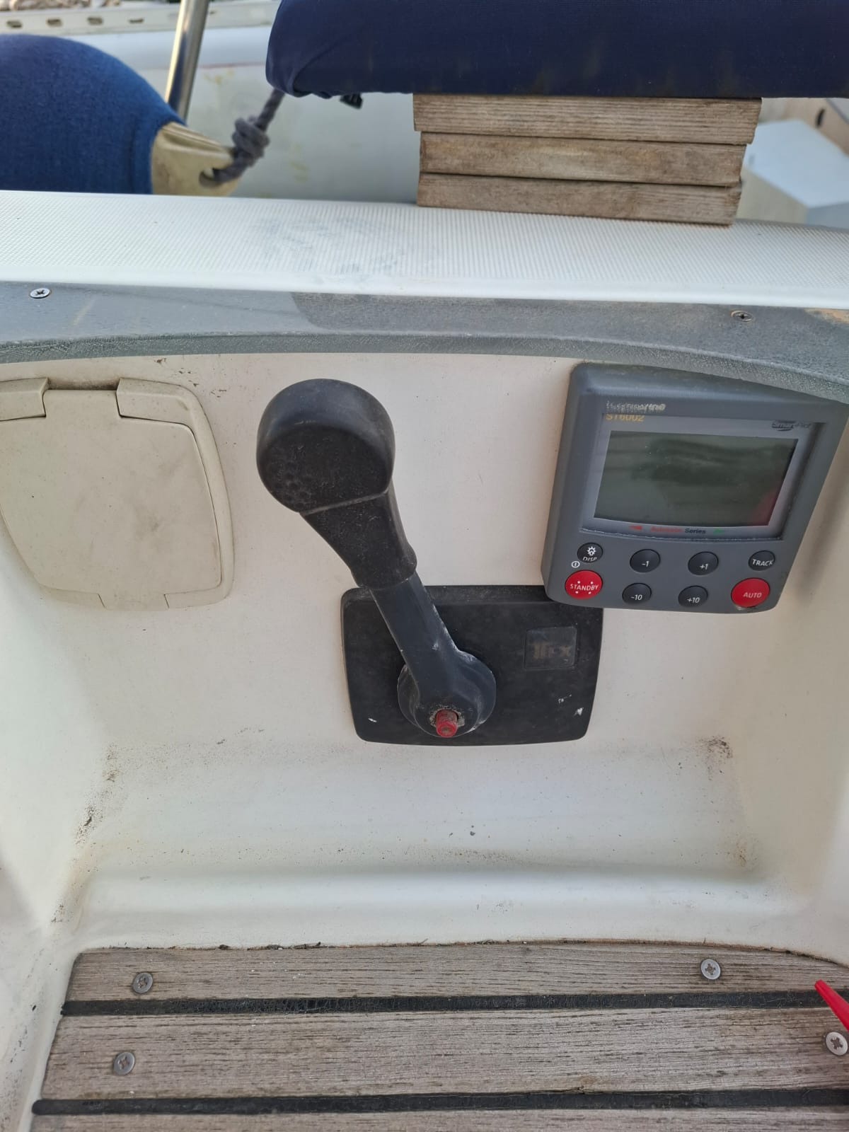 The boat is outfitted with essential modern equipment and thoughtful onboard amenities. The yacht includes comprehensive navigation tools such as a fixed VHF radio, GPS, autopilot, and a Raymarine ST40 echo sounder.
