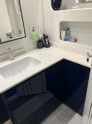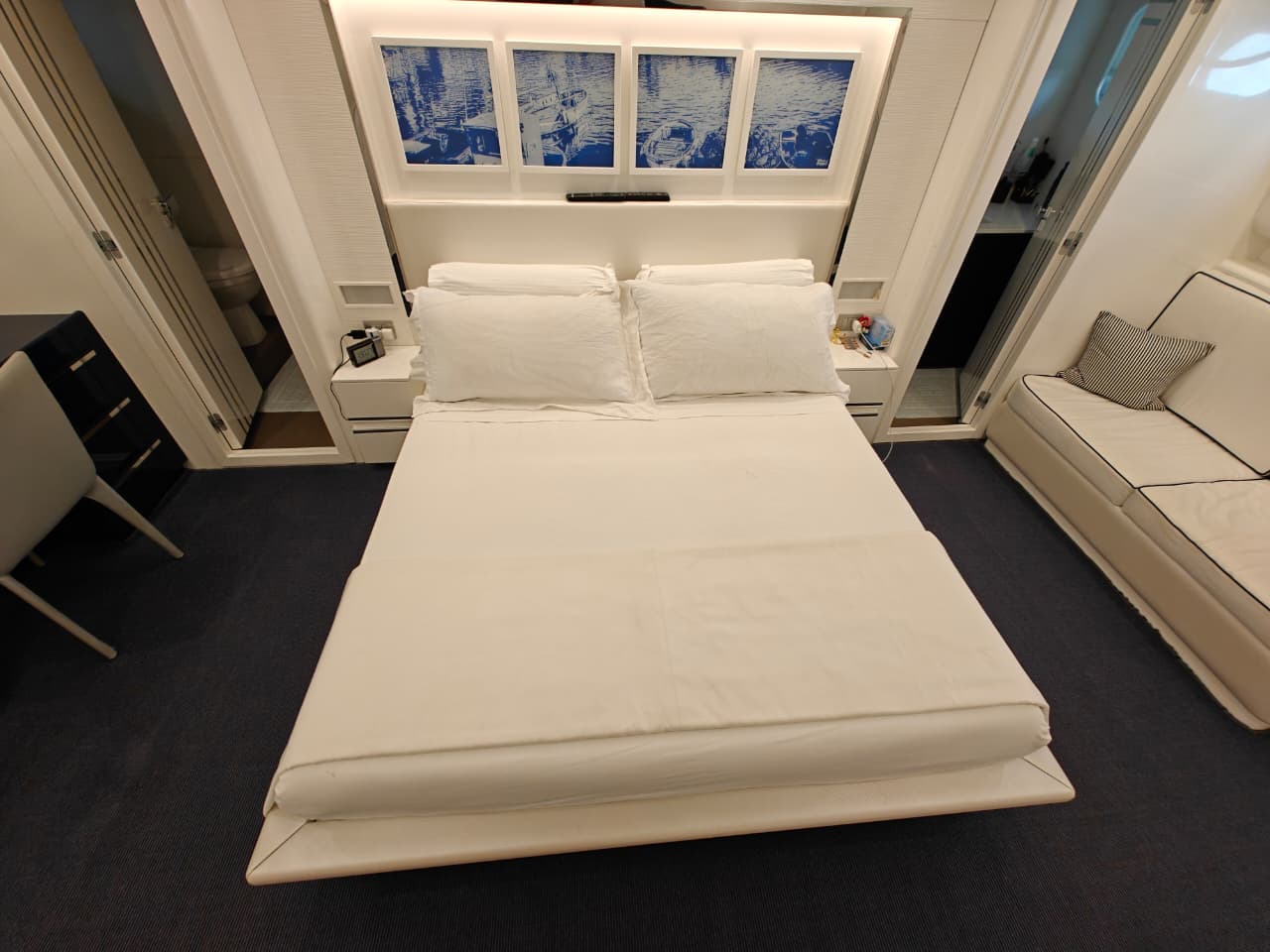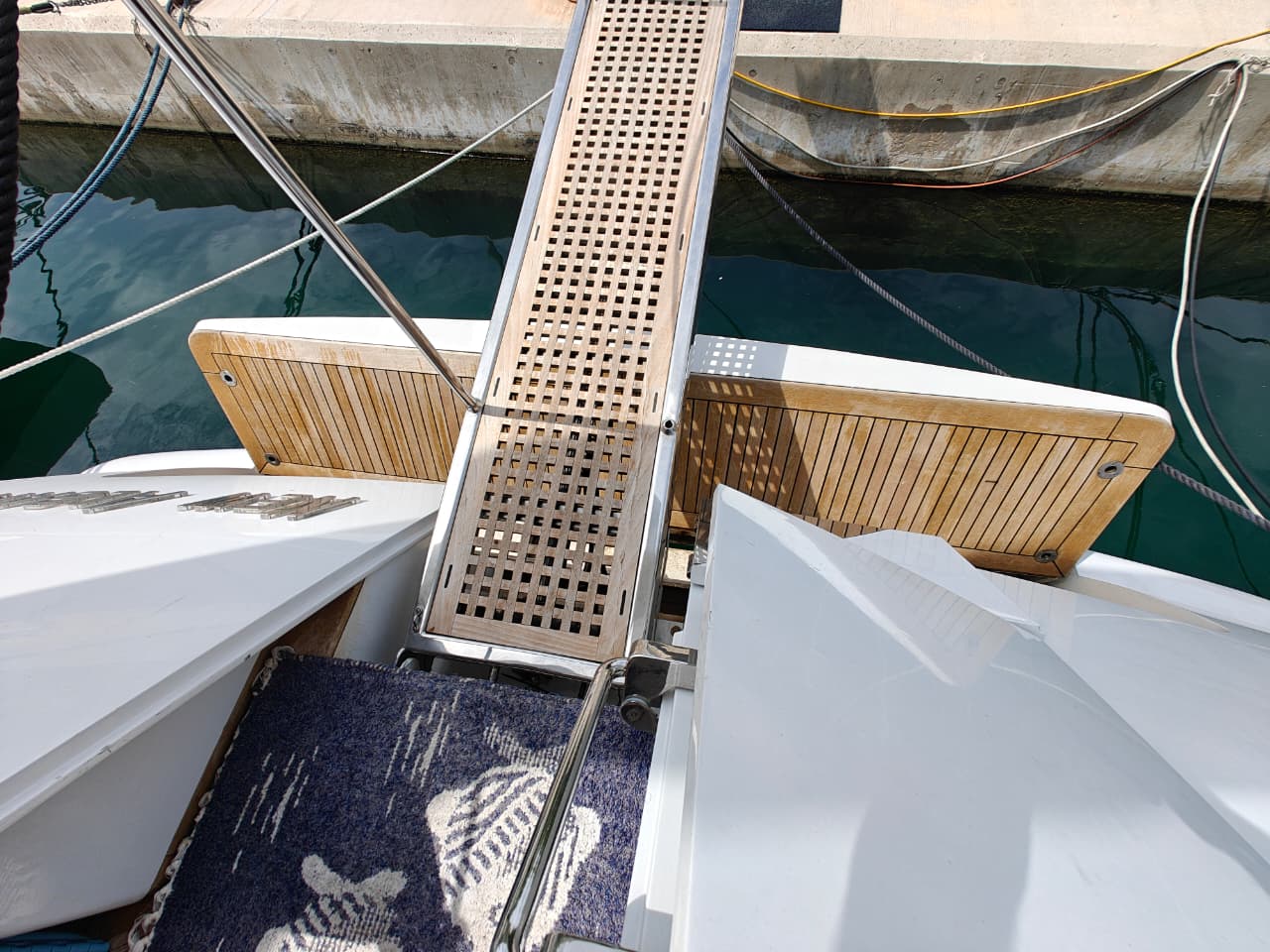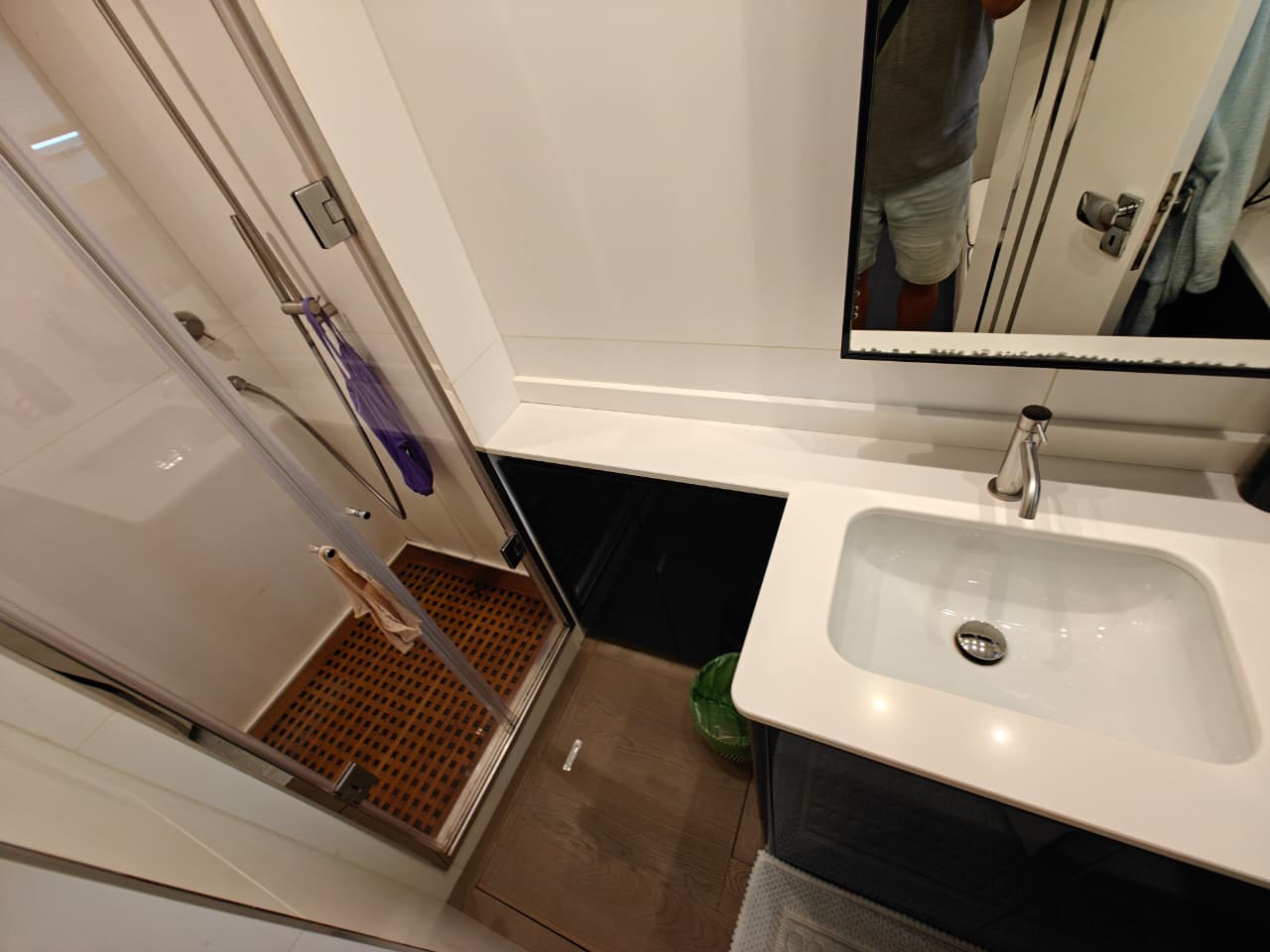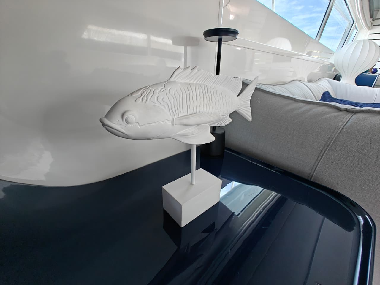 Designed for both comfort and functionality, the yacht offers an inviting layout with three main guest cabins: a full-beam master suite with two bathrooms, a VIP double cabin with en-suite shower, and a triple cabin with Pullman beds and separate facilities. Crew accommodations are generous, featuring two dedicated crew cabins and a separate bathroom.