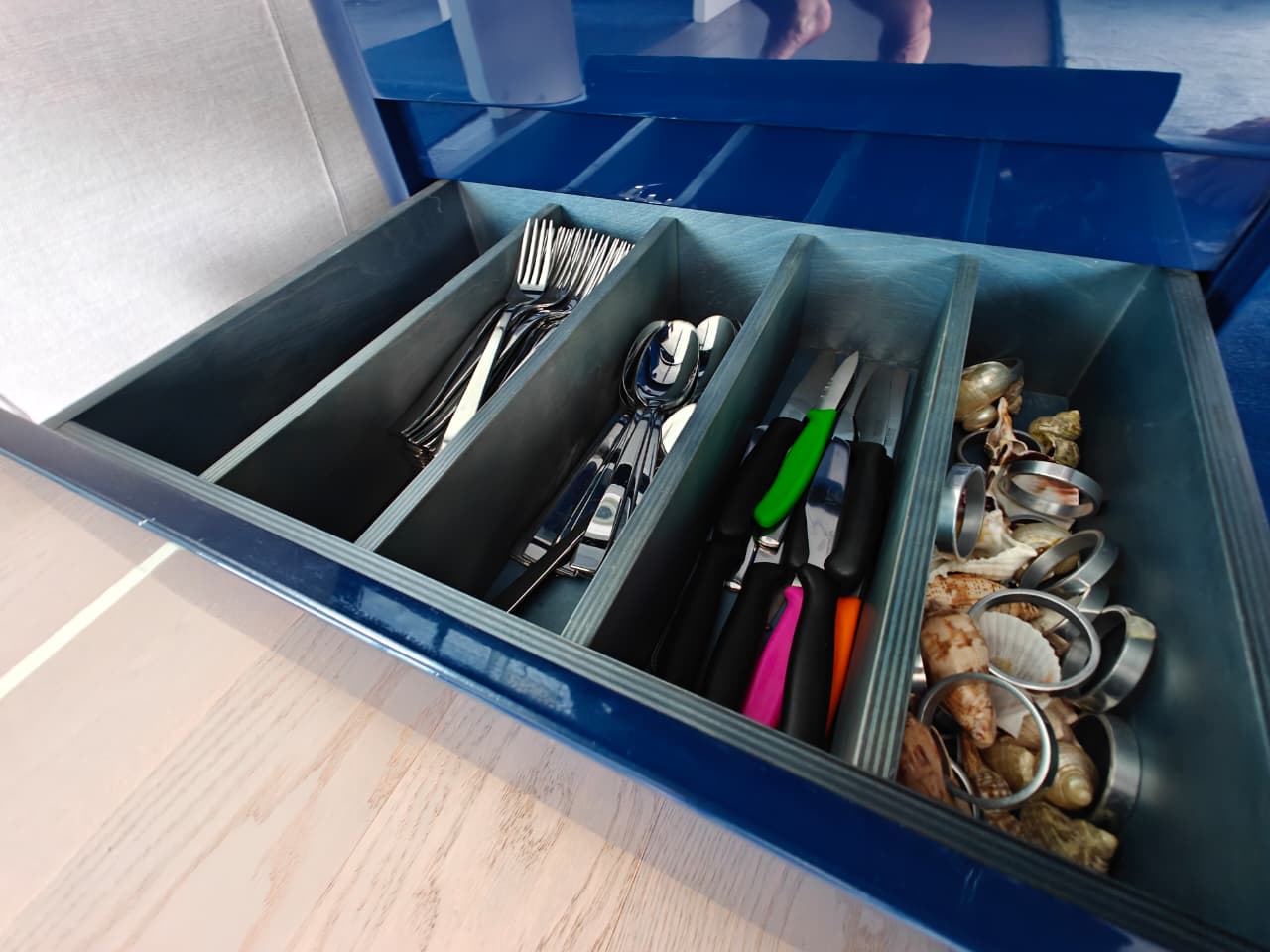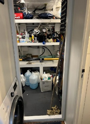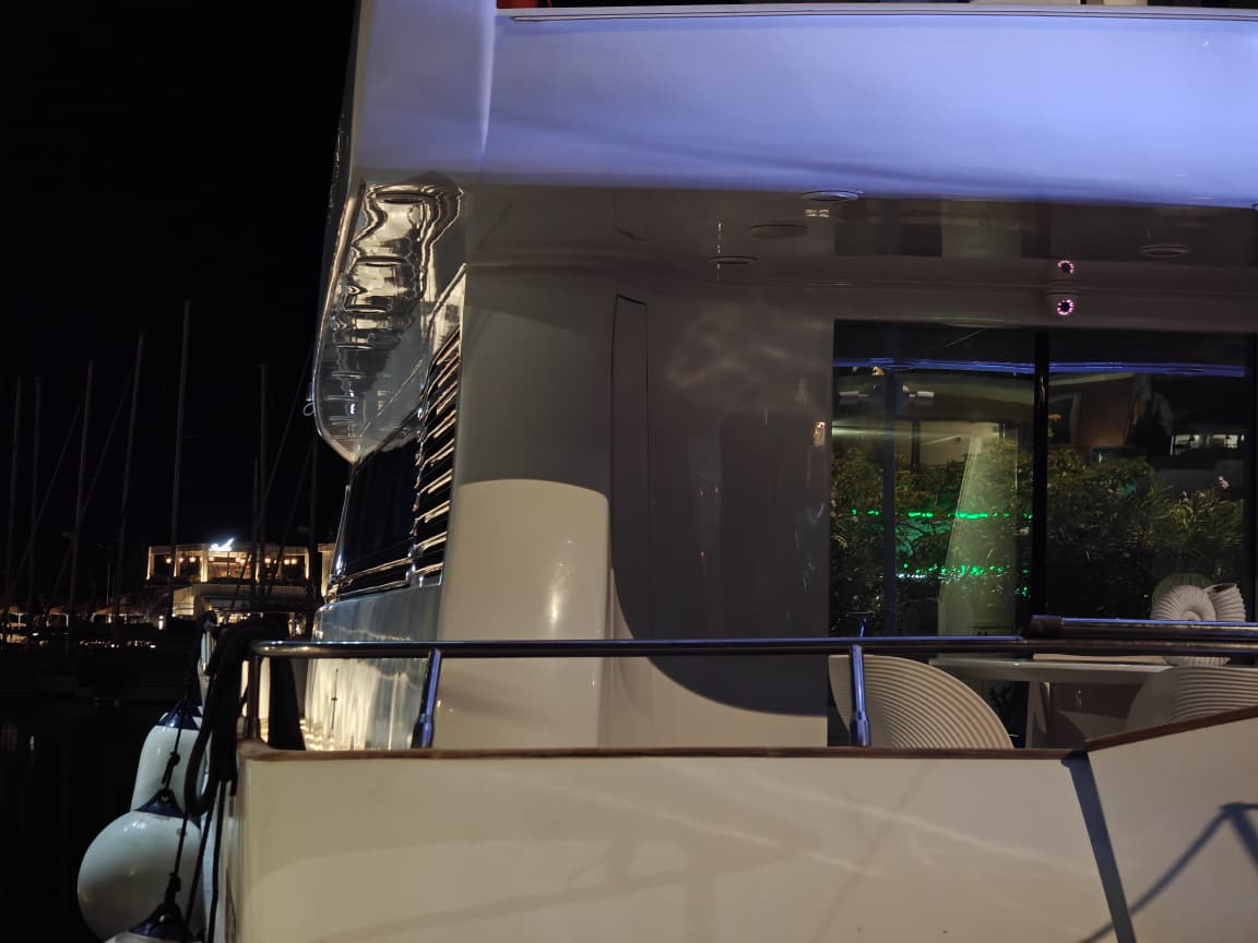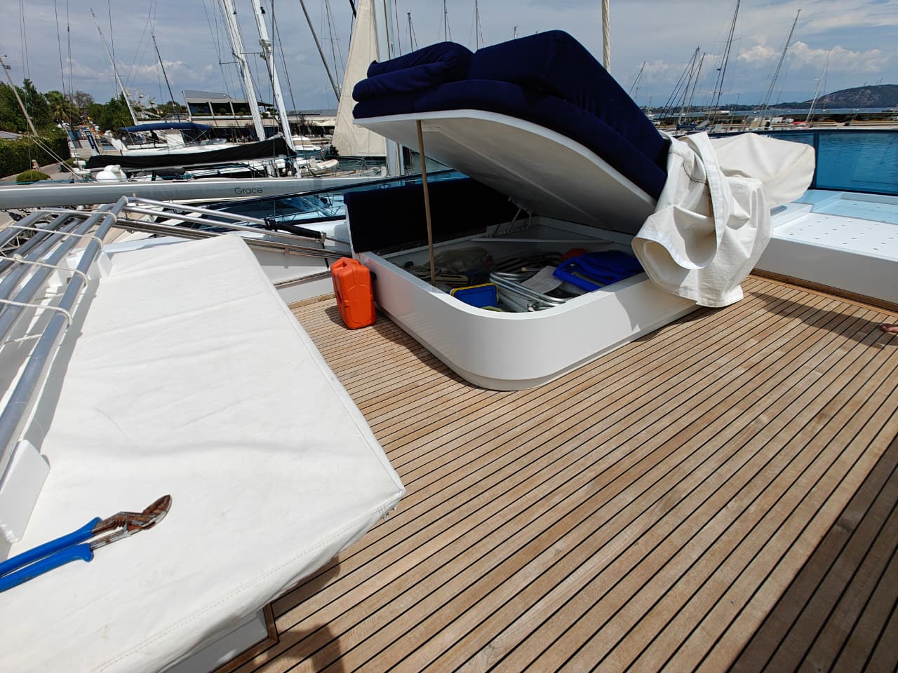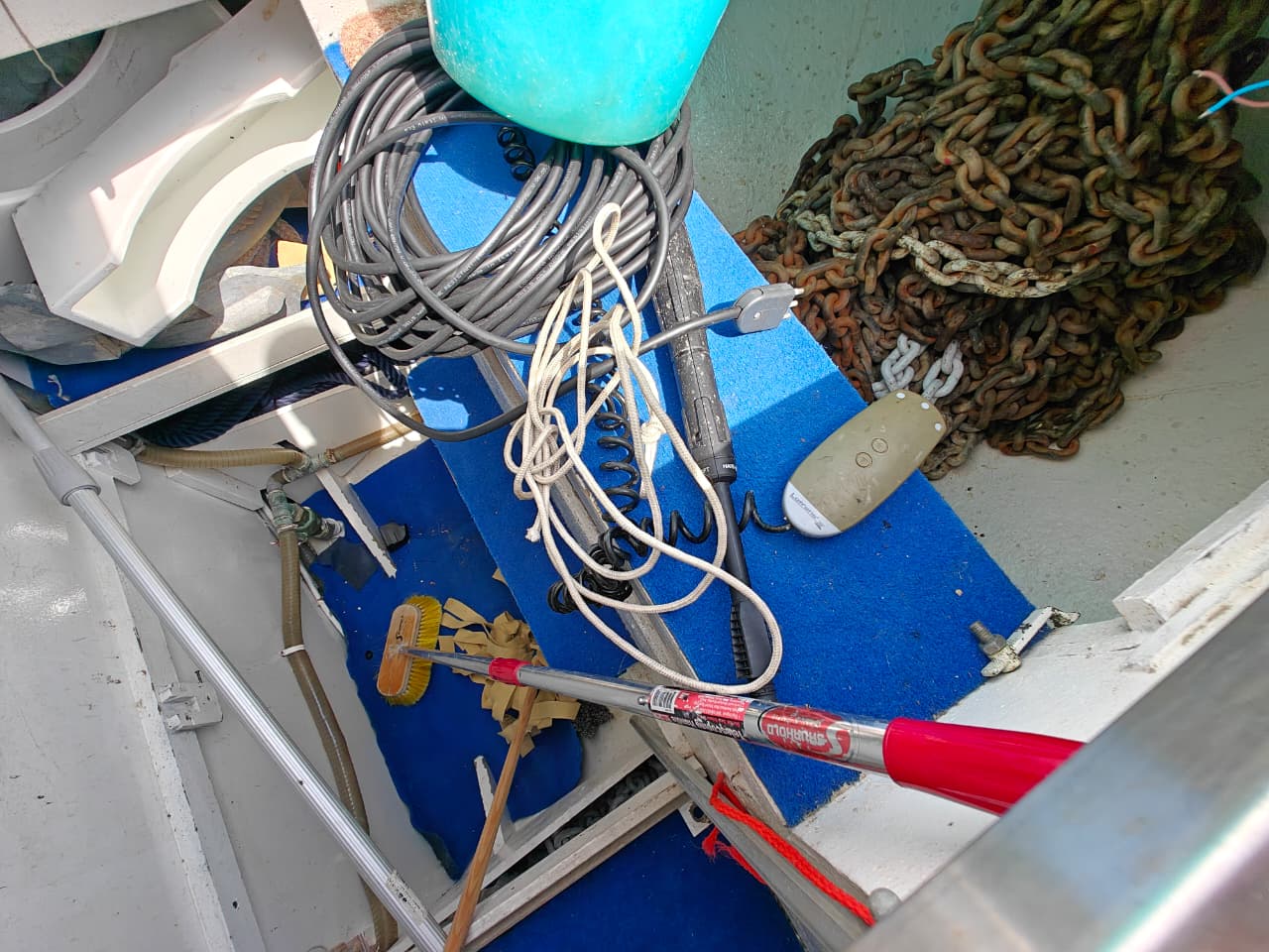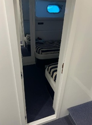 - 3 refrigerators (1 on/in flybridge, in sailor’s cabin near engine room)