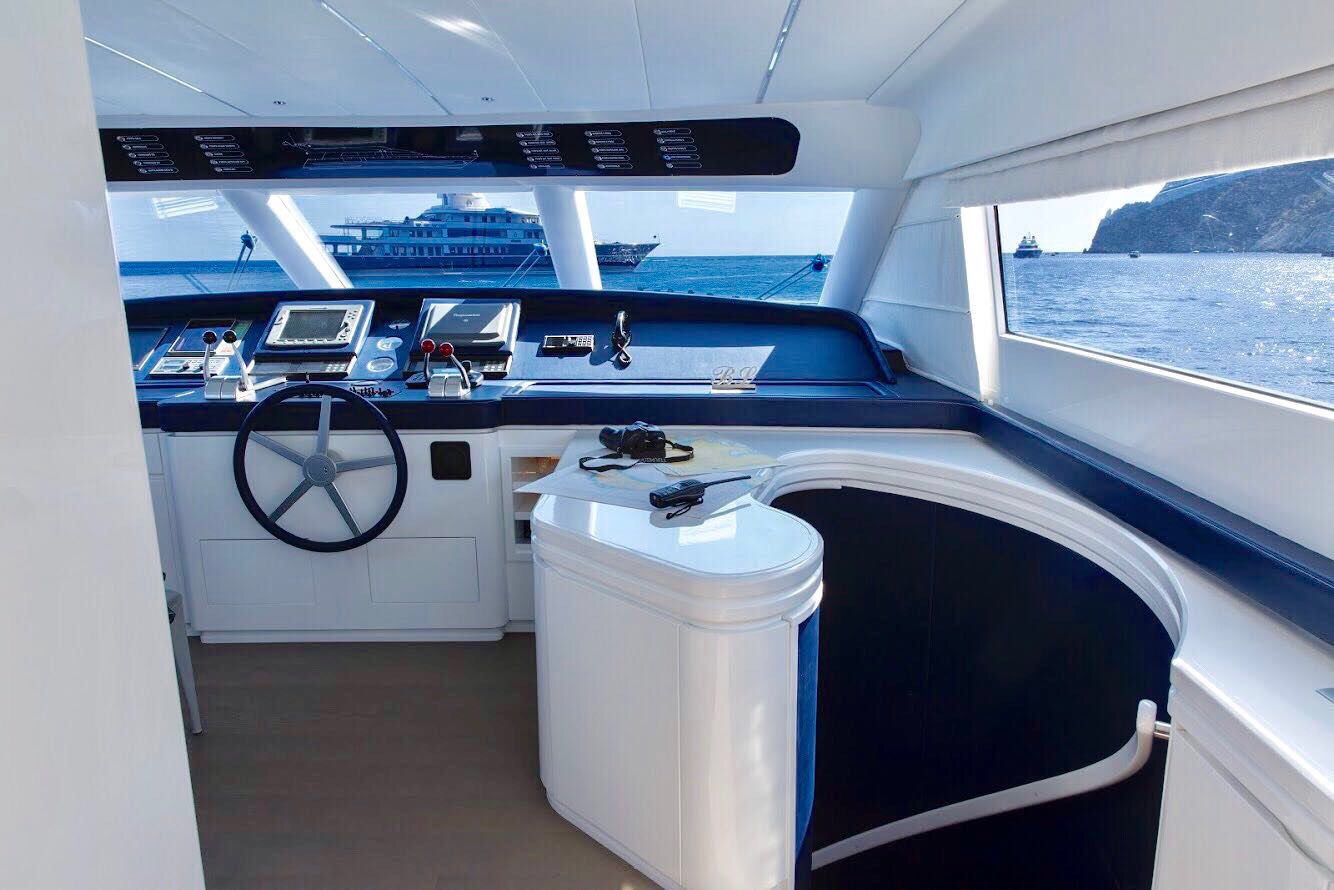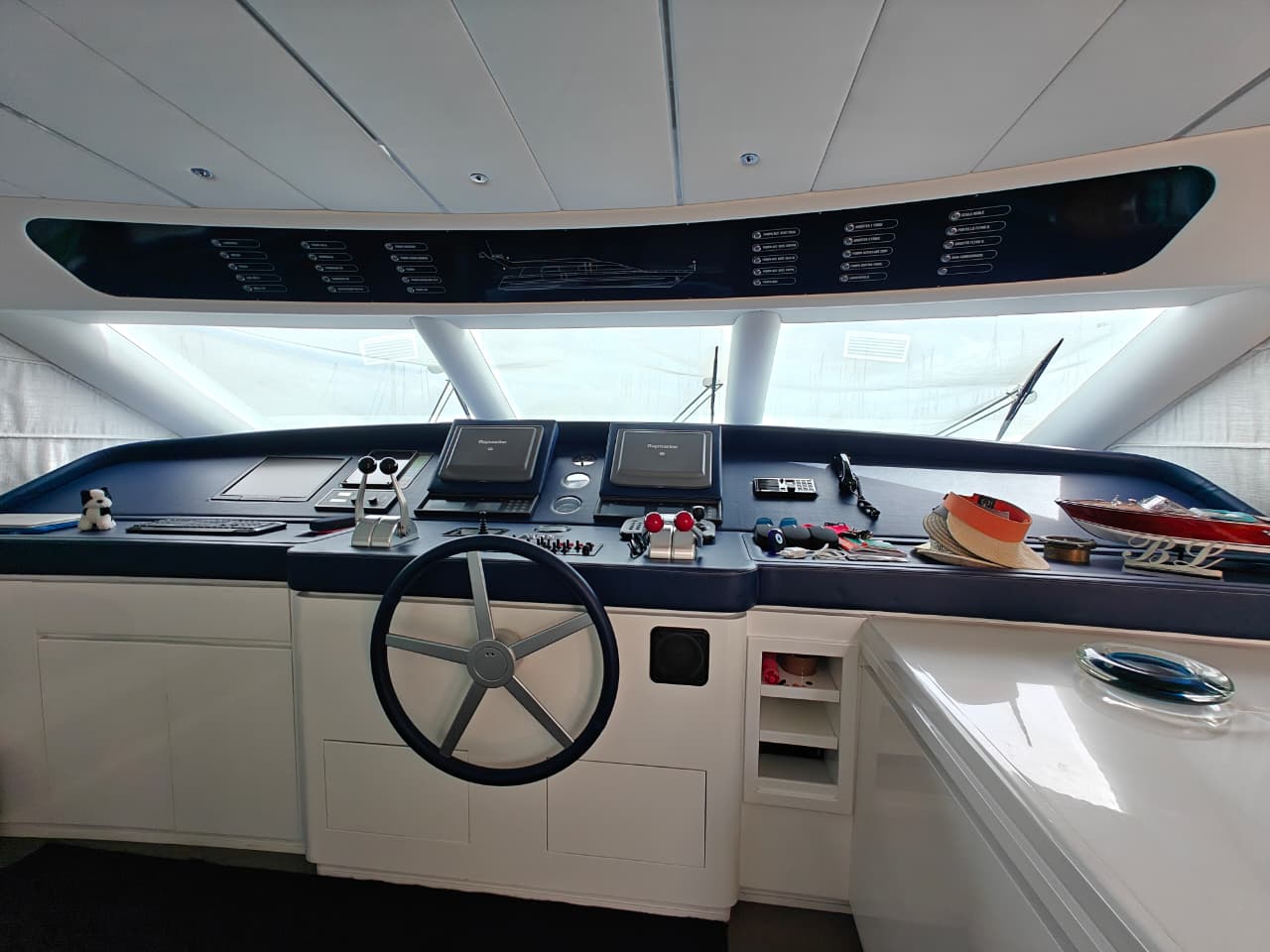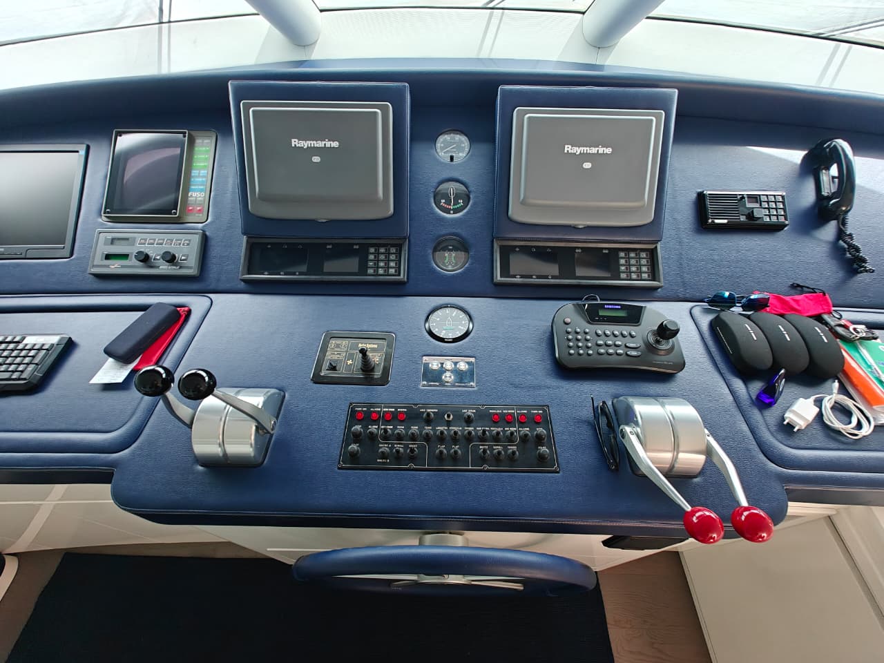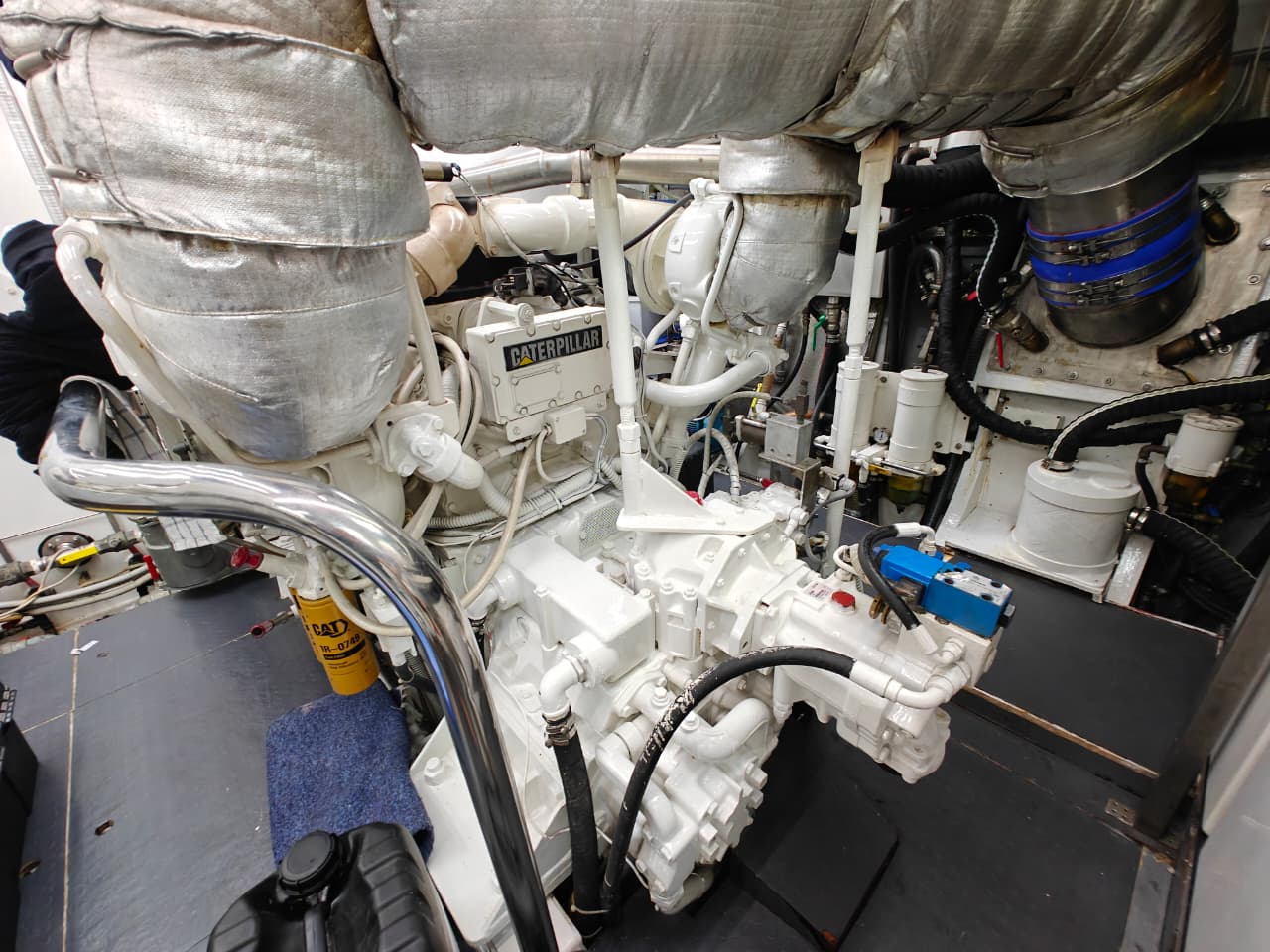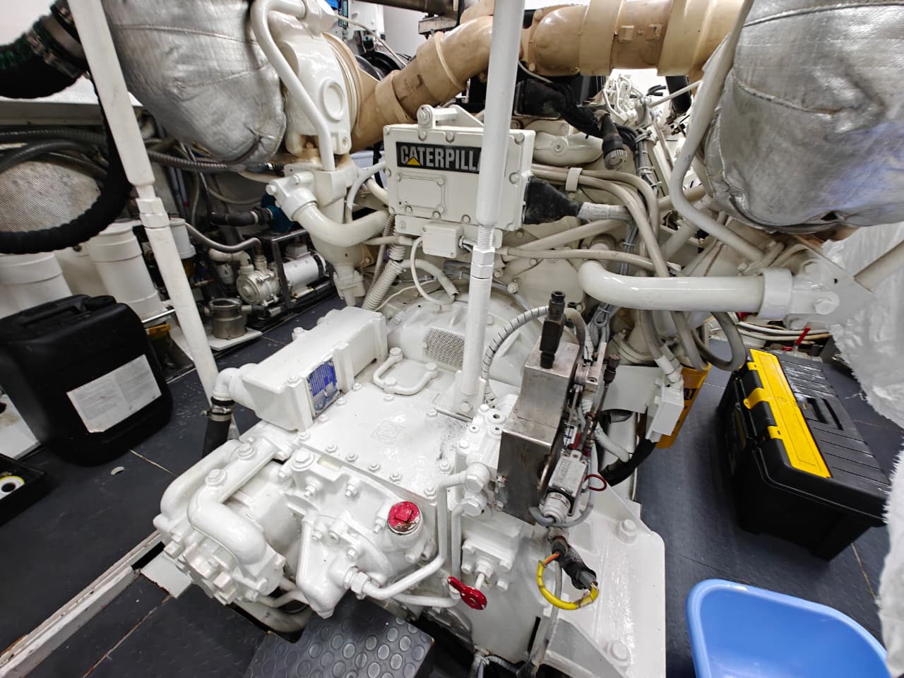 The yacht is powered by two powerful Caterpillar 3412E Dita engines (2 x 1400 HP) installed new in 2014, with only 800 engine hours, offering reliable performance for long-range cruising.