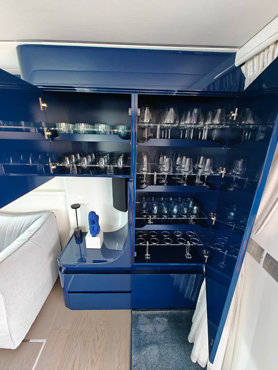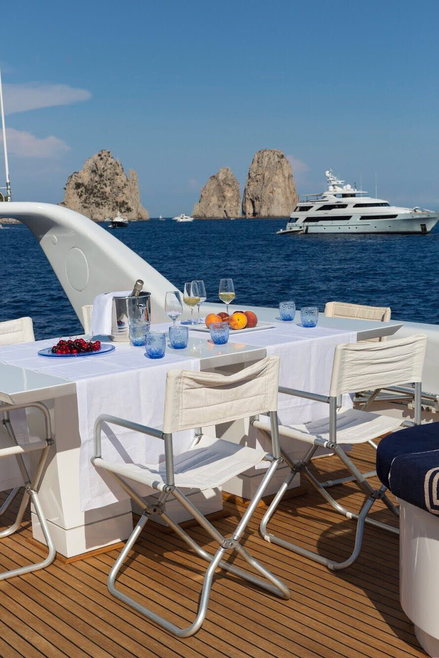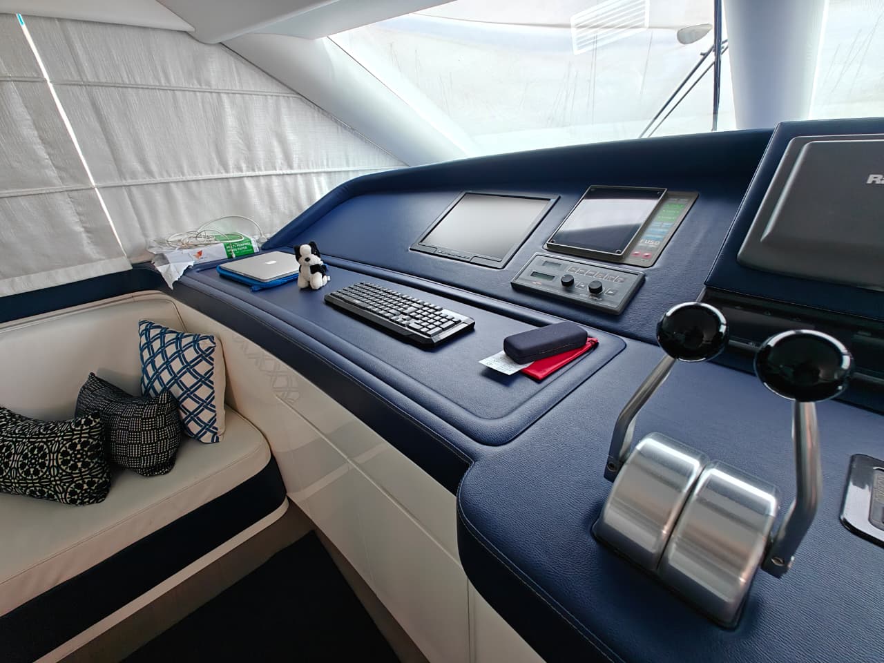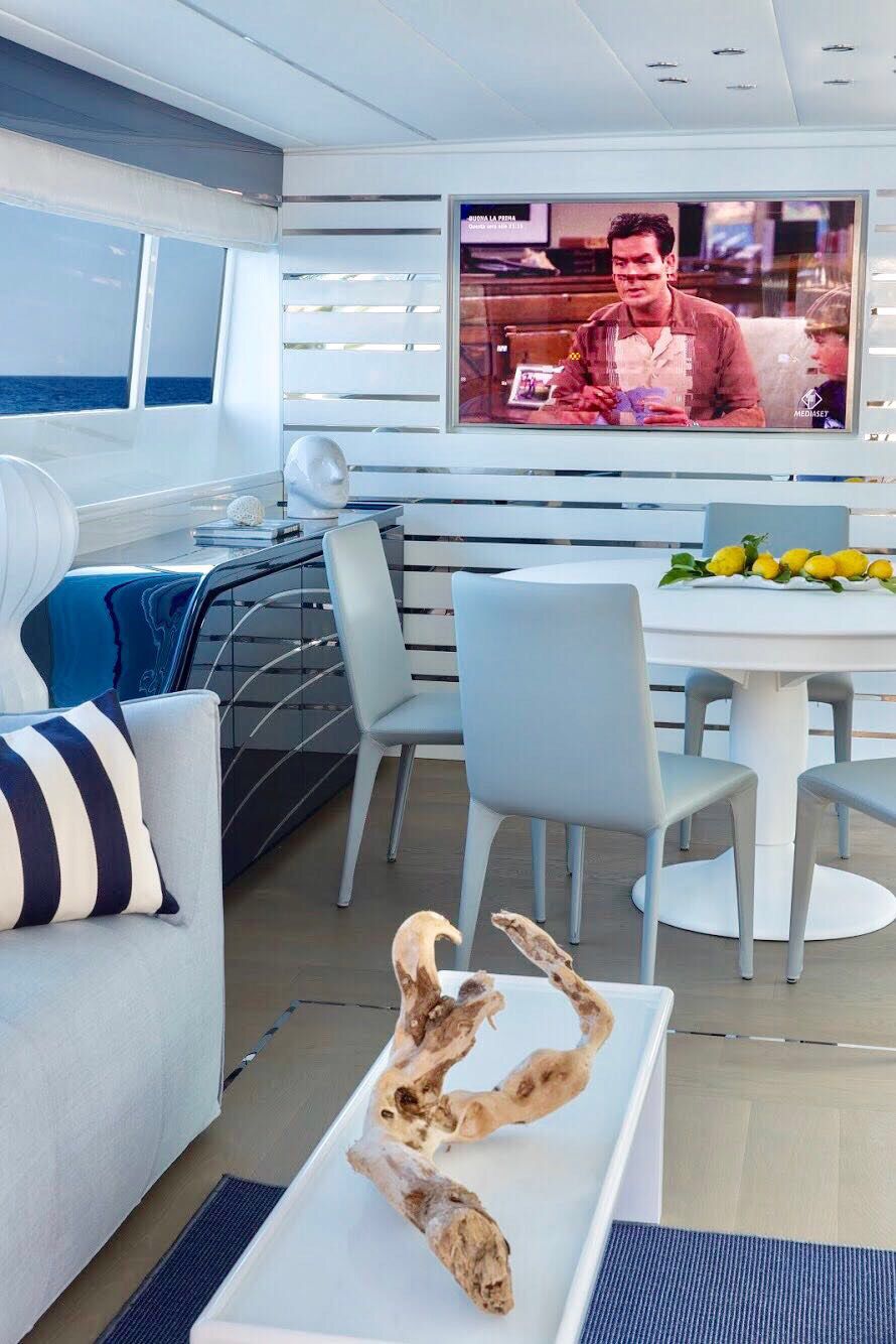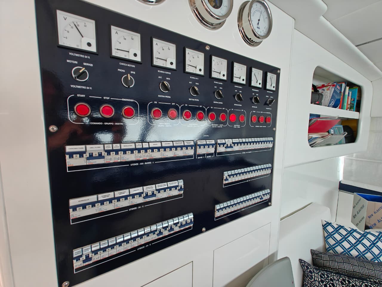 The yacht is powered by two powerful Caterpillar 3412E Dita engines (2 x 1400 HP) installed new in 2014, with only 800 engine hours, offering reliable performance for long-range cruising.