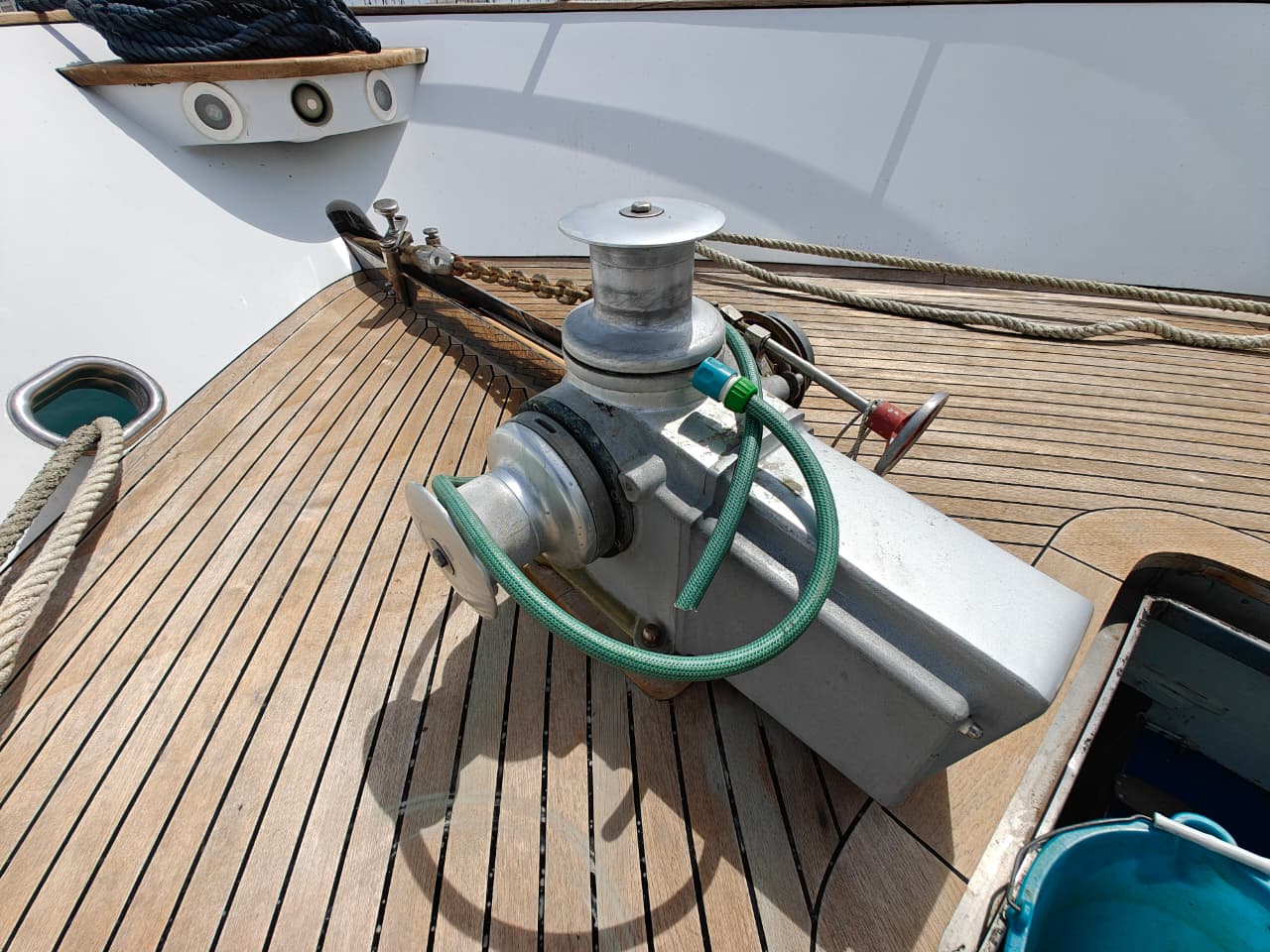 Equipped with shaft drive transmission and four-blade bronze propellers, it includes essential technical systems such as twin generators, a watermaker, inverter, air conditioning, and full hydraulic and electrical support systems.