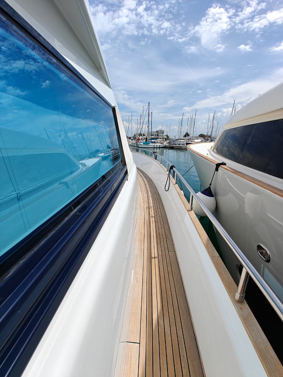 Teak decking, high-end appliances, satellite TV, and surround sound enhance the onboard experience, making the Cantieri Diano 24 ideal for private cruising.