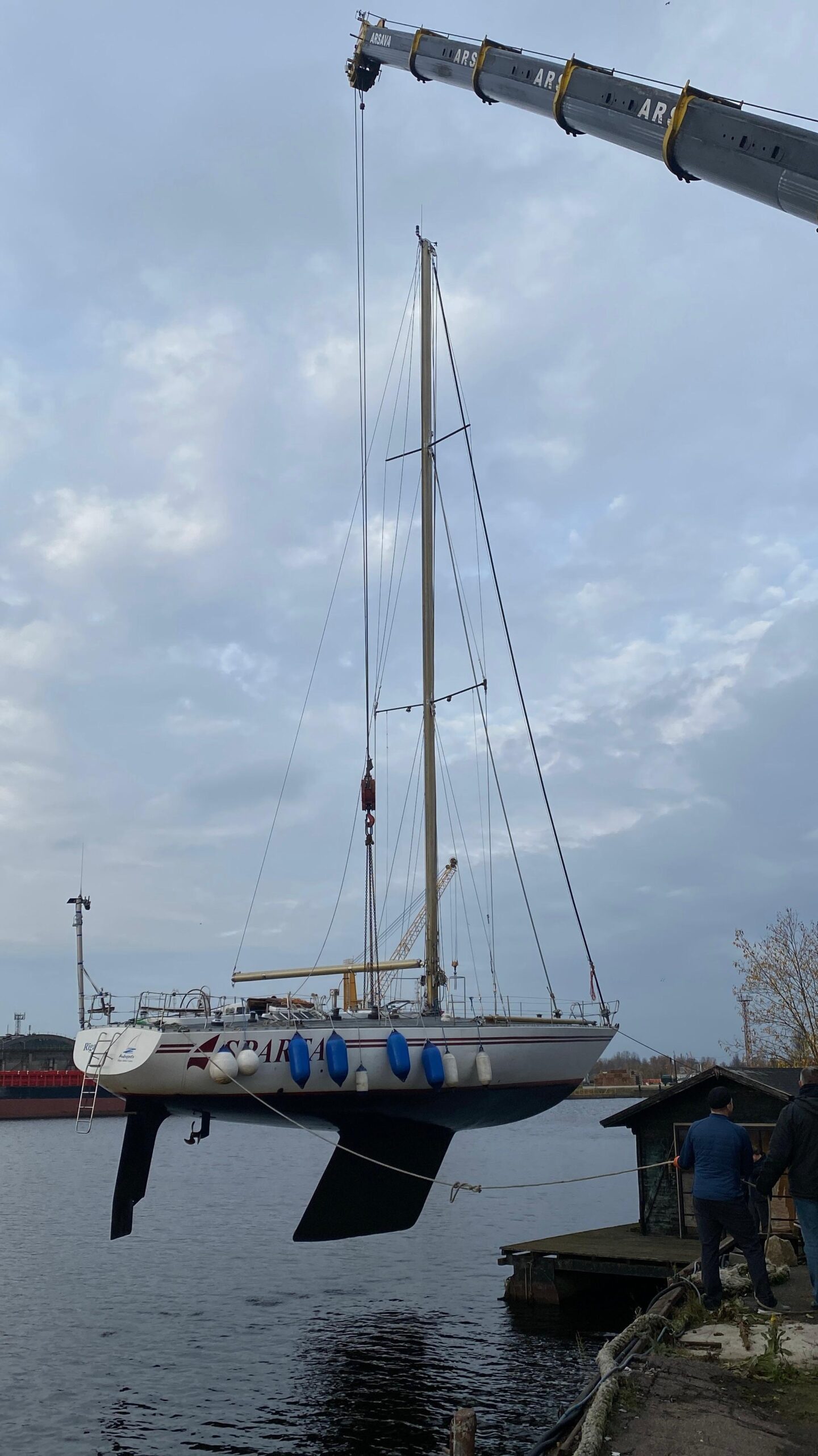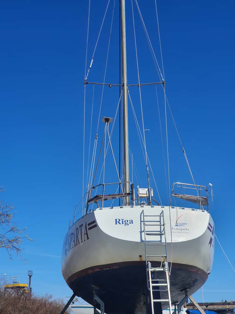 - Spinnaker poles ×2, guys, new sheets, mooring lines (2 × 40 m), 7 fenders