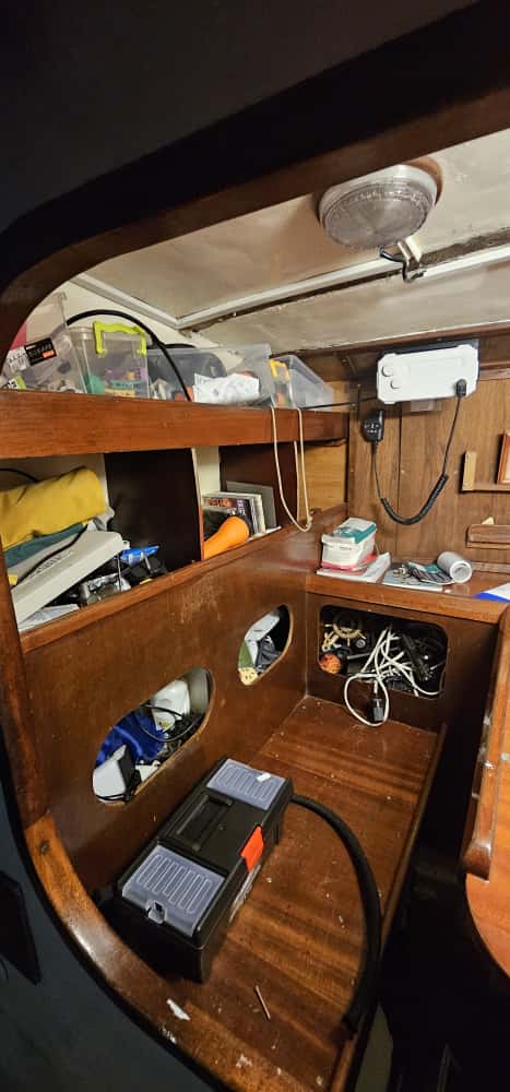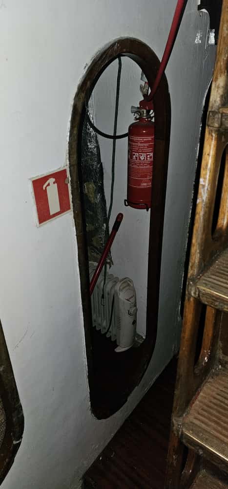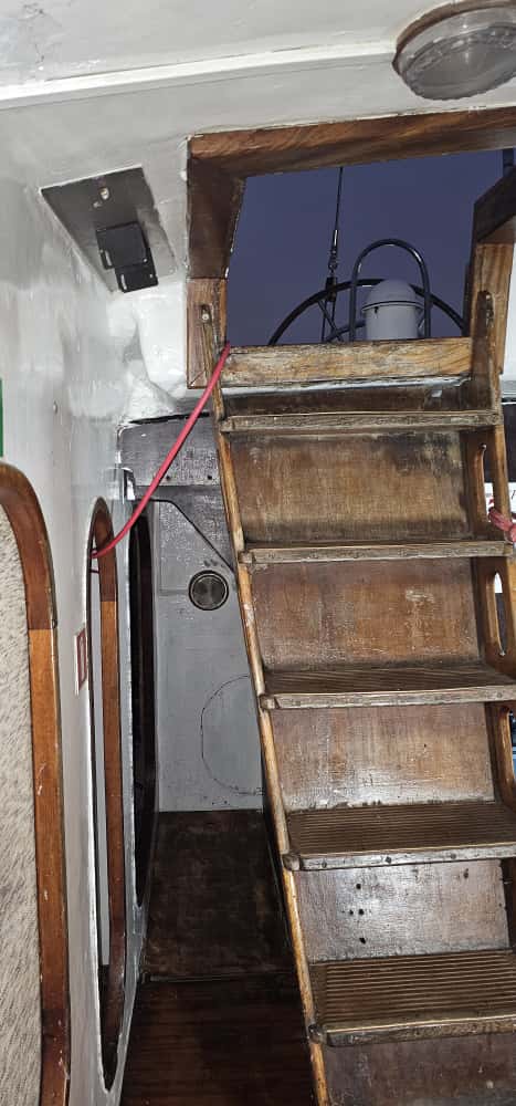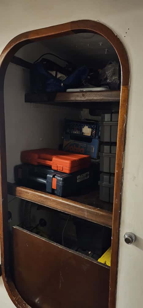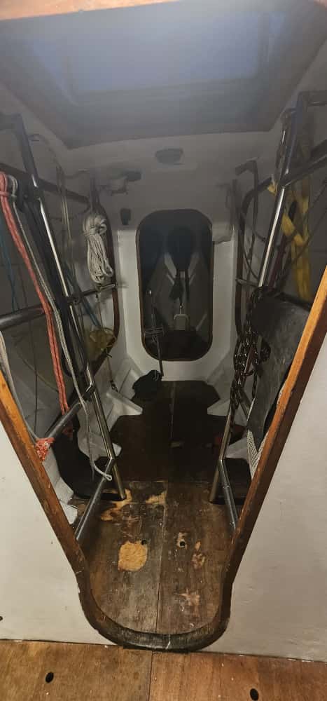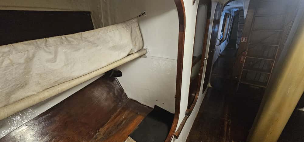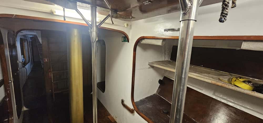 - Emergency tiller, wooden plugs, medical kit, bosun’s chair