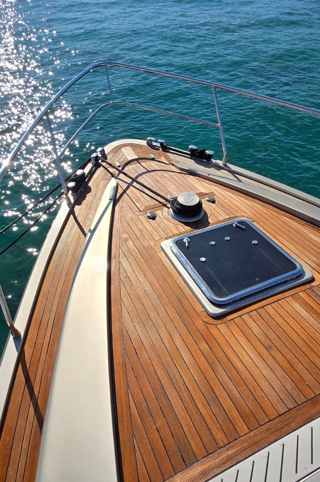 Powered by twin MTU 10V2000M93 1550 HP diesel engines with 1400 hours, she delivers an impressive cruising speed of 24 knots and a top speed of 32 knots. Equipped for superior maneuverability and fuel efficiency, the yacht offers a smooth and exhilarating ride. A complete refit in 2022 ensures she remains in excellent condition, ready to cruise in style across the Mediterranean.
