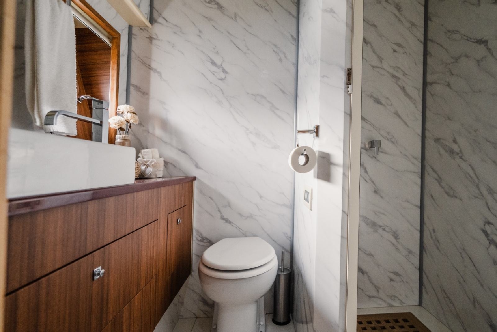 Twin Yanmar 15 kW generators, inverter, and two boilers ensure all onboard systems run smoothly, providing the same comfort at sea as at home.