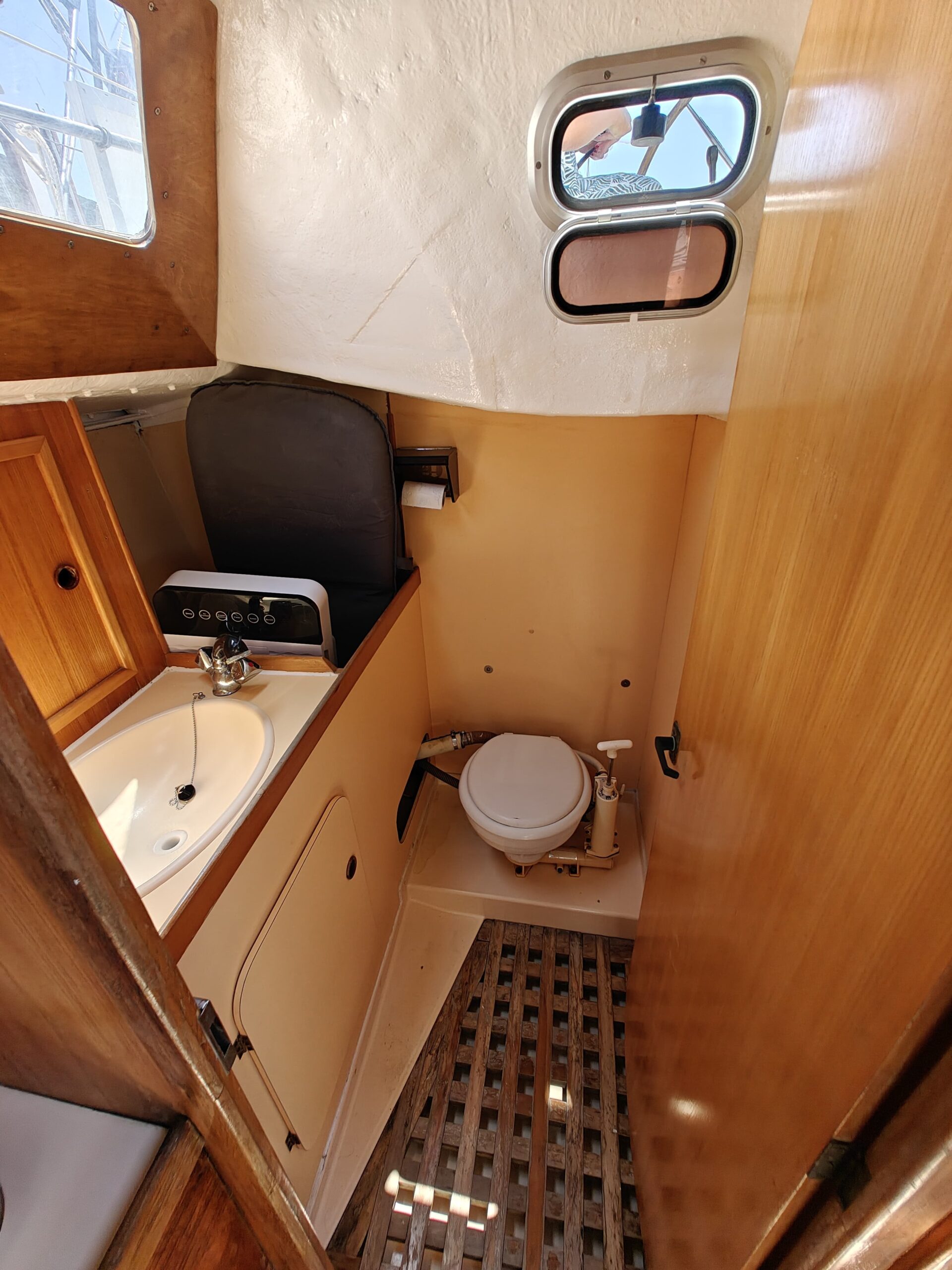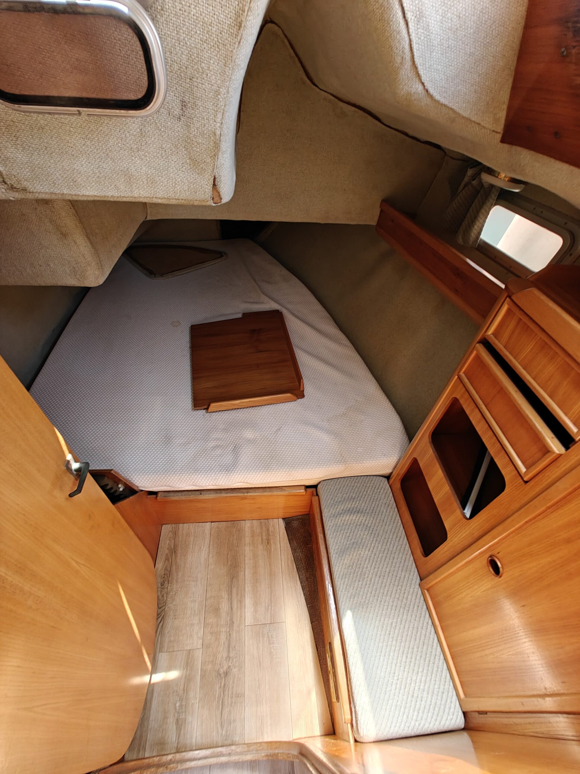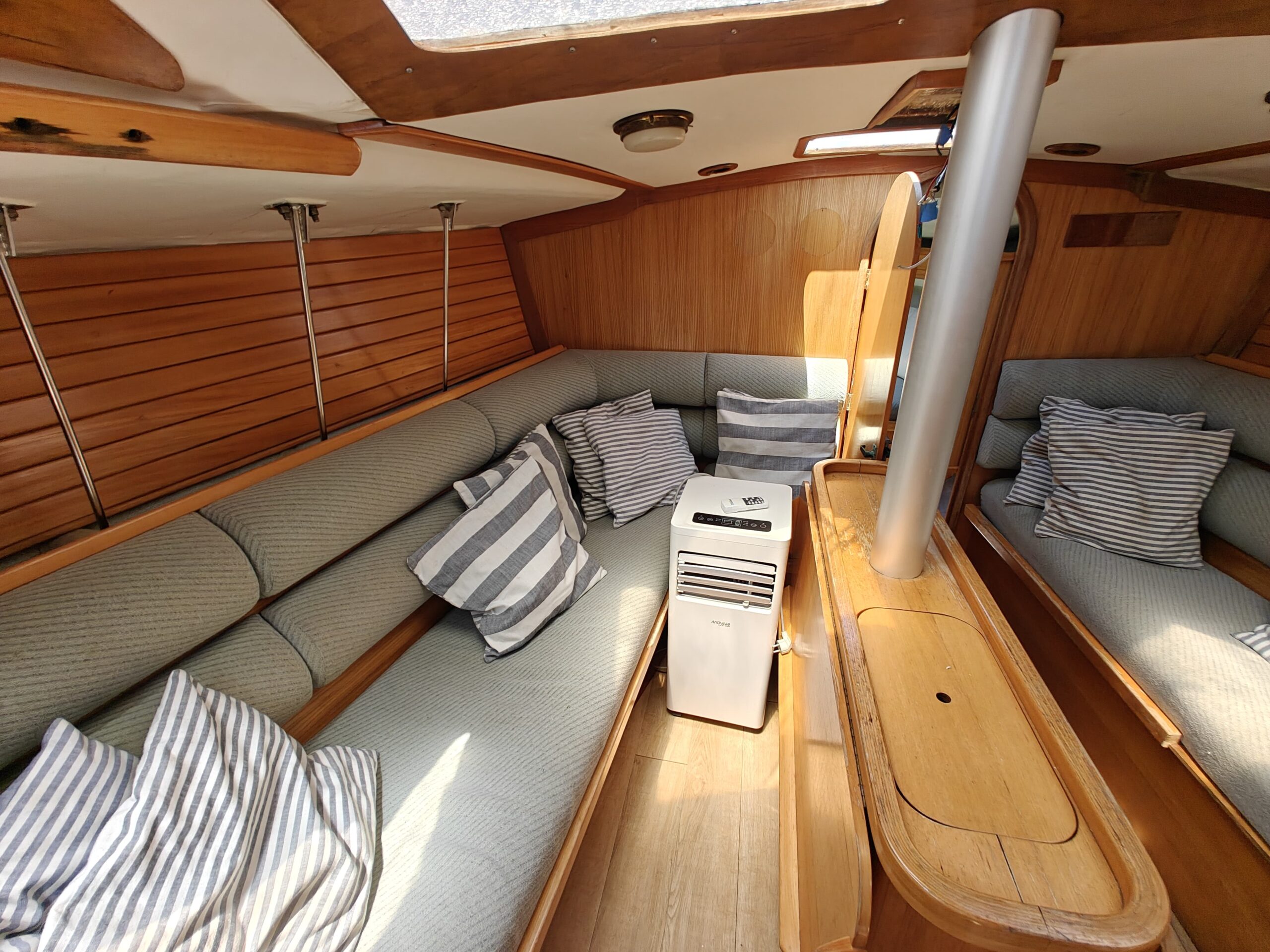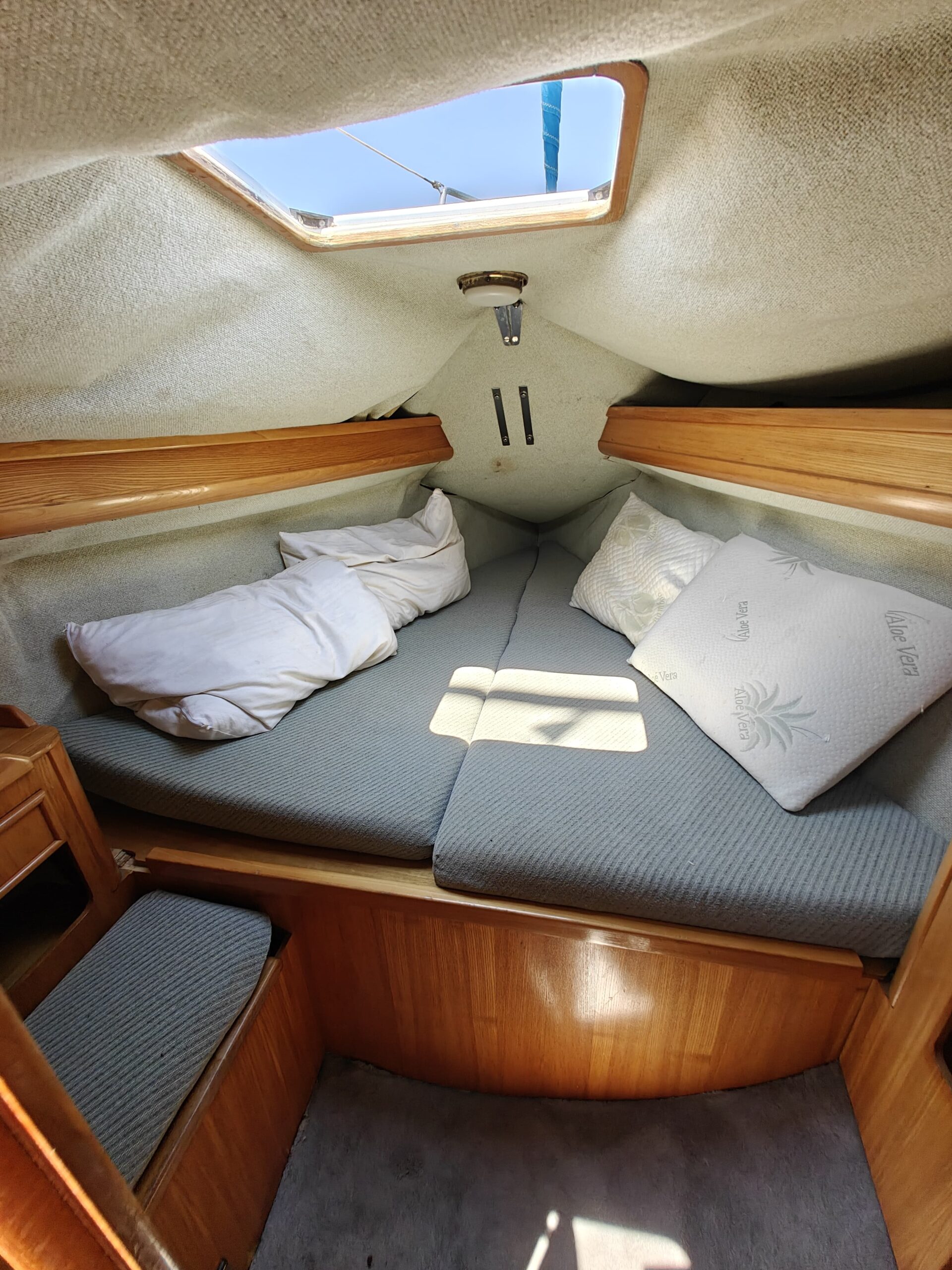 Sailing gear has been modernized with a new jib, furler, baby stay cable, and refreshed lines for the genoa and reefing systems. The sails are in great shape, genoa in perfect condition, mainsail in good condition, handled easily via four Harken winches, and supported by an Autohelm 4000 autopilot.