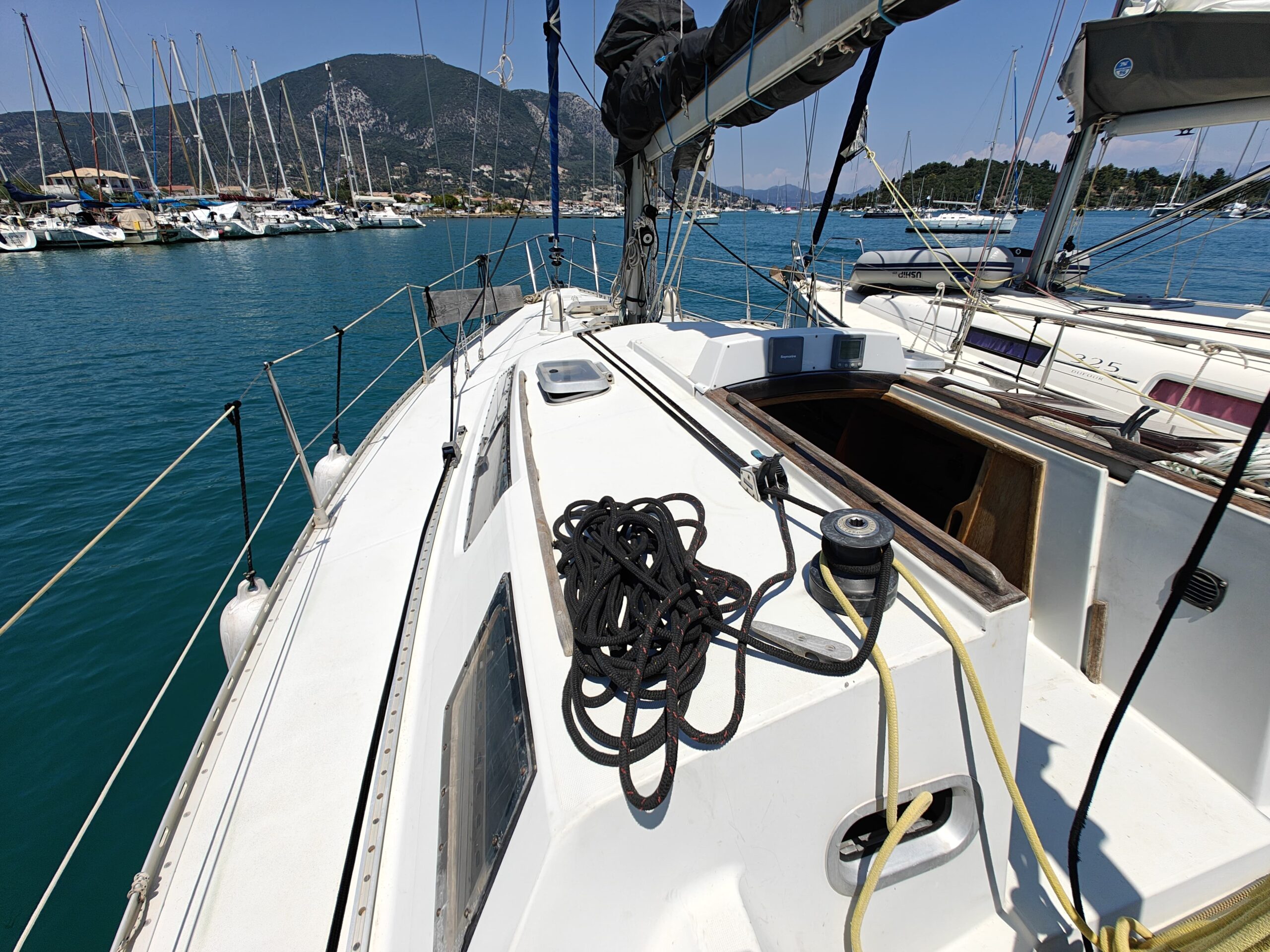 On deck, she is equipped with a 2024 Lewmar automatic windlass, 15kg anchor, and 60 meters of new chain (30m from 2023 and 30m from 2022).