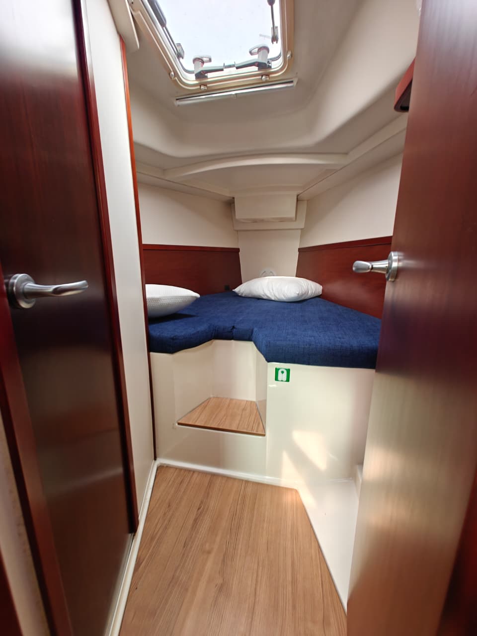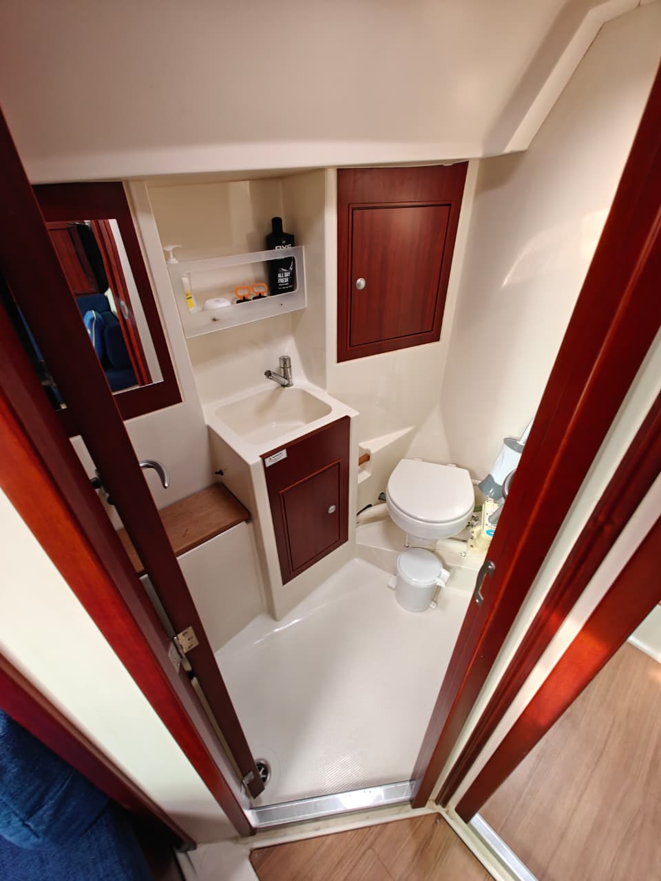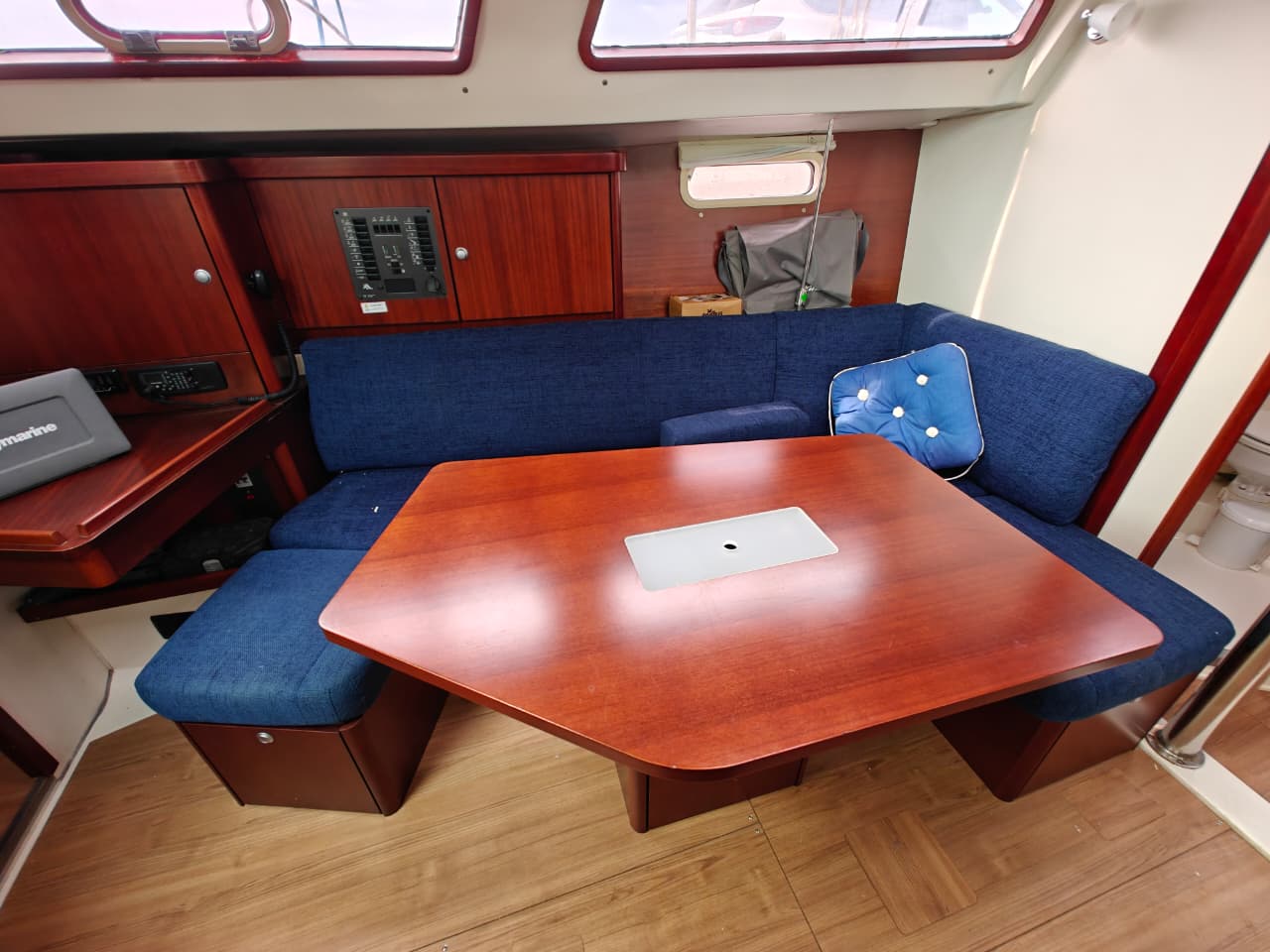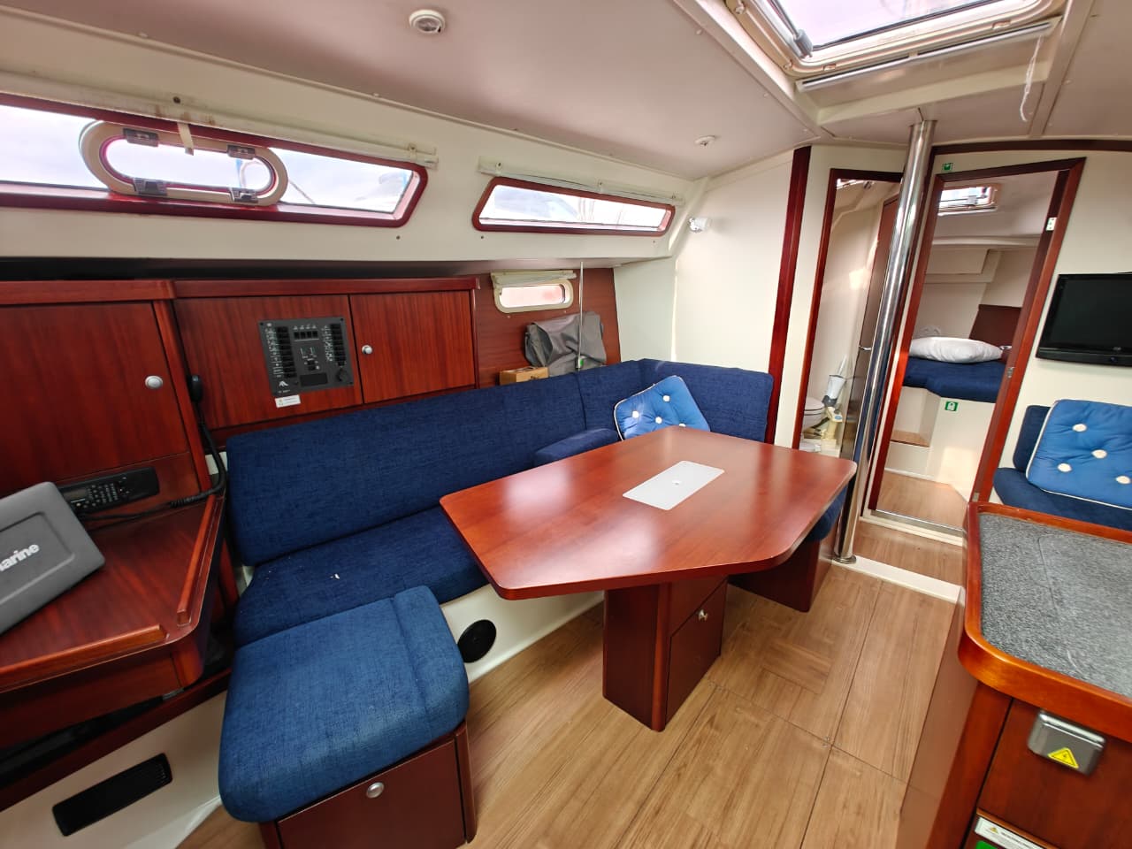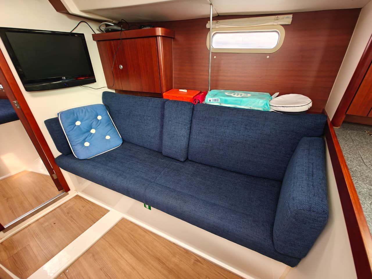 Her sailing equipment is in remarkable shape, with the original mainsail and furling self-tacking jib from 2008 still in perfect condition, ensuring excellent performance under sail.