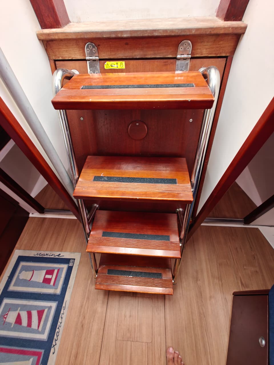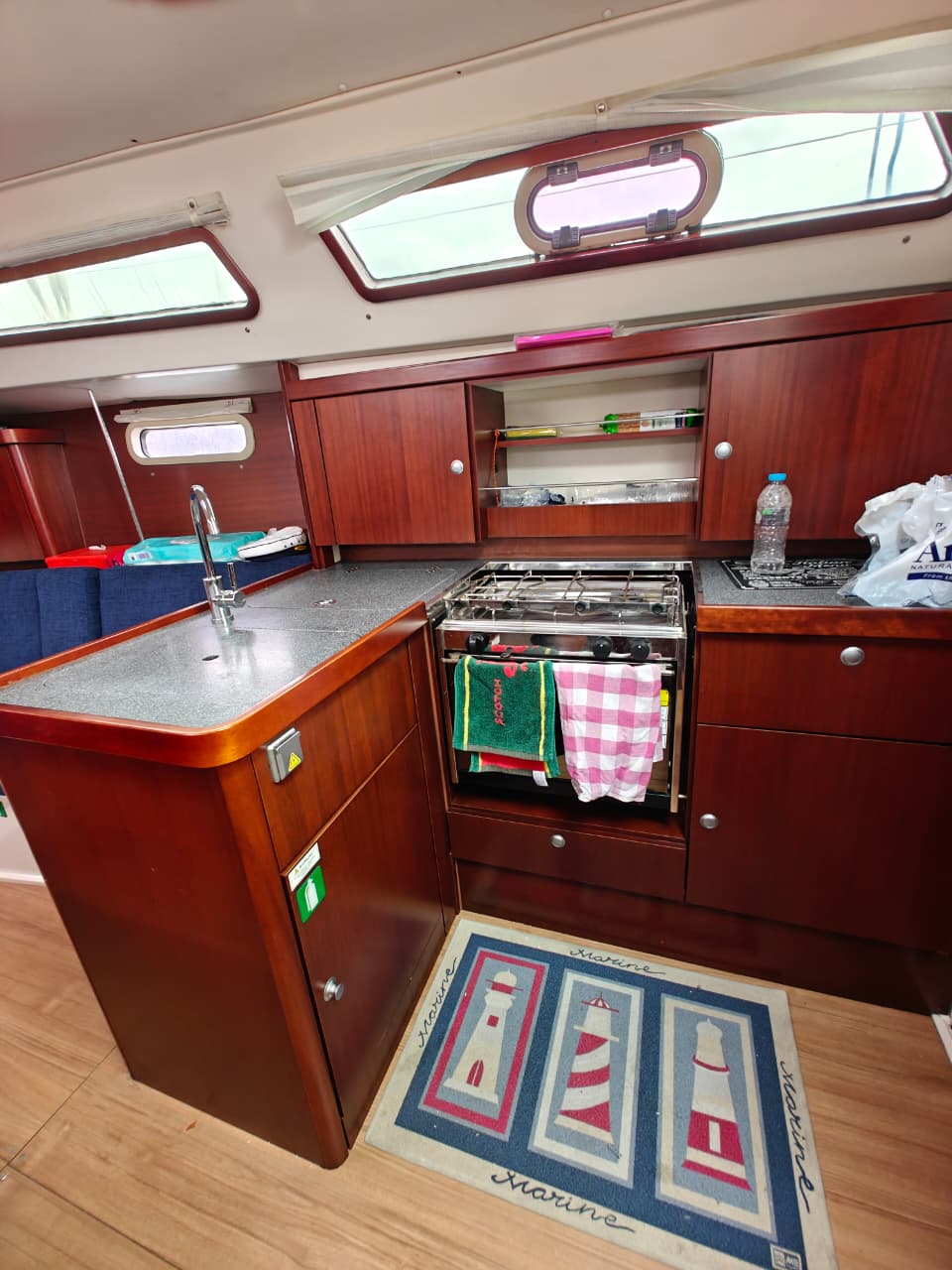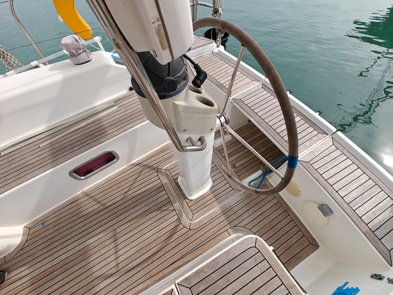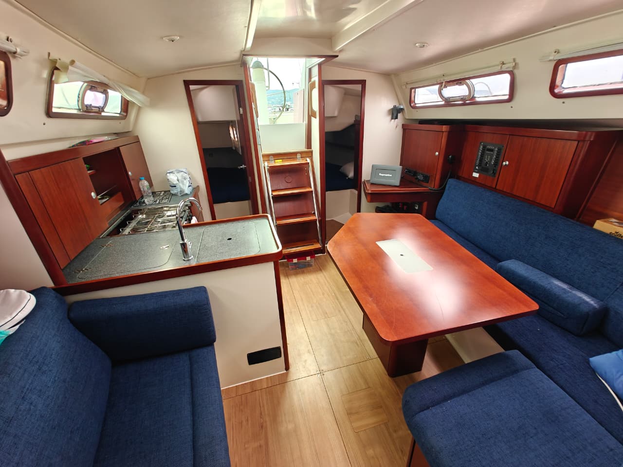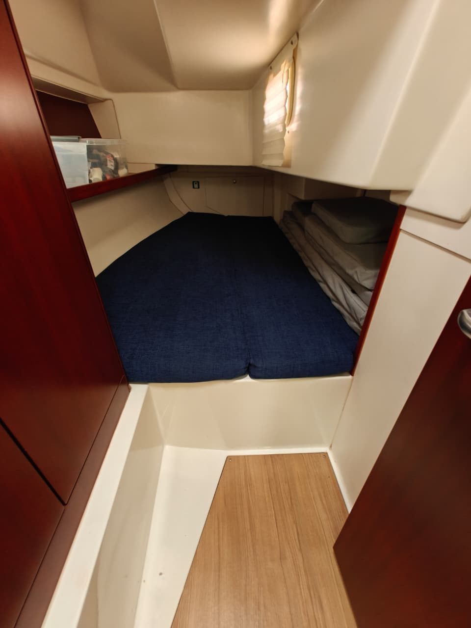 Her sailing equipment is in remarkable shape, with the original mainsail and furling self-tacking jib from 2008 still in perfect condition, ensuring excellent performance under sail.