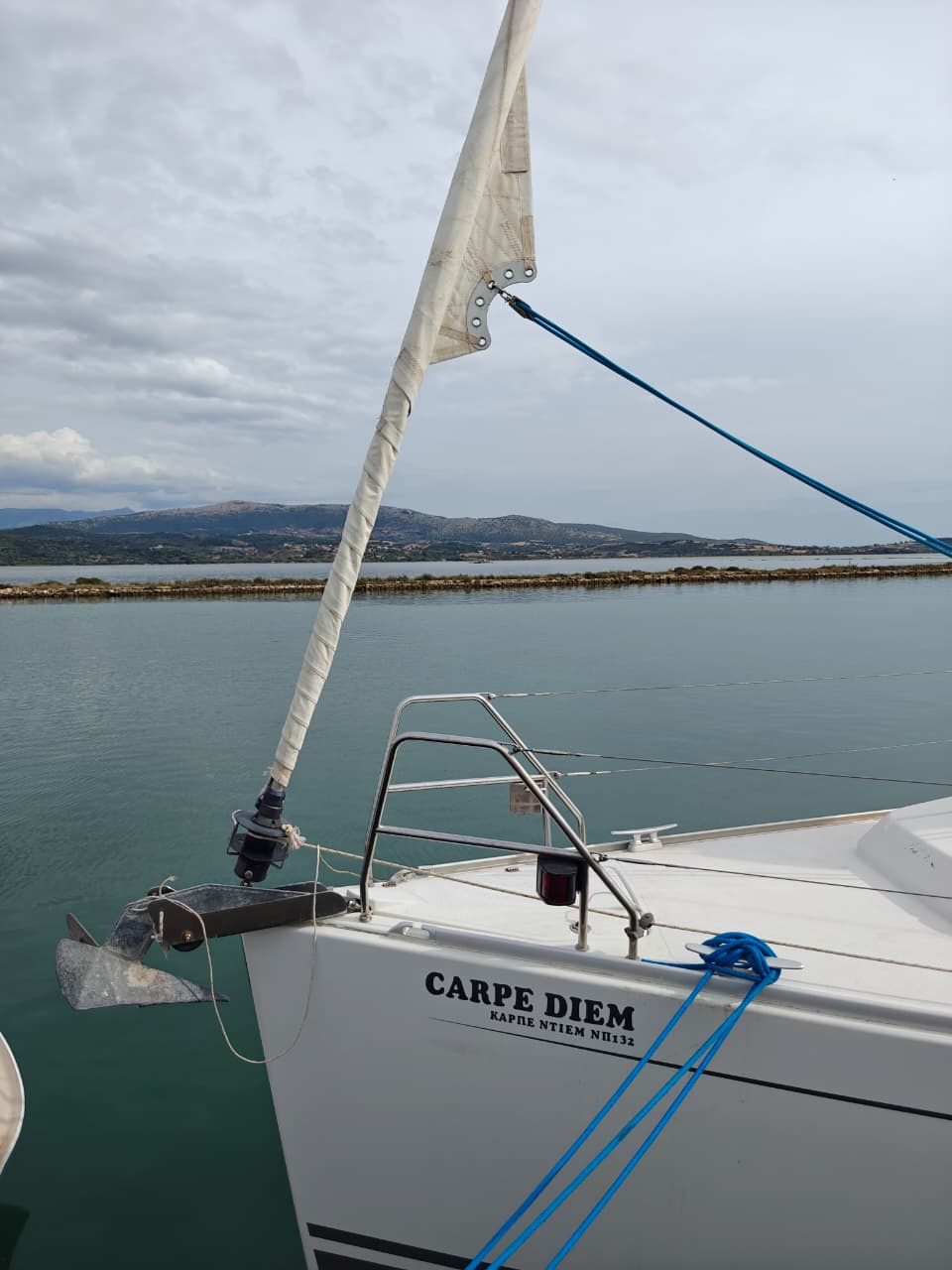 On deck, she is equipped with a bimini for shade, a reliable Delta anchor with 40 m of chain, and an electric windlass for easy handling.