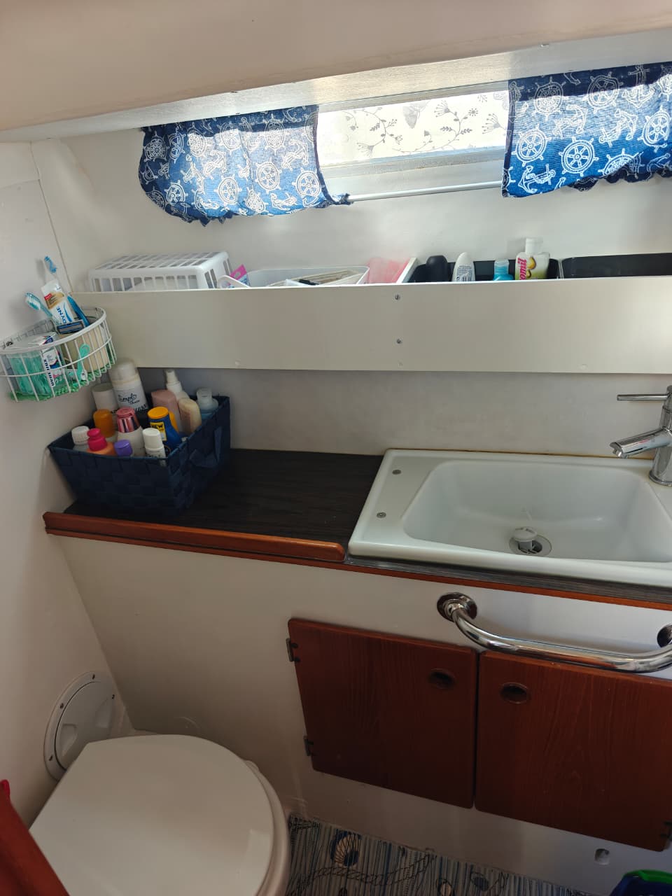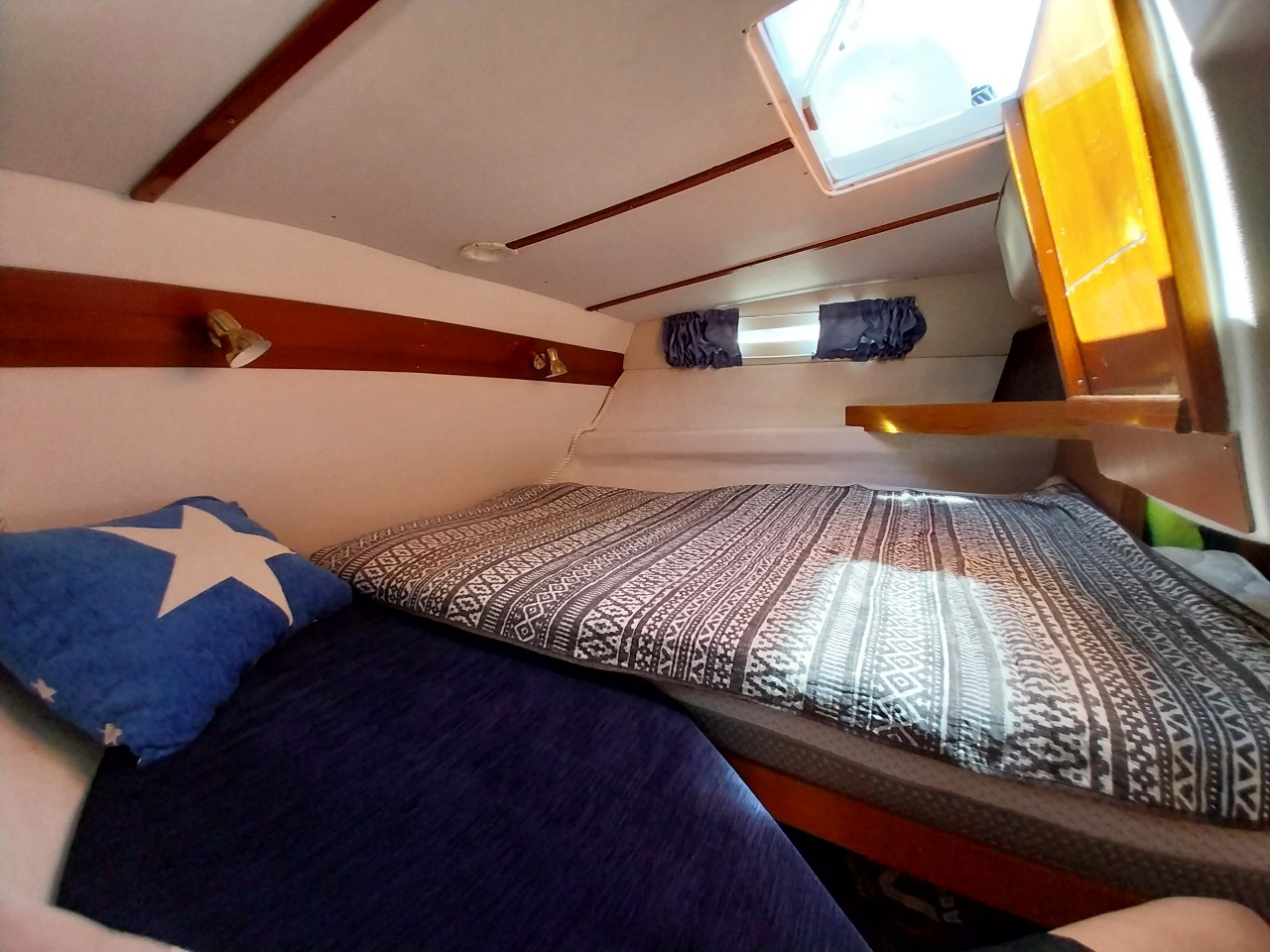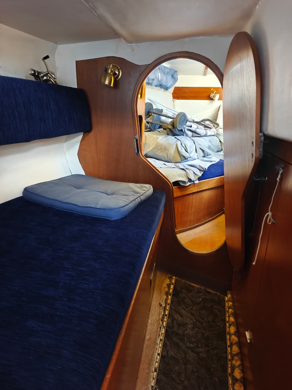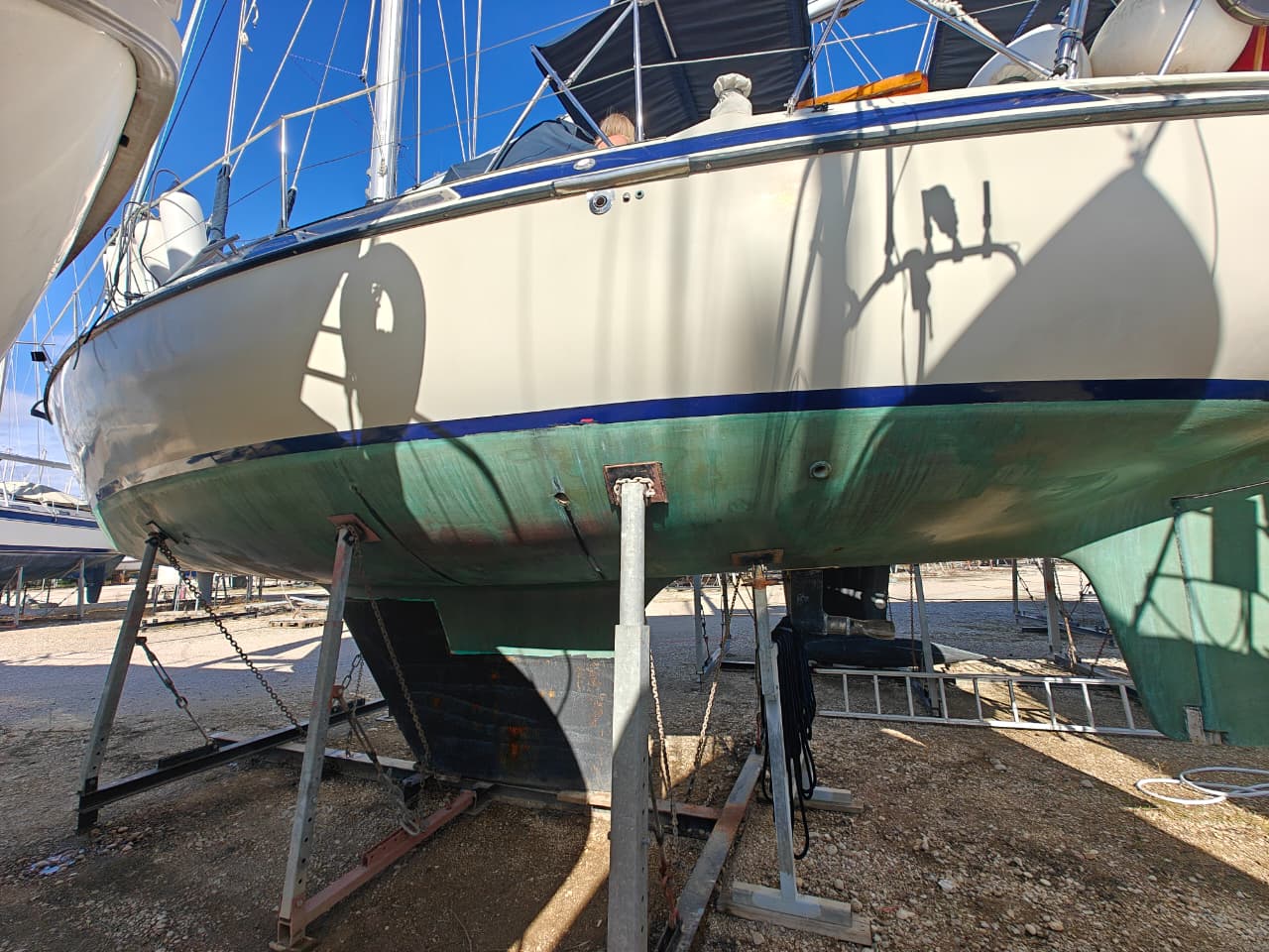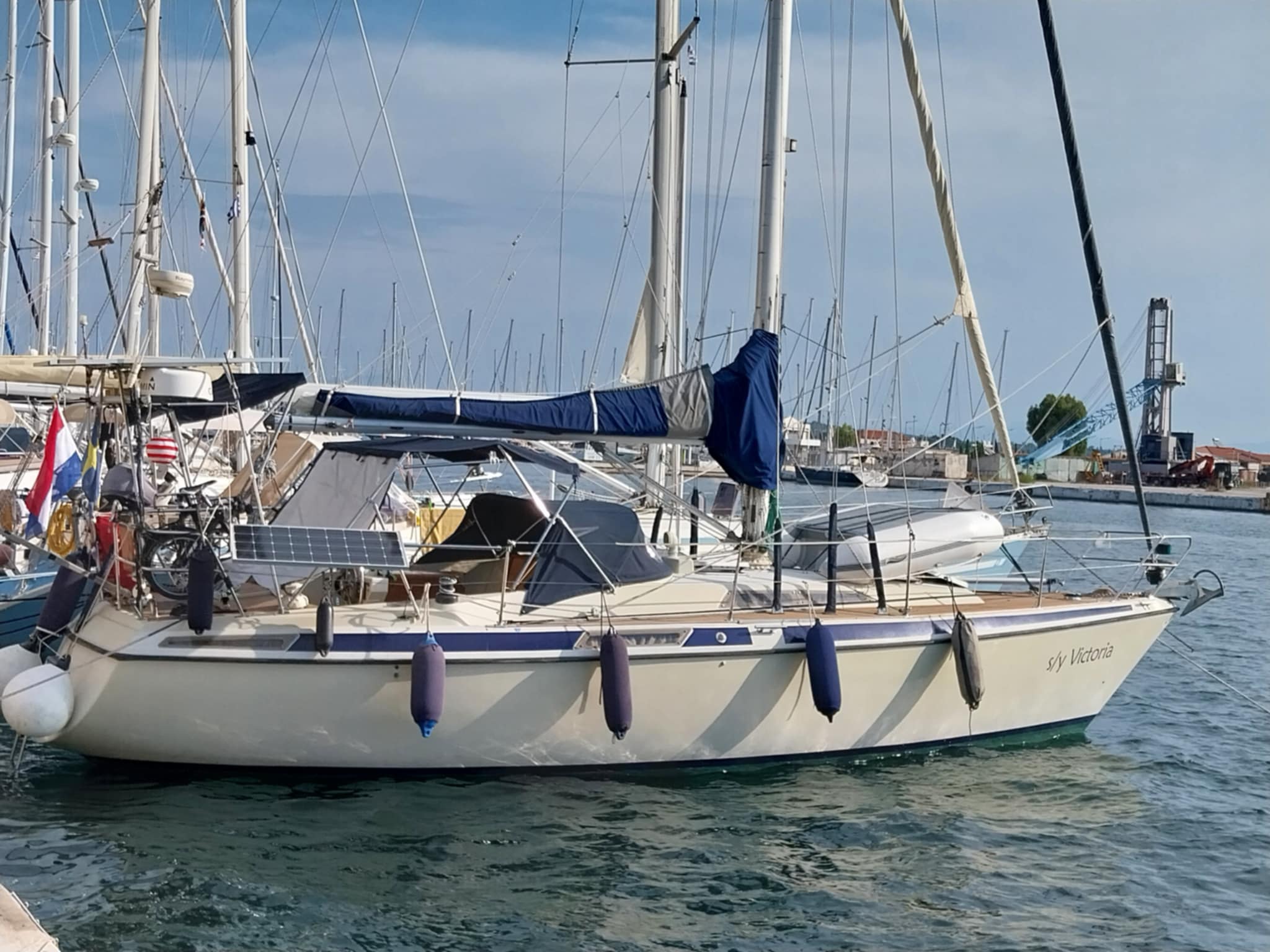 Her solid construction and thoughtful layout make her an ideal vessel for both family cruising and extended voyages. She offers stability and seaworthiness with a masthead rig and keel-stepped mast, carrying a Dacron mainsail and a 140% laminate genoa in a very good condition.