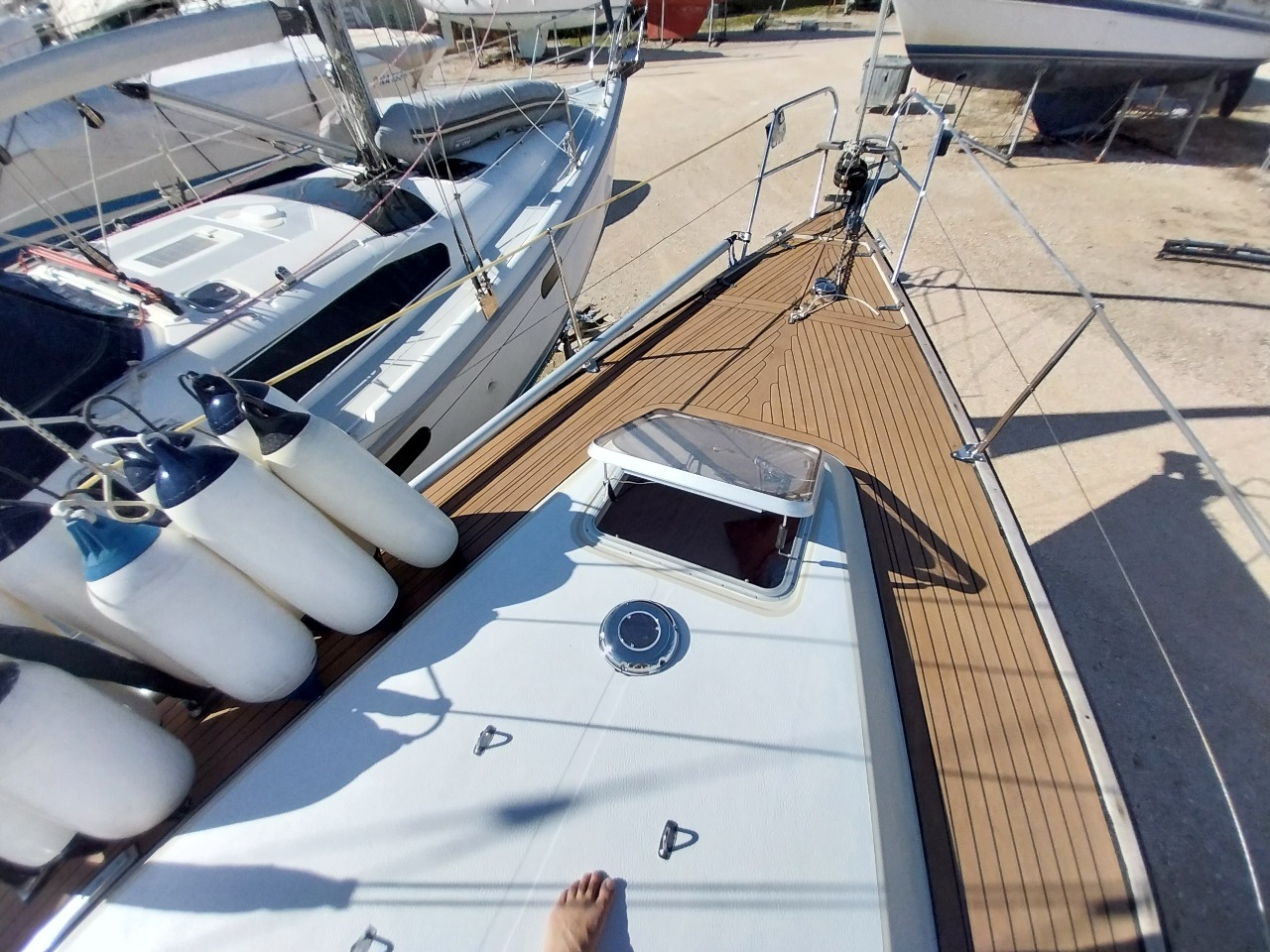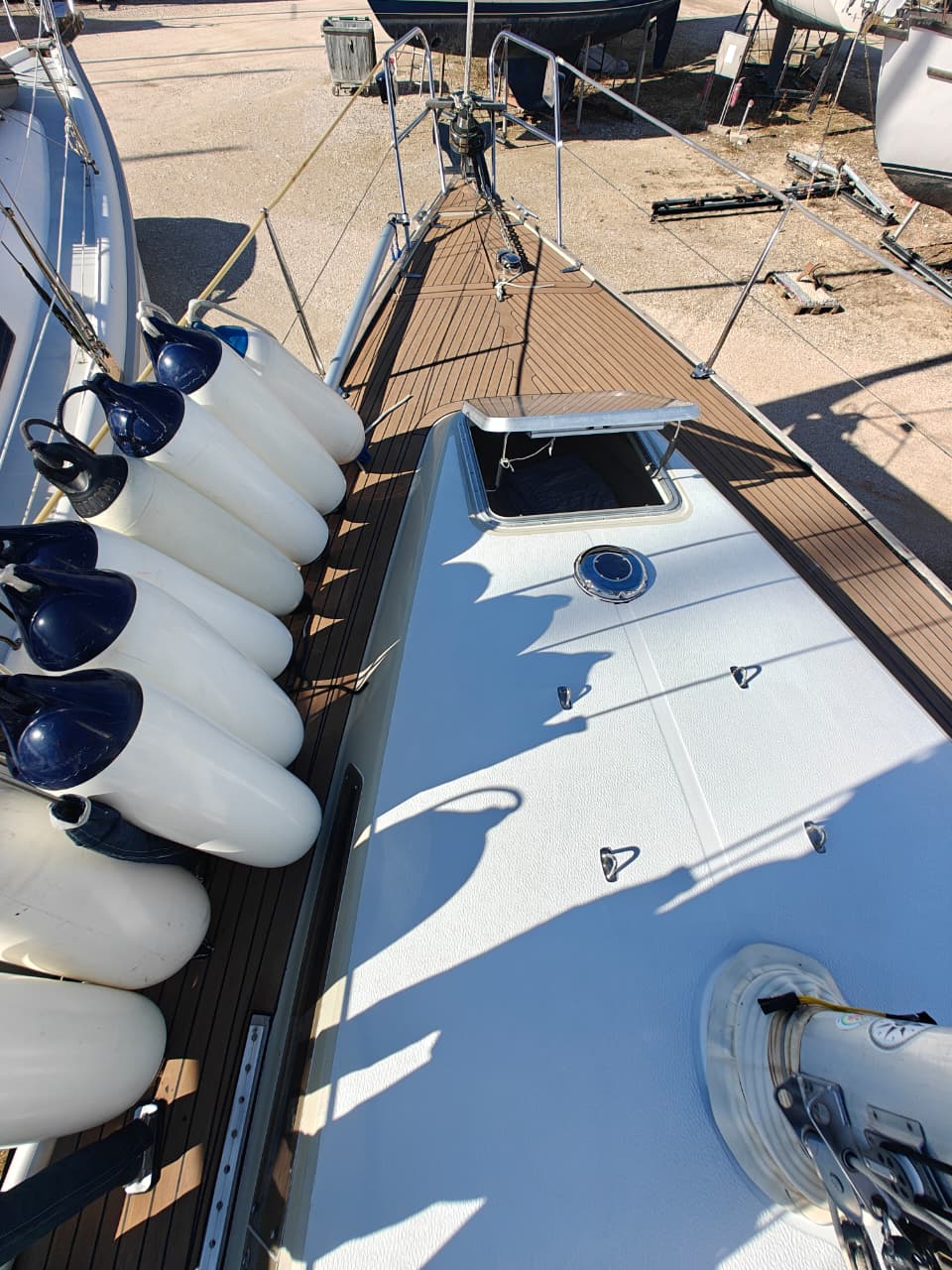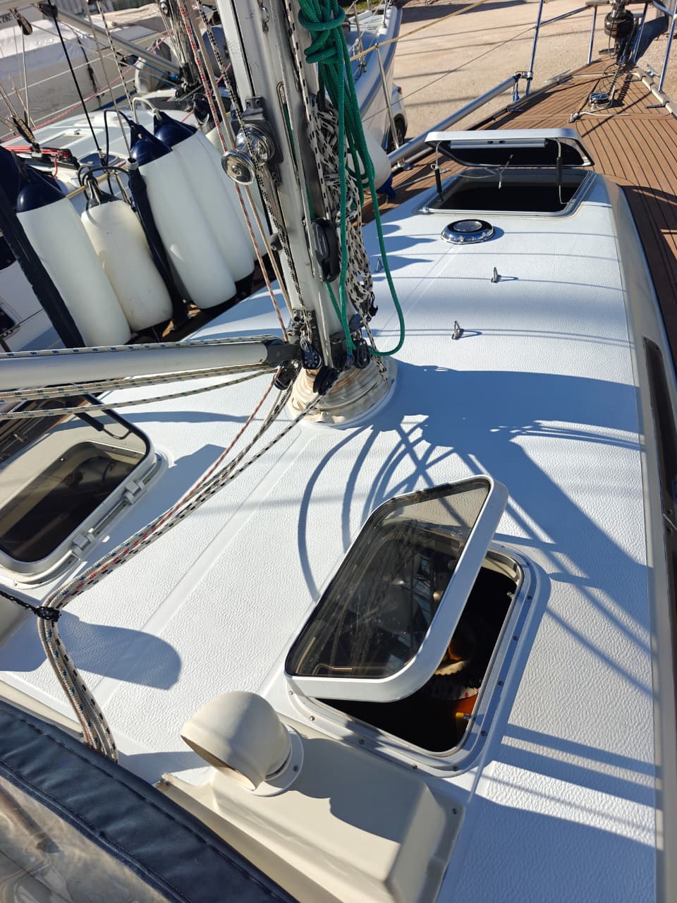 In 2019, her standing rigging was replaced, all hatches and stanchions were resealed, and a Rocna 20 kg anchor with 50 m chain and 50 m rope was added. Her hull was sandblasted, epoxy-treated, and coppercoated, ensuring long-lasting hull protection.