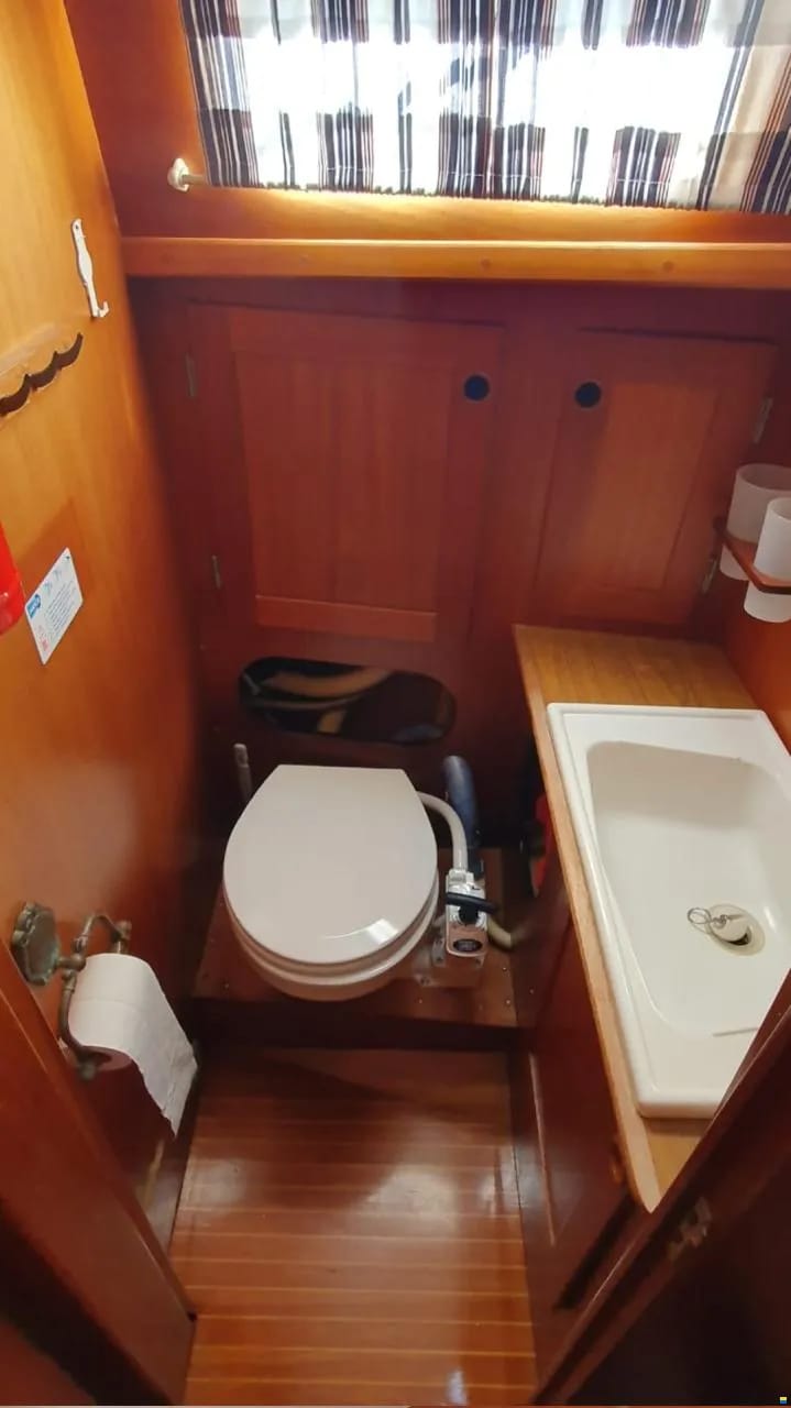 On deck, her teak surfaces are in excellent condition, complemented by self-tailing winches, a furling boom, furling genoa.
