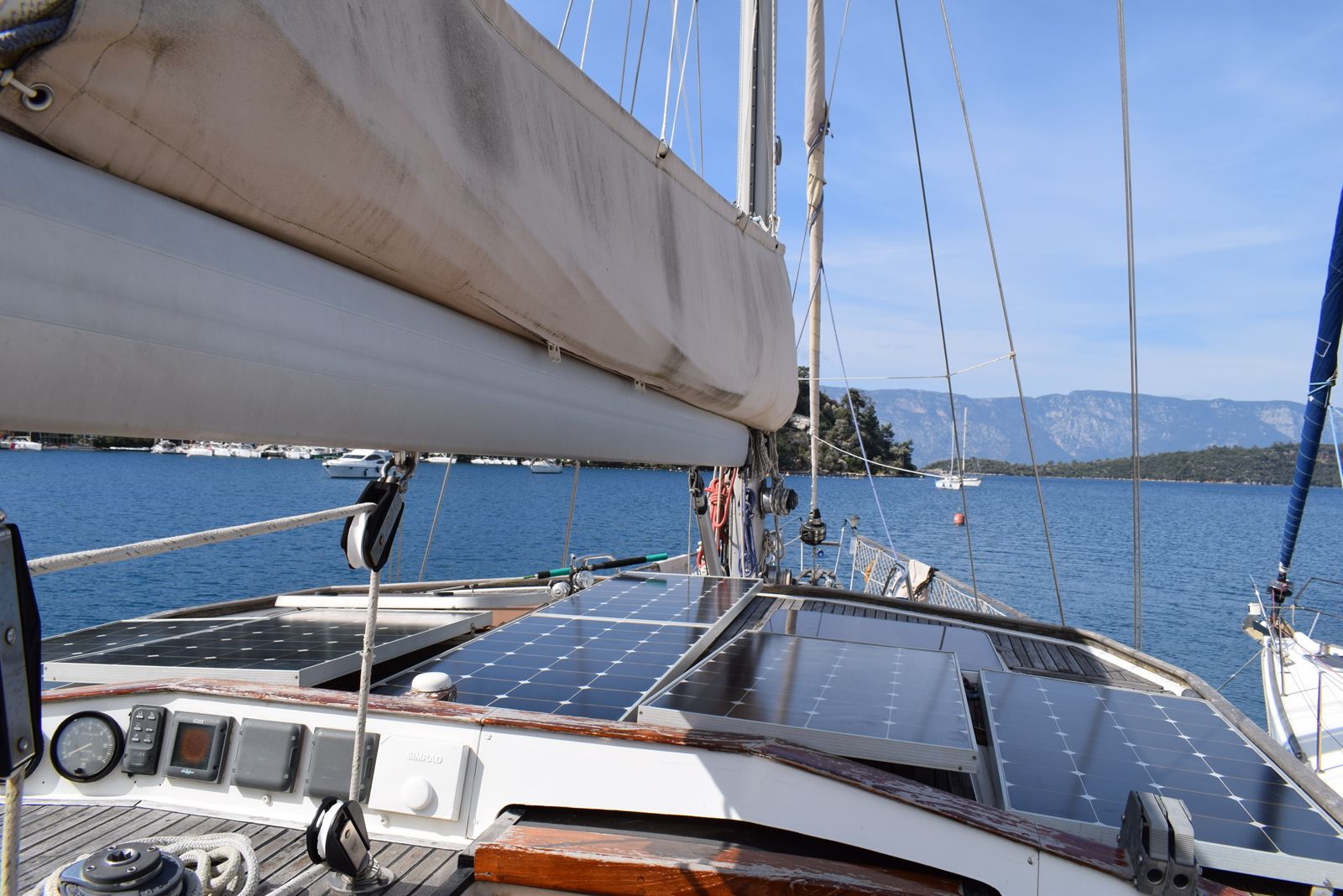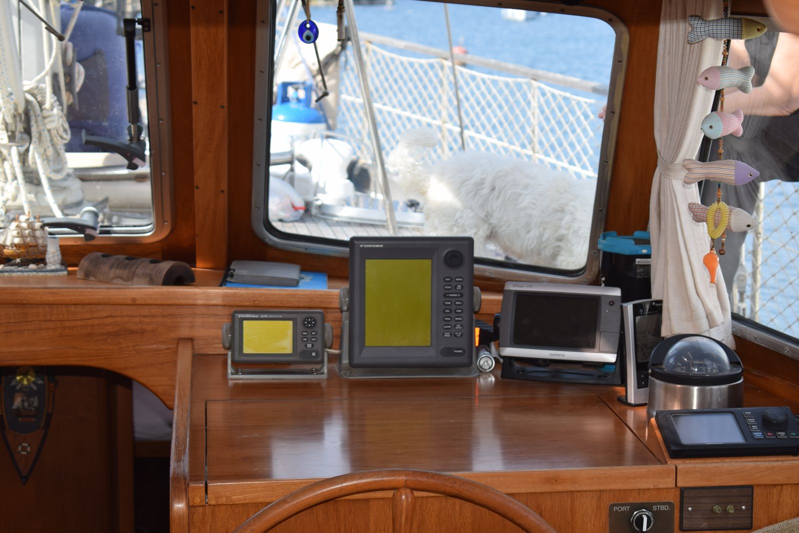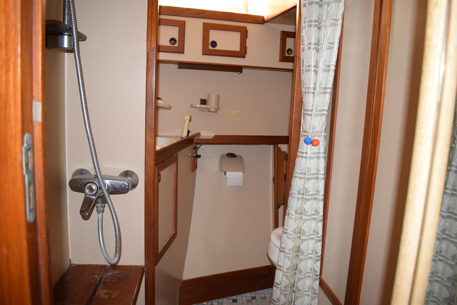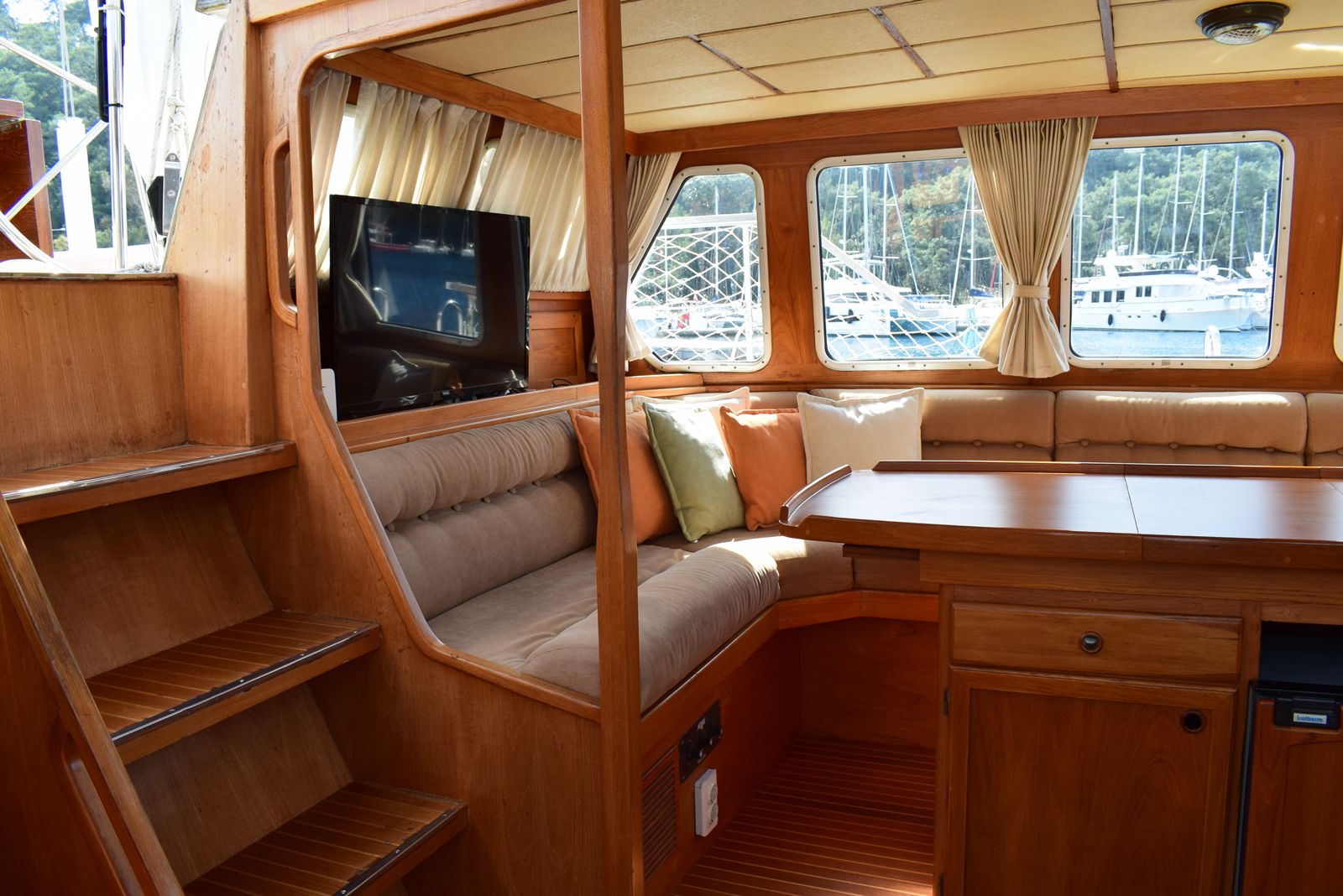 Powered by a dependable 135 HP Ford Lehman diesel engine and equipped with Wesmar bow thruster, maneuvering is straightforward even in tight harbors. With dual 1,000-liter fuel and water tanks, the boat boasts impressive autonomy, supported further by a Westerbeke 11 kW generator, extensive solar panel array, and robust battery system.