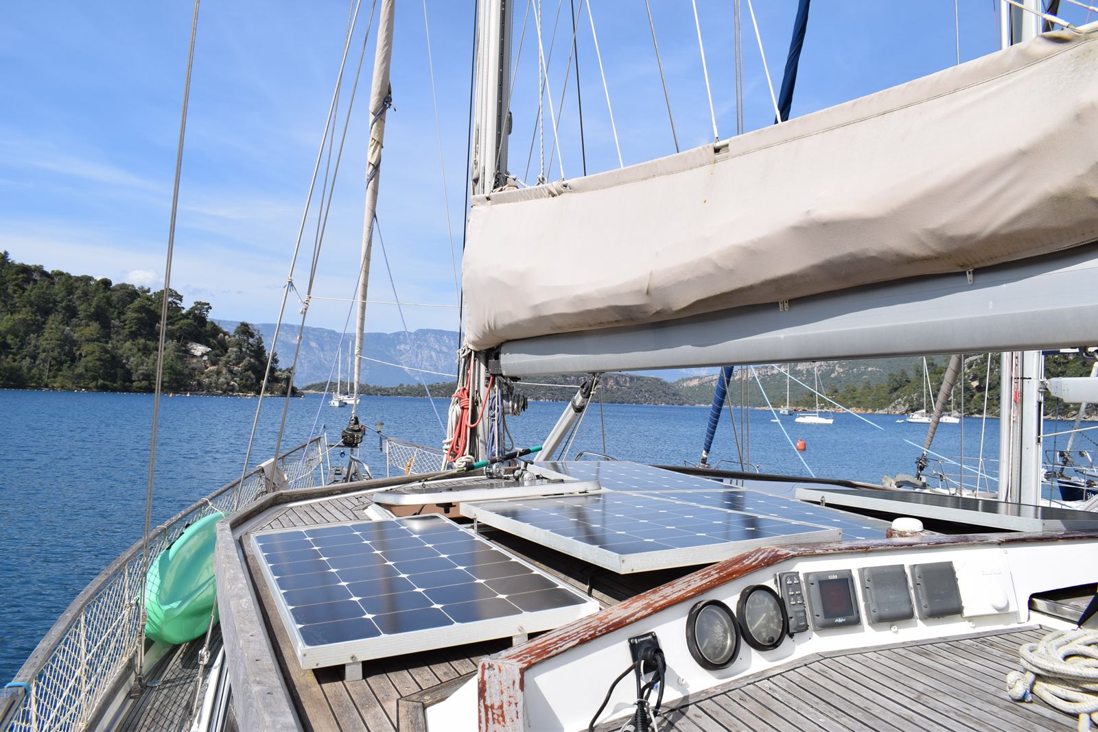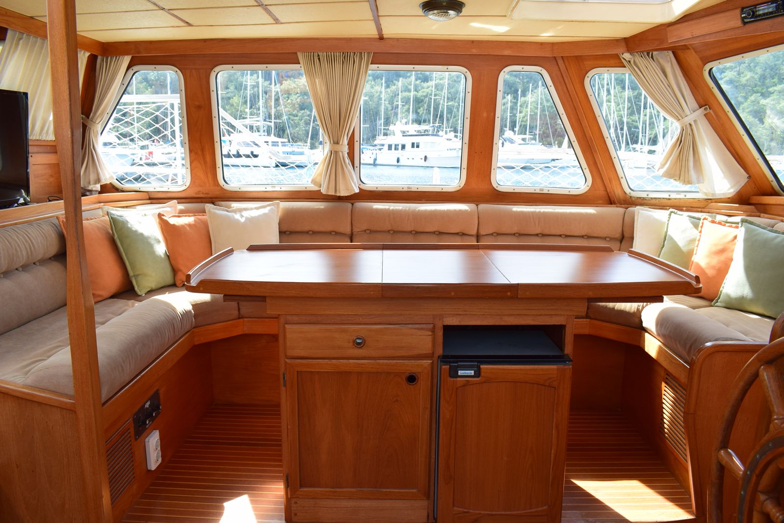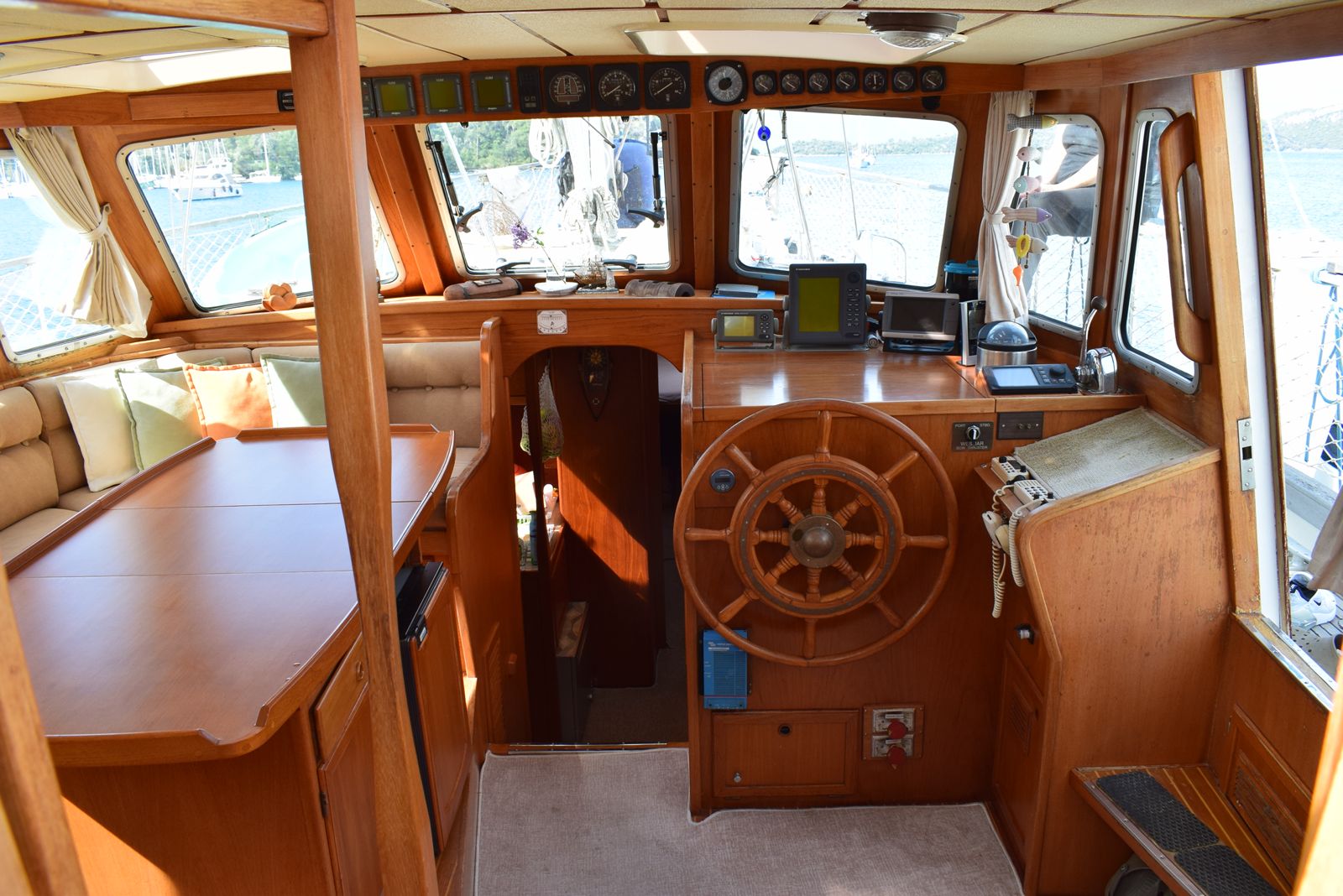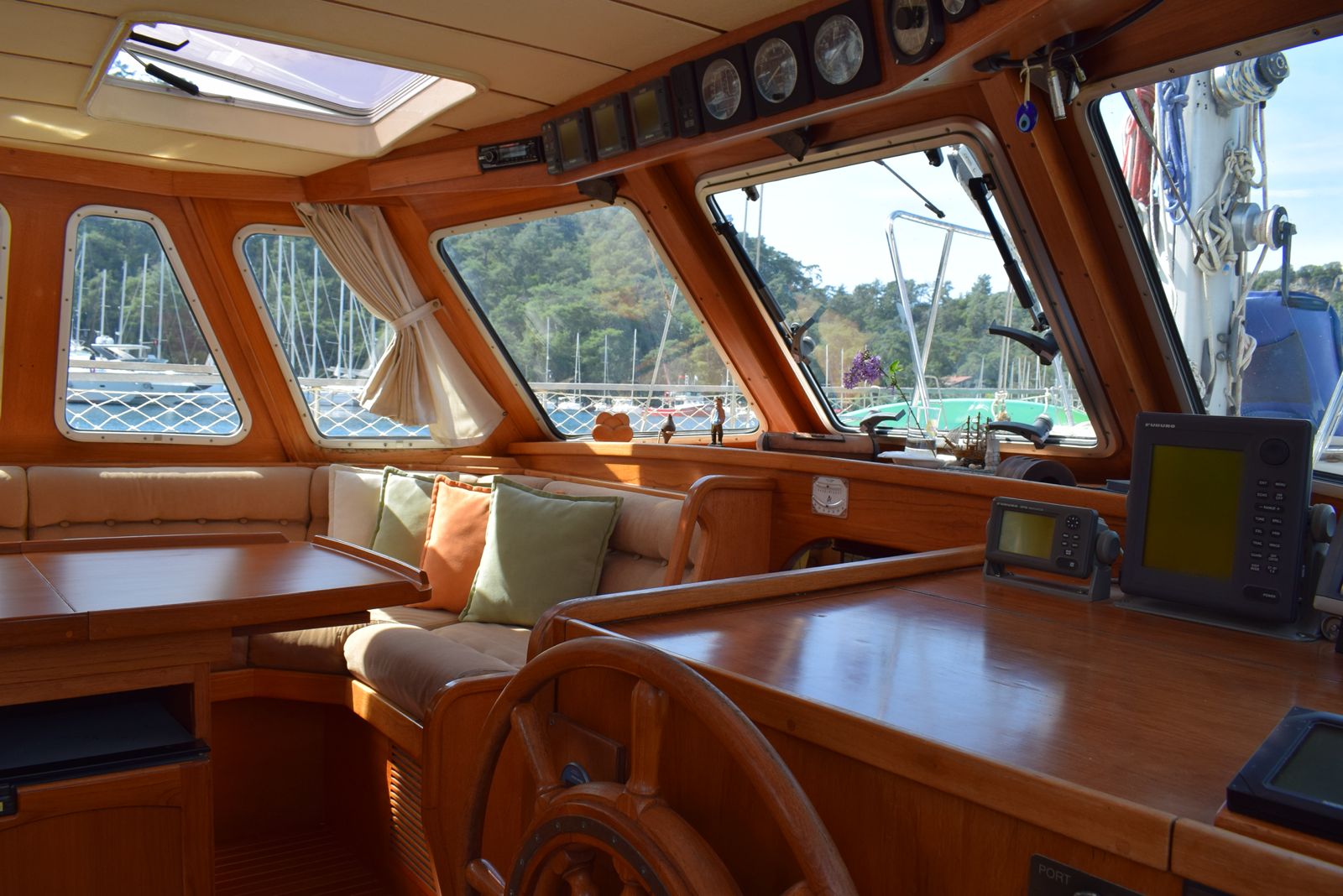 Powered by a dependable 135 HP Ford Lehman diesel engine and equipped with Wesmar bow thruster, maneuvering is straightforward even in tight harbors. With dual 1,000-liter fuel and water tanks, the boat boasts impressive autonomy, supported further by a Westerbeke 11 kW generator, extensive solar panel array, and robust battery system.