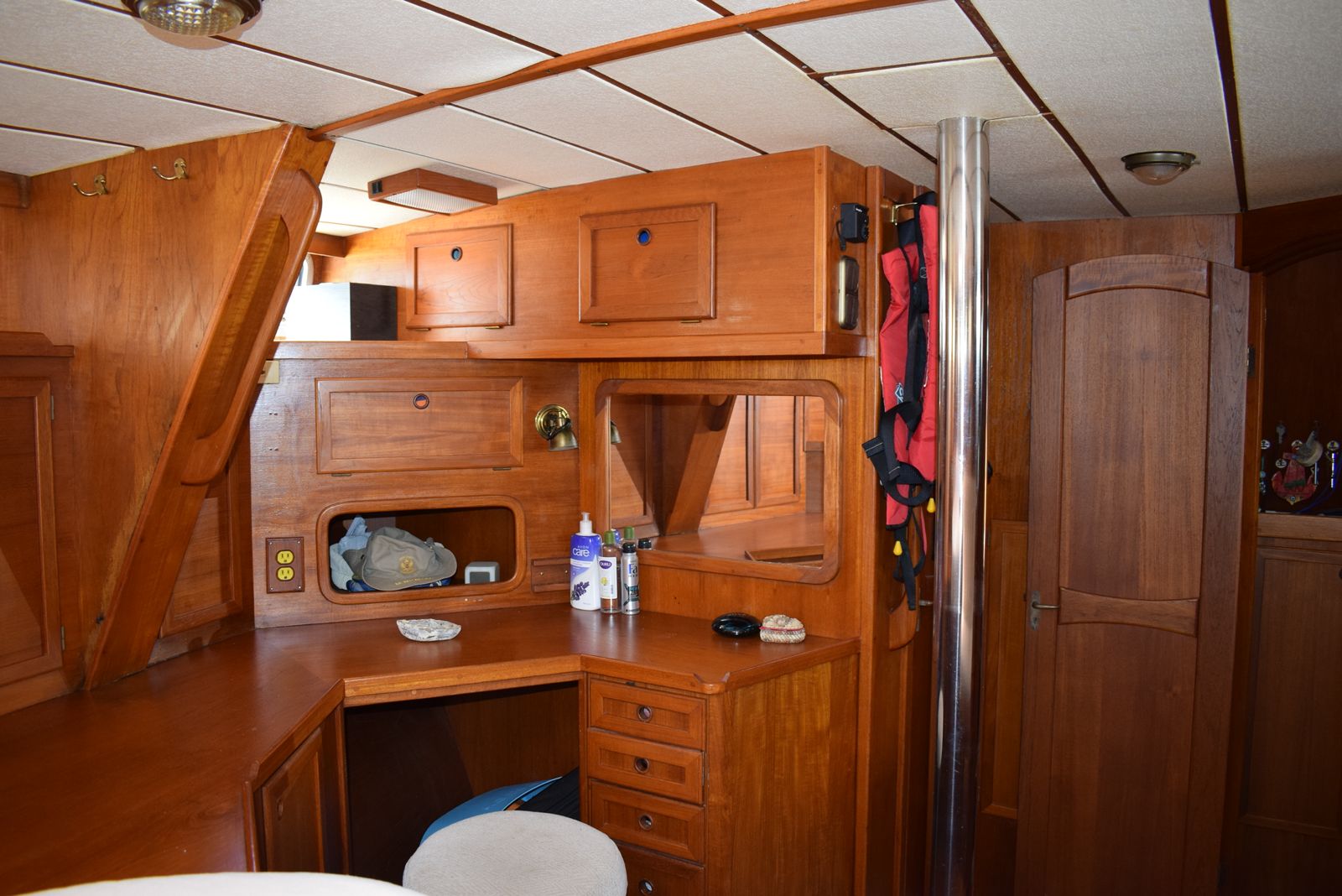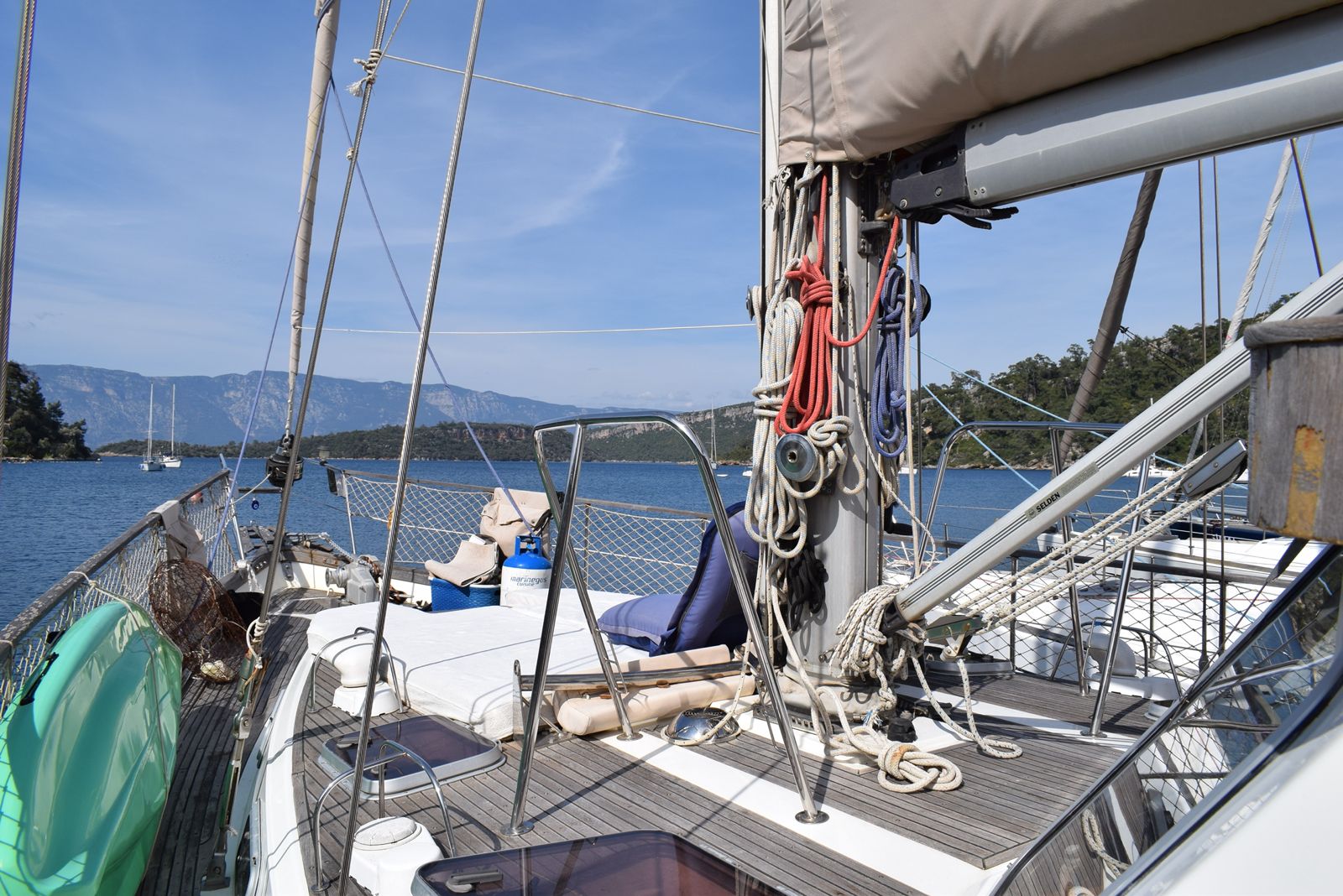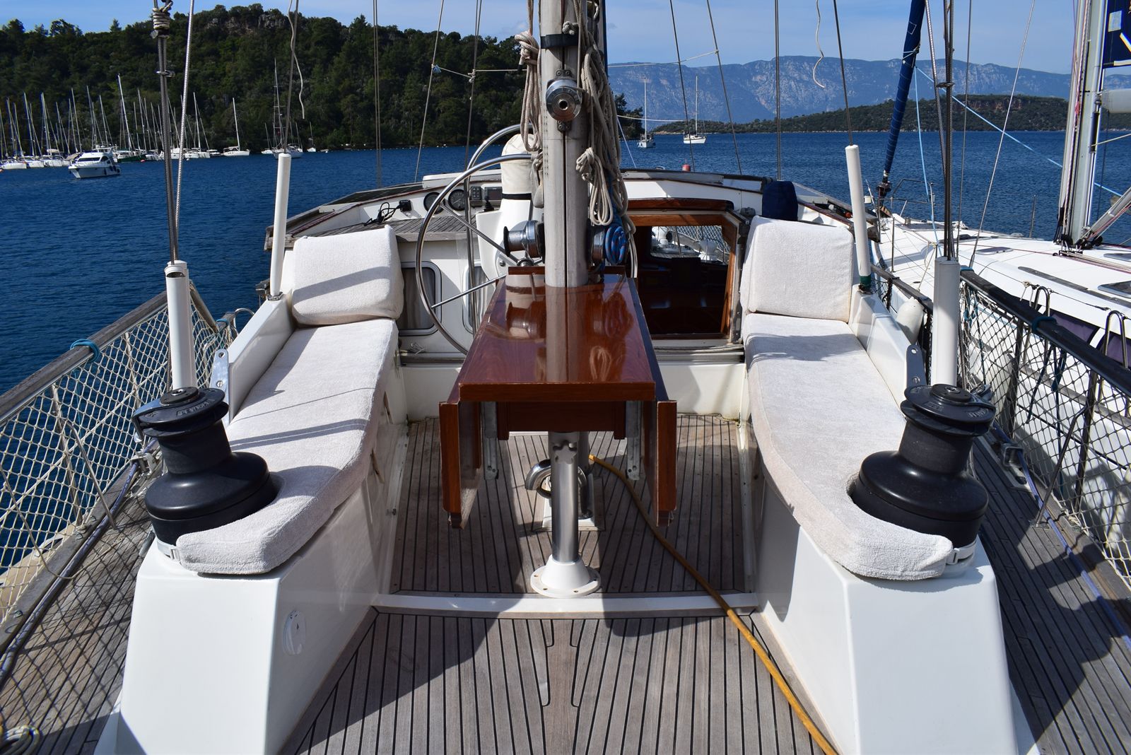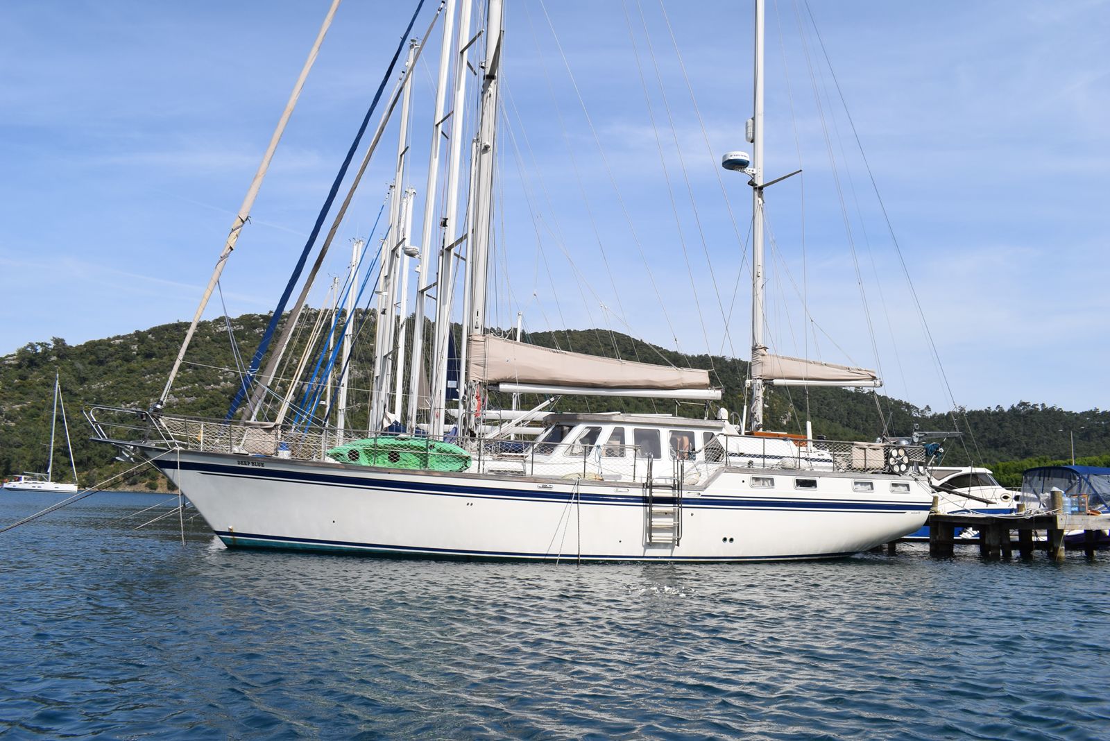 The deck is rigged with a reliable ketch sail plan, including a furling mainsail and storm sail for ocean passages. With recent equipment upgrades and comprehensive outfitting, this yacht is ready to carry her next owners on memorable voyages across the globe.