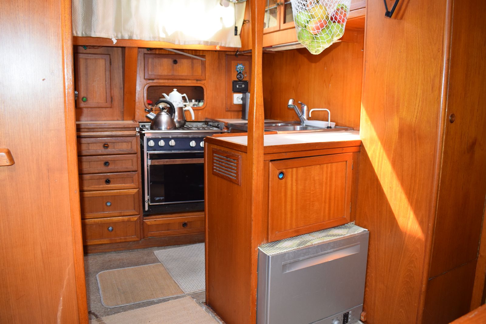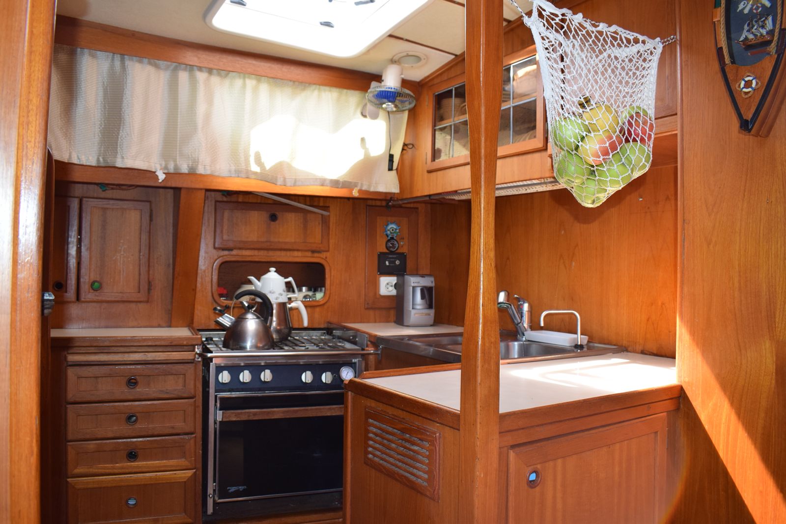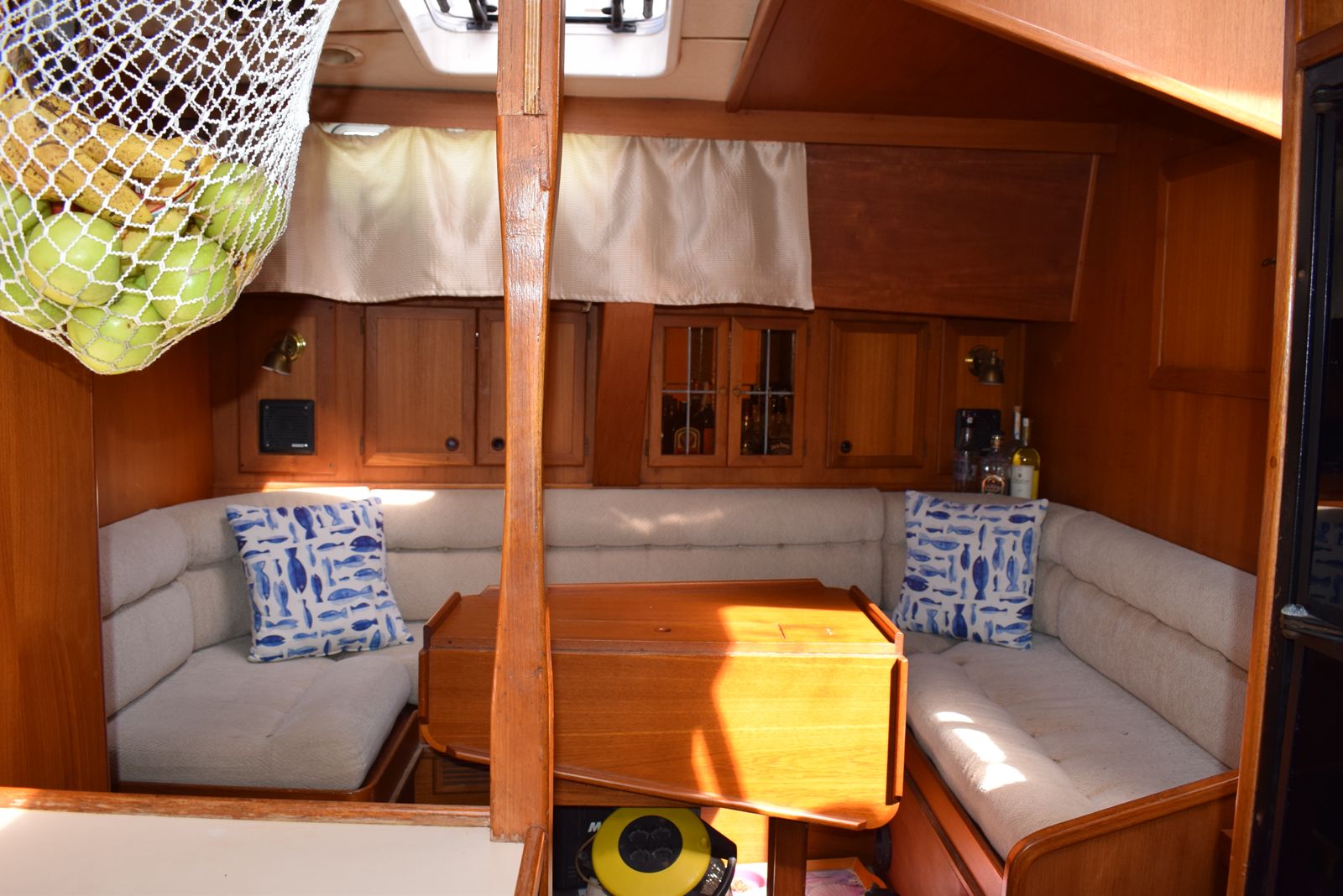 Below deck, the Nauticat 52 delivers remarkable comfort and functionality. The layout includes three well-appointed cabins- an en-suite master, a guest double, and a bunk cabin- accommodating six people.