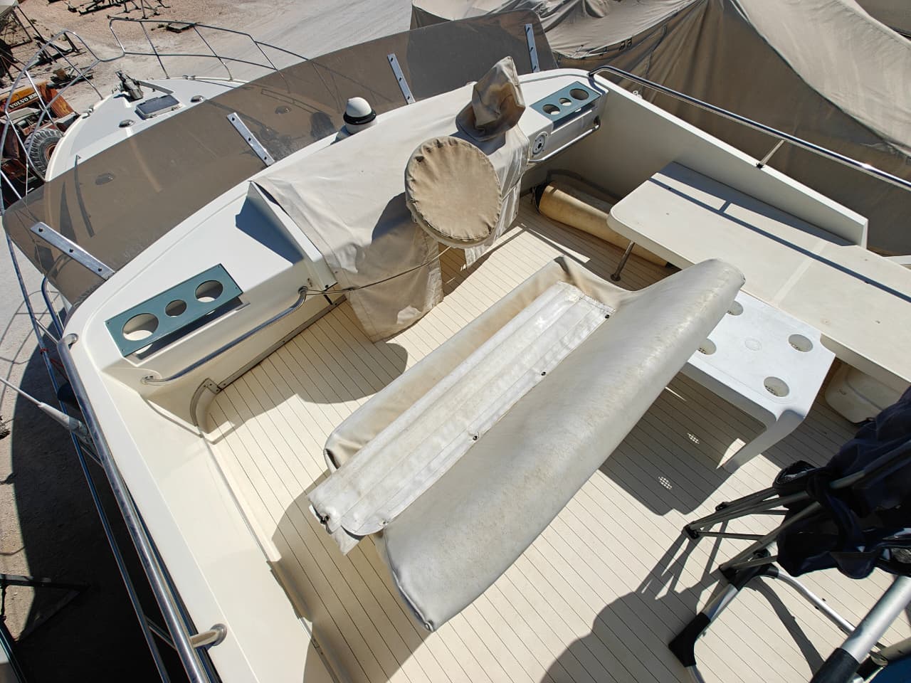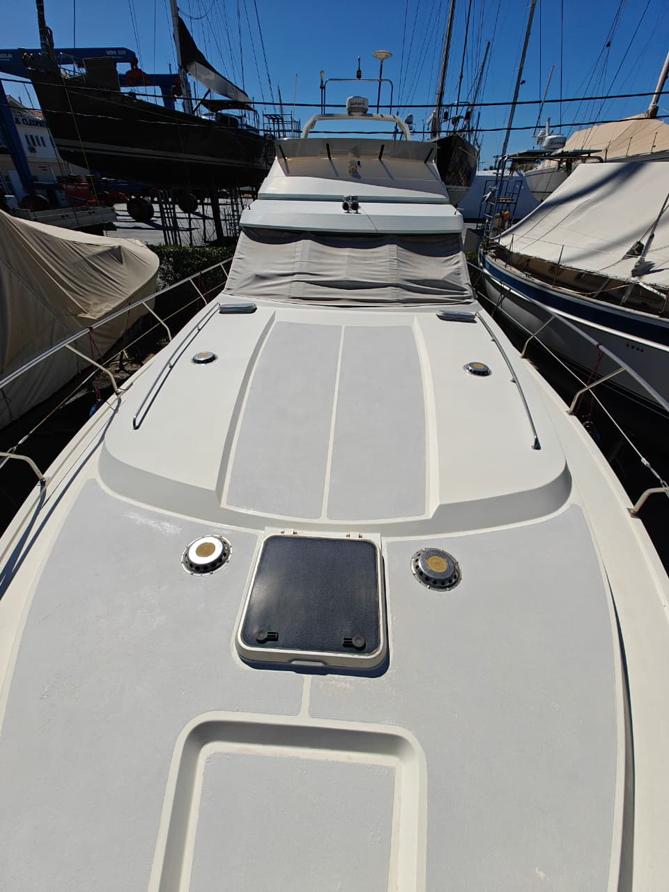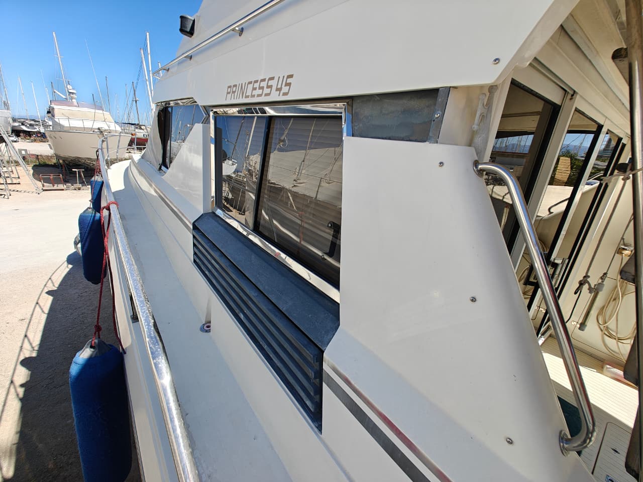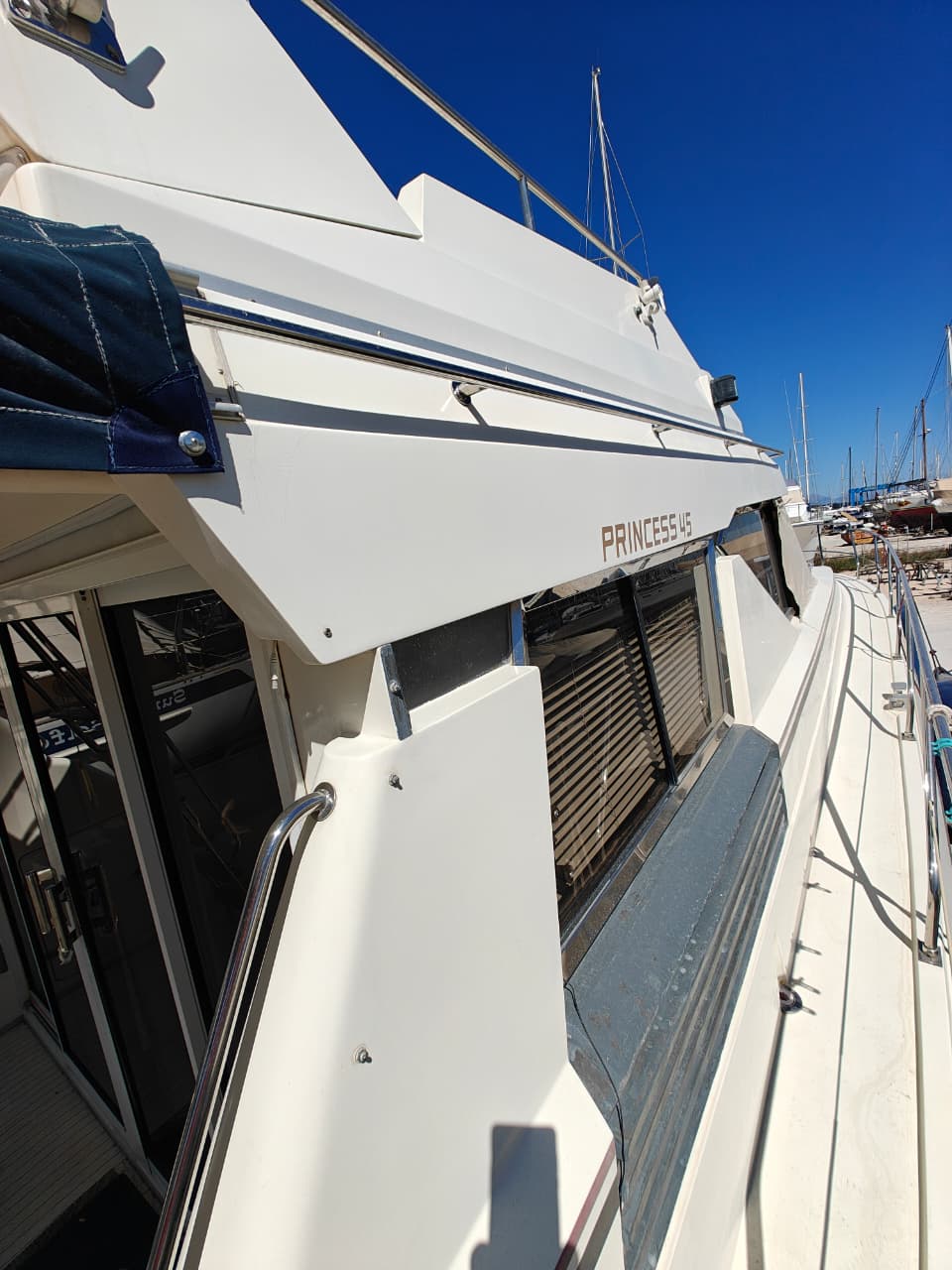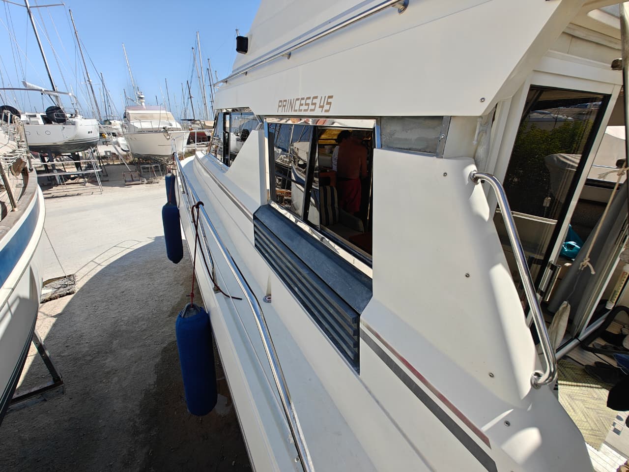 The Princess 45 Flybridge is a beautifully maintained motor yacht, powered by twin Caterpillar 375HP engines that deliver both reliability and performance, with a cruising speed of 10 knots and a maximum speed of 26 knots.