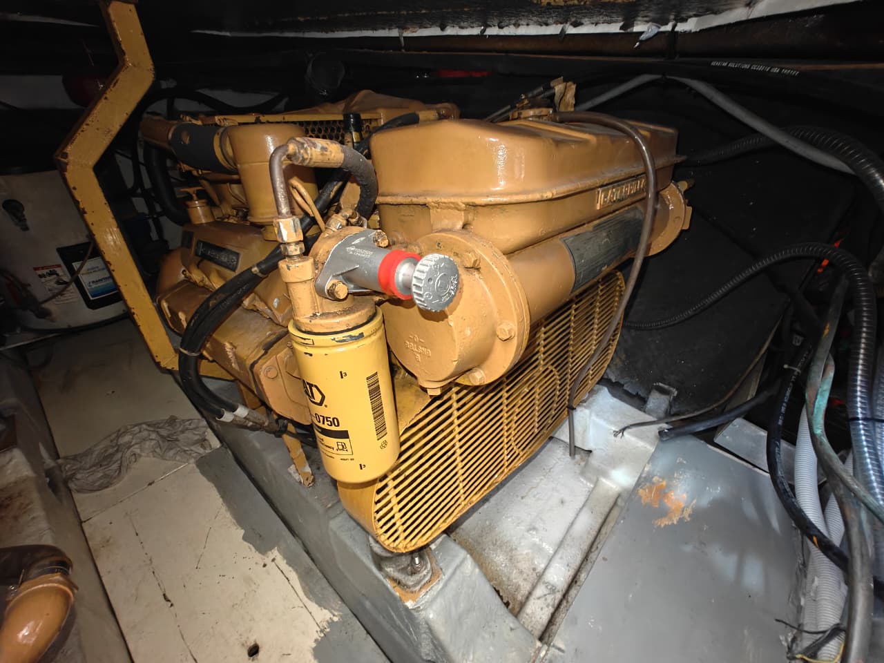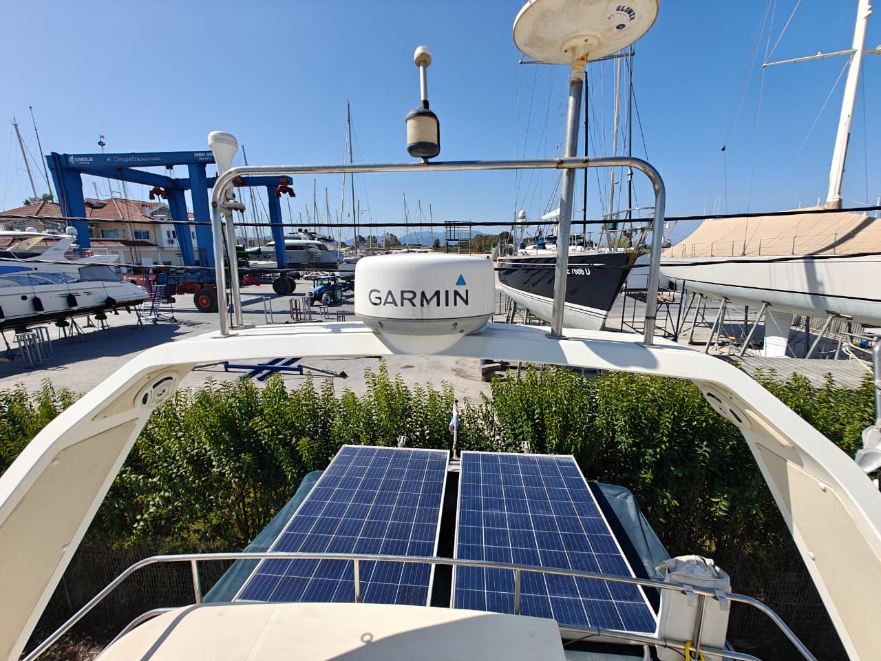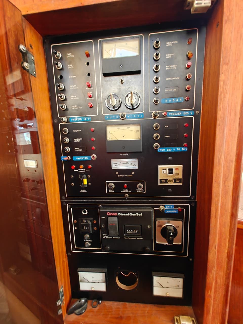 The yacht is also equipped with a 10.6 kW Onan generator, solar panels, shore power, and recently renewed batteries, ensuring reliable energy supply onboard.
