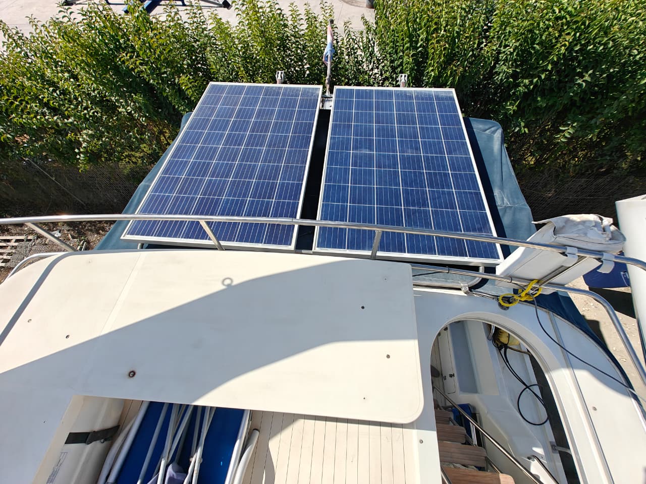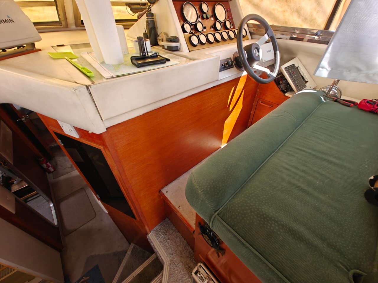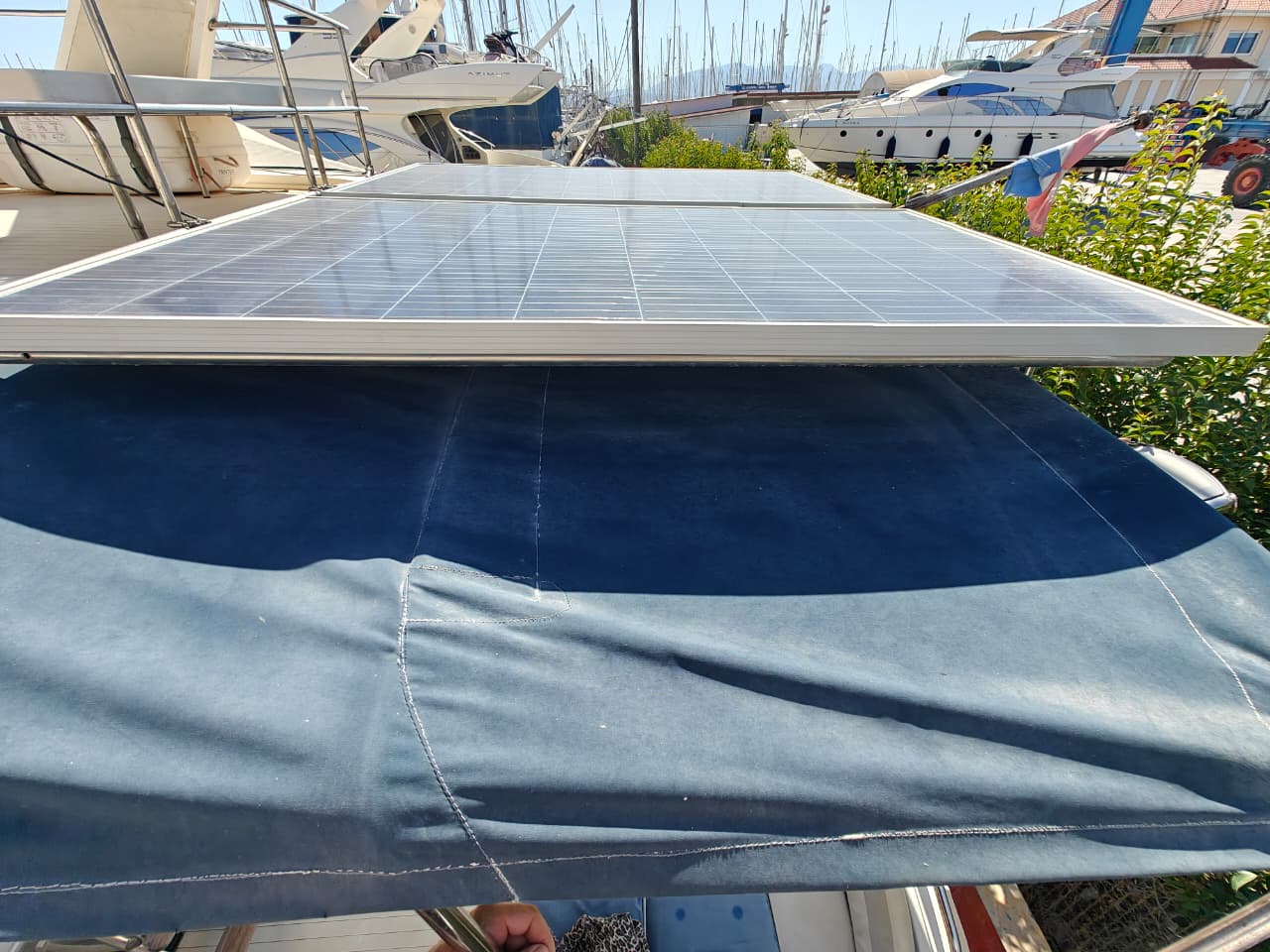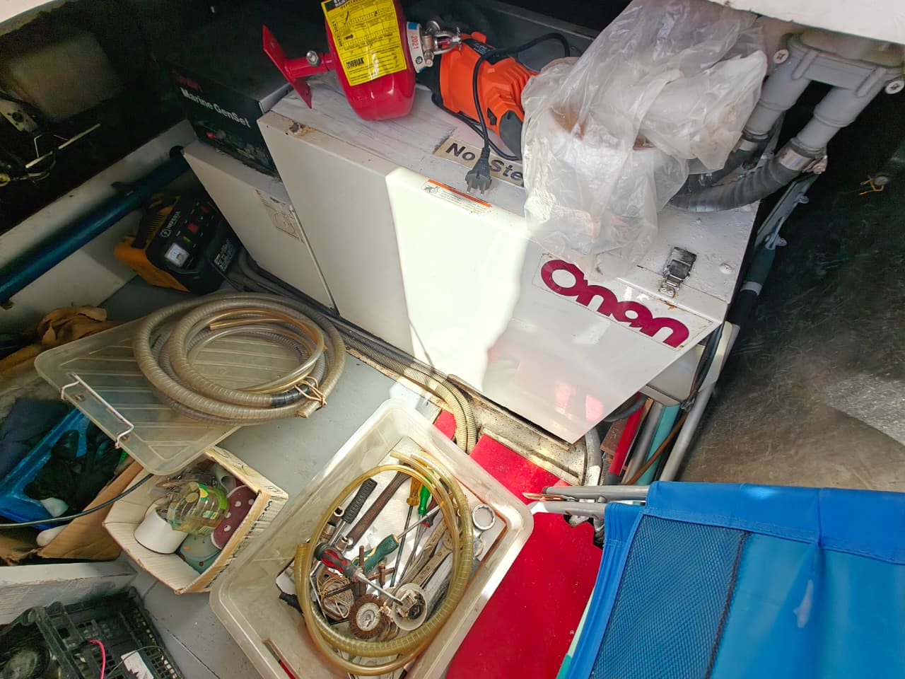 The yacht is also equipped with a 10.6 kW Onan generator, solar panels, shore power, and recently renewed batteries, ensuring reliable energy supply onboard.