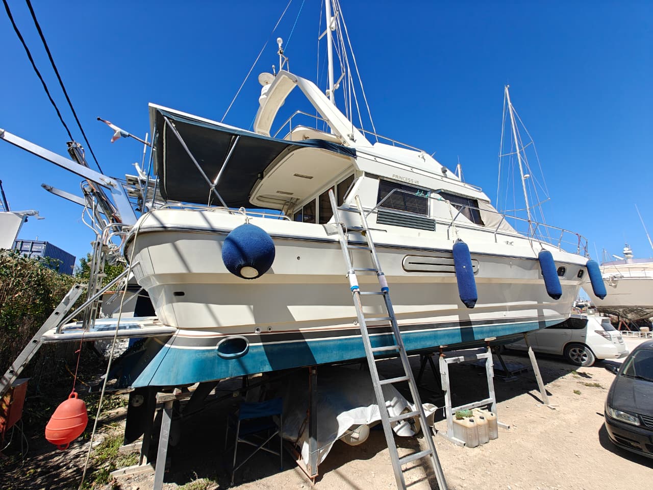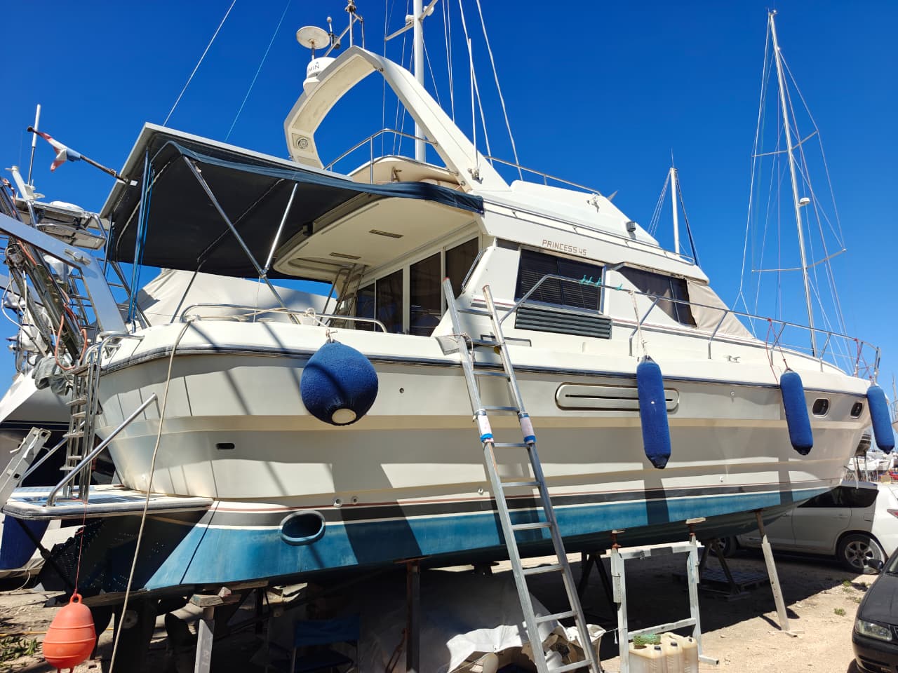 Built in 1988 by Princess Yachts, this 13.95m vessel features a sleek GRP hull in classic white and a flybridge helm for commanding views. The interior is finished in light cherry wood, offering a warm and elegant ambiance throughout.