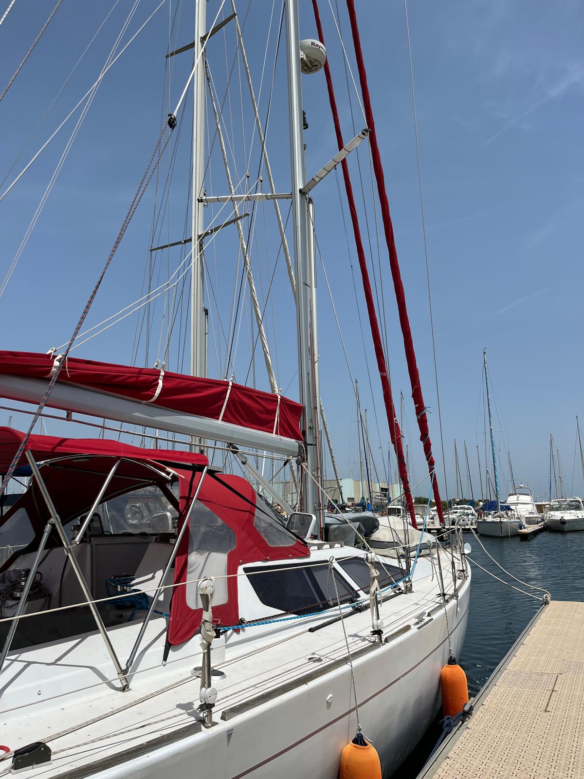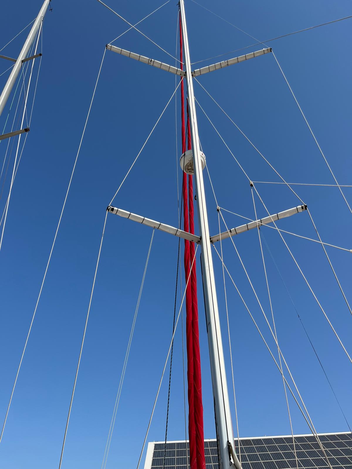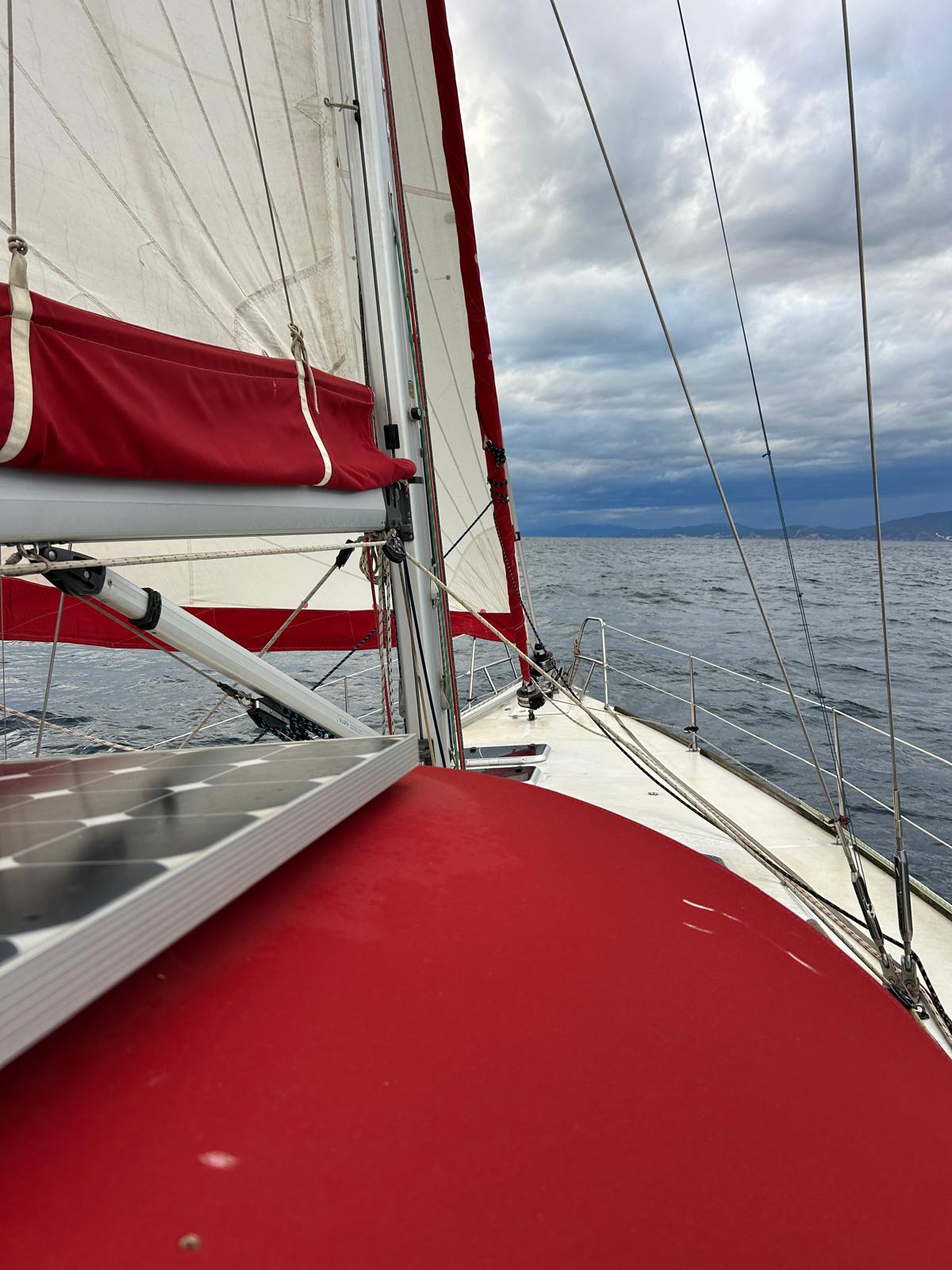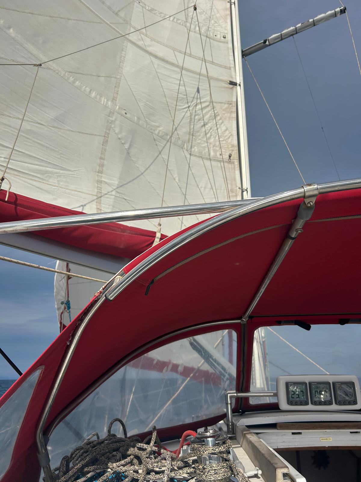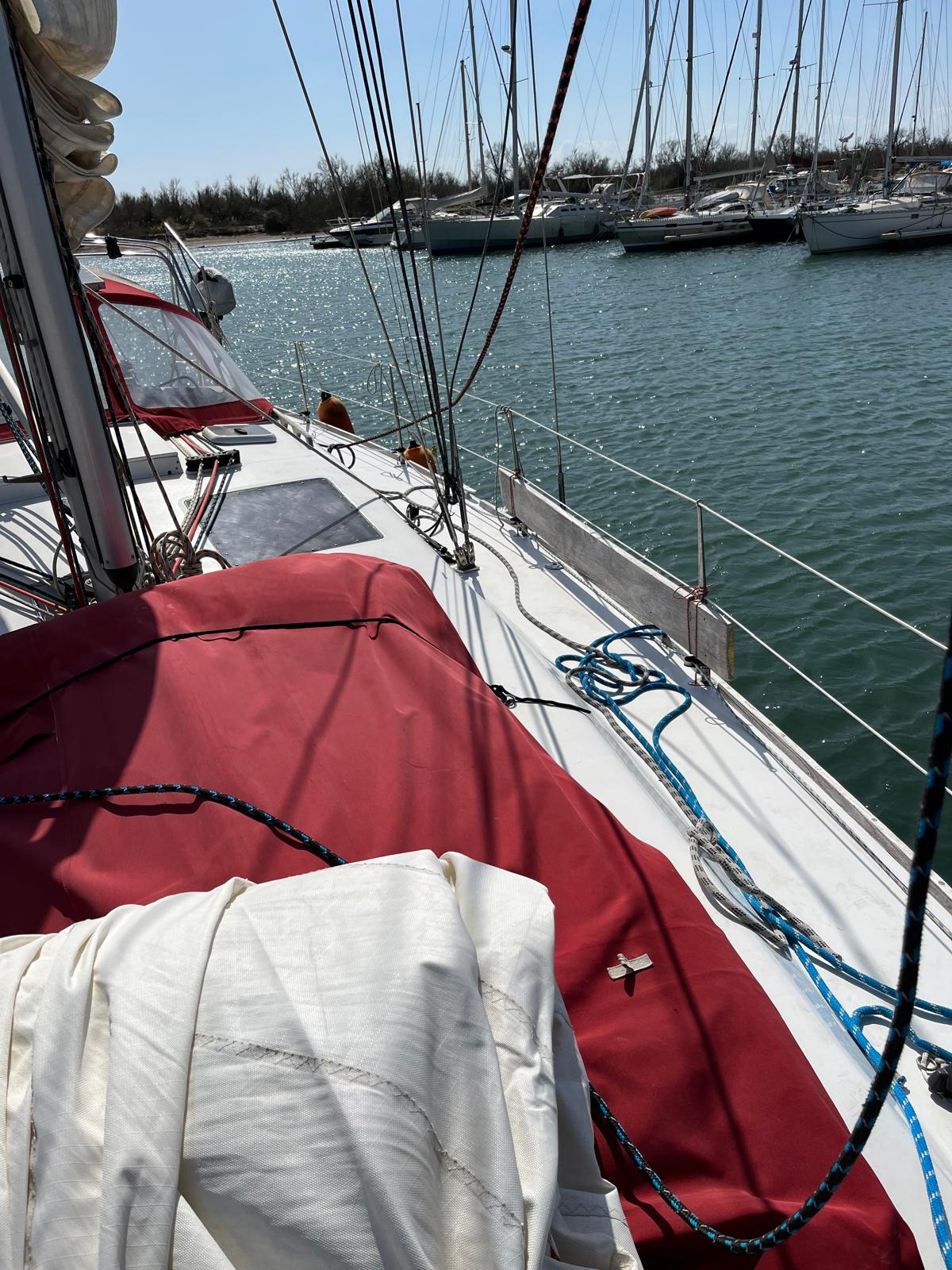 - Roll-up genoa (49 m², UV strips replaced 2025)