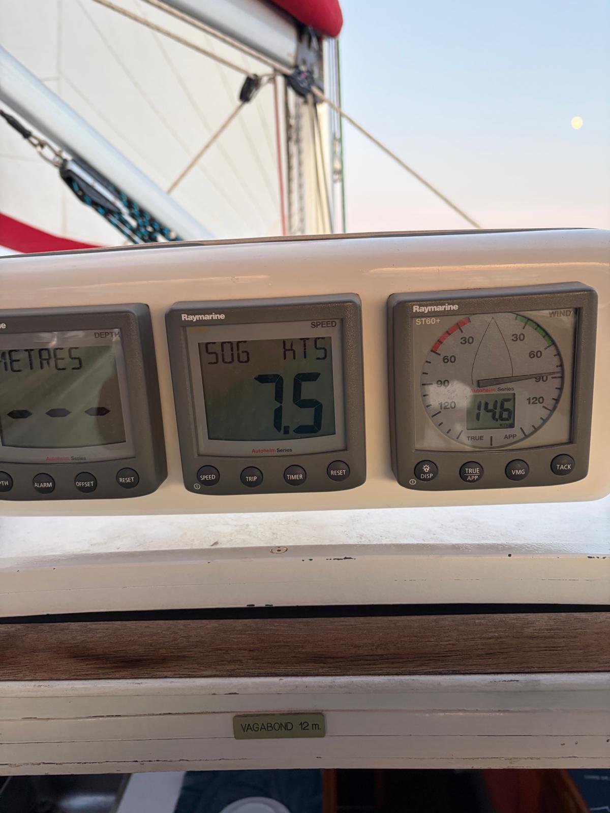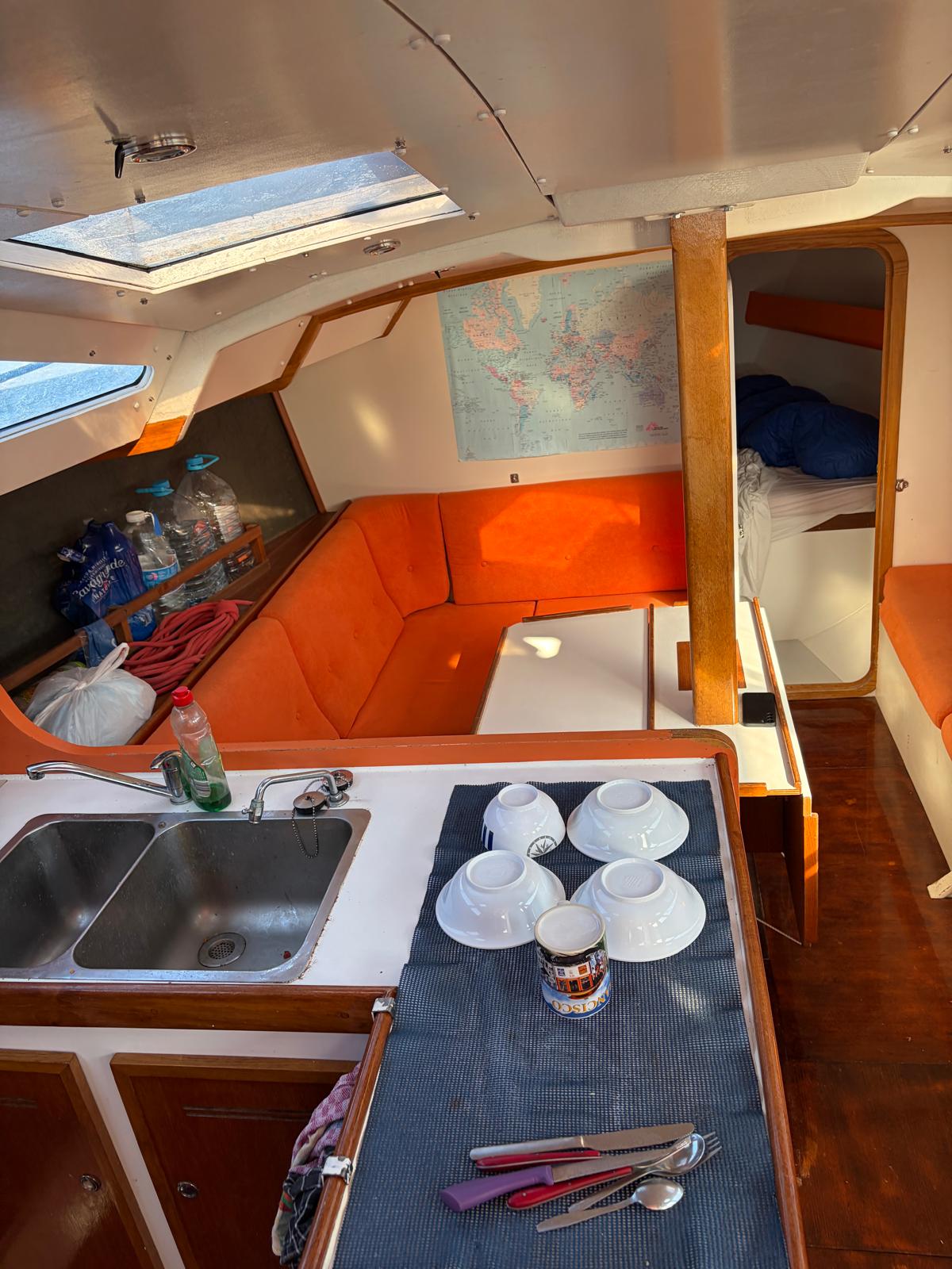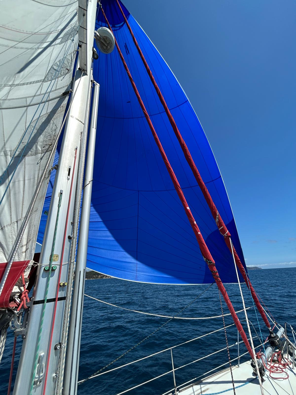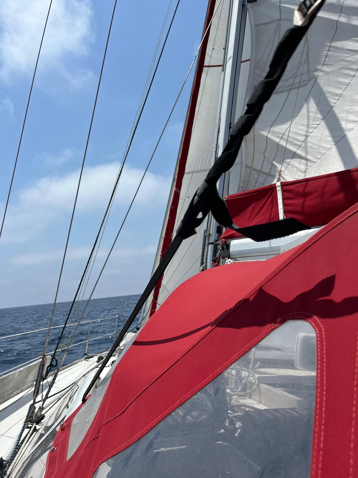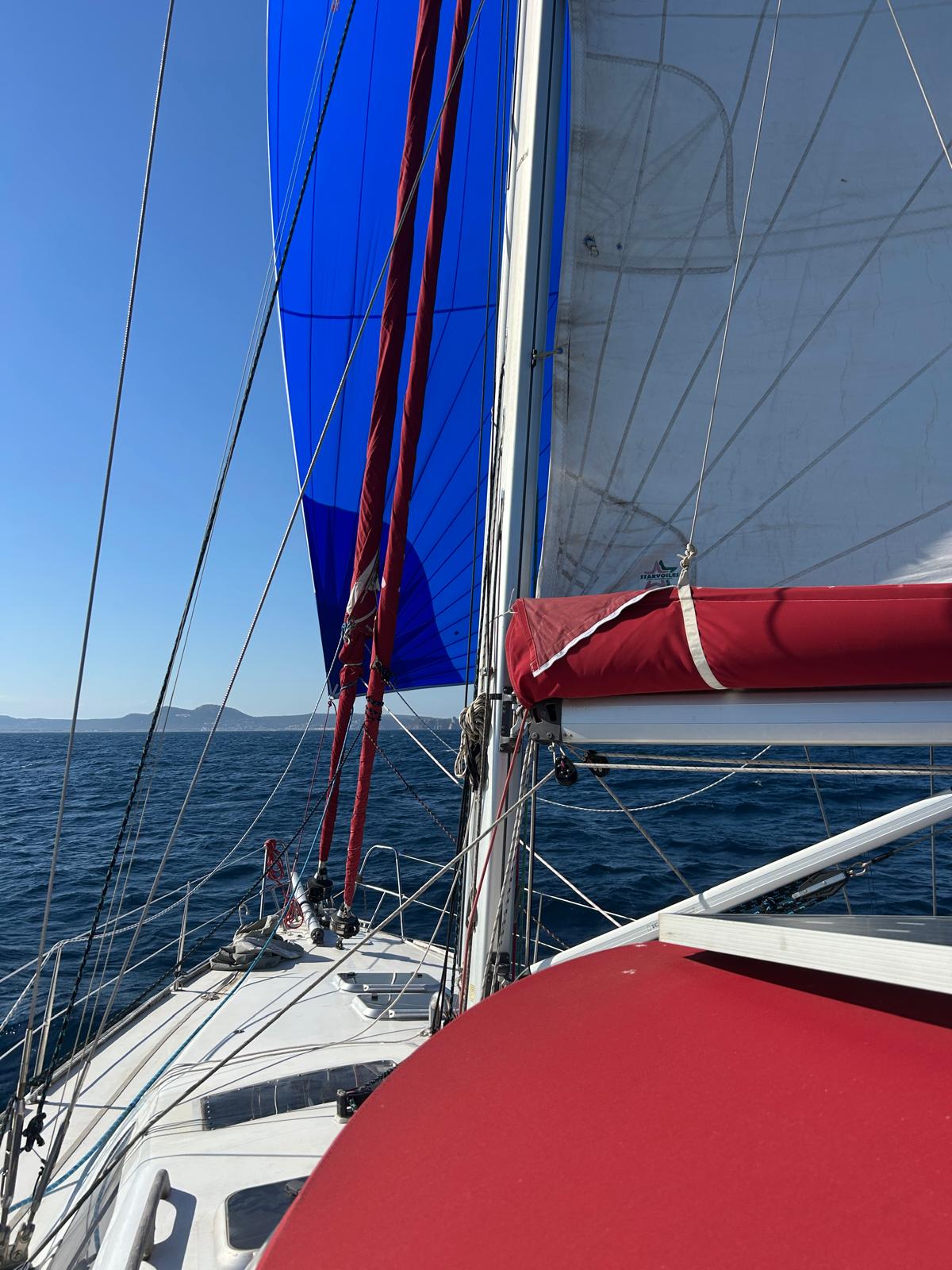 - Roll-up genoa (49 m², UV strips replaced 2025)