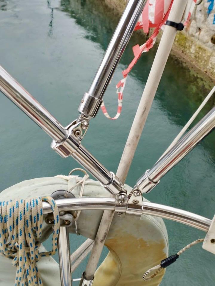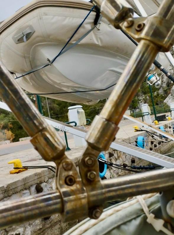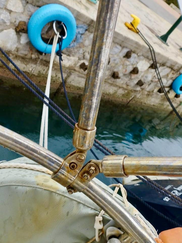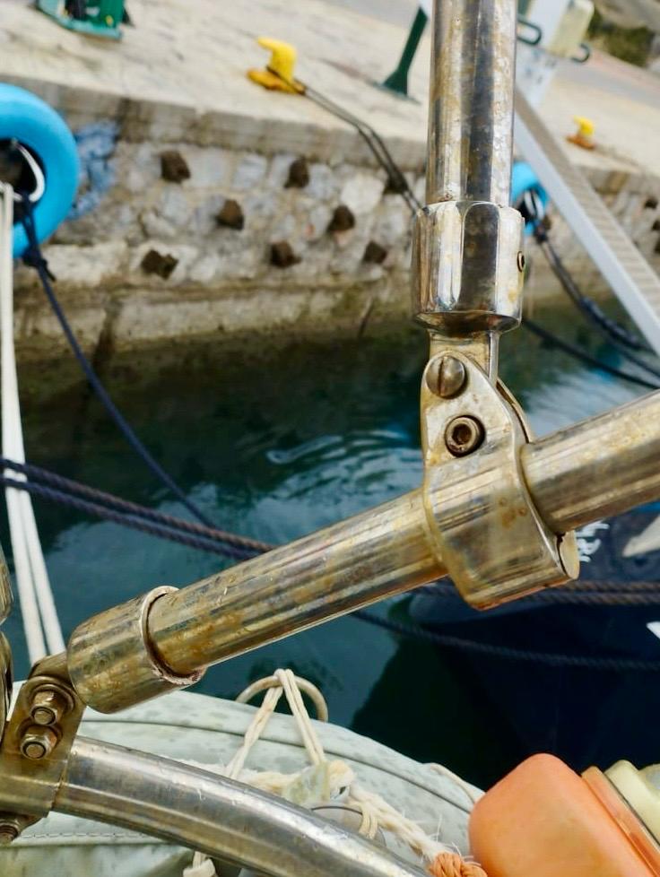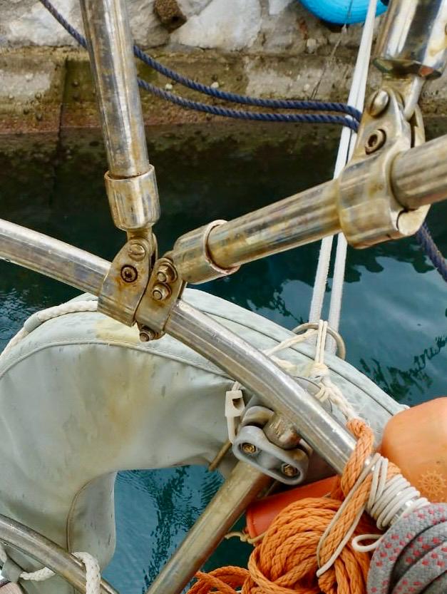 - Bavaria 42 with severe rust contamination: rust cleaning, polishing of railings, bimini and sprayhood racks, ladder, turnbuckles, cockpit table support stands, steering wheel.